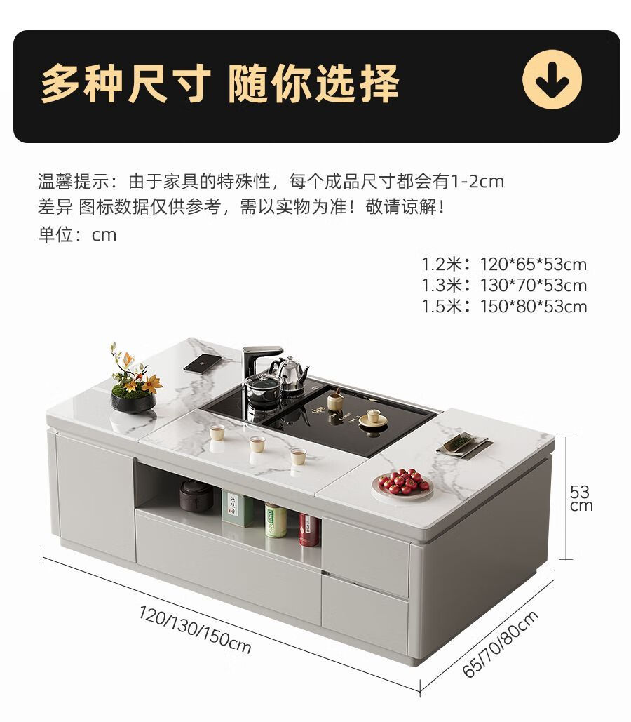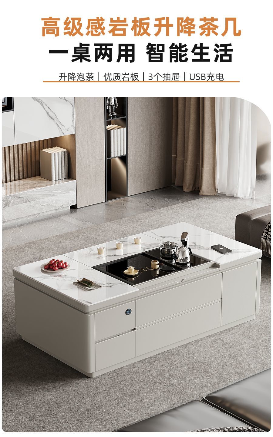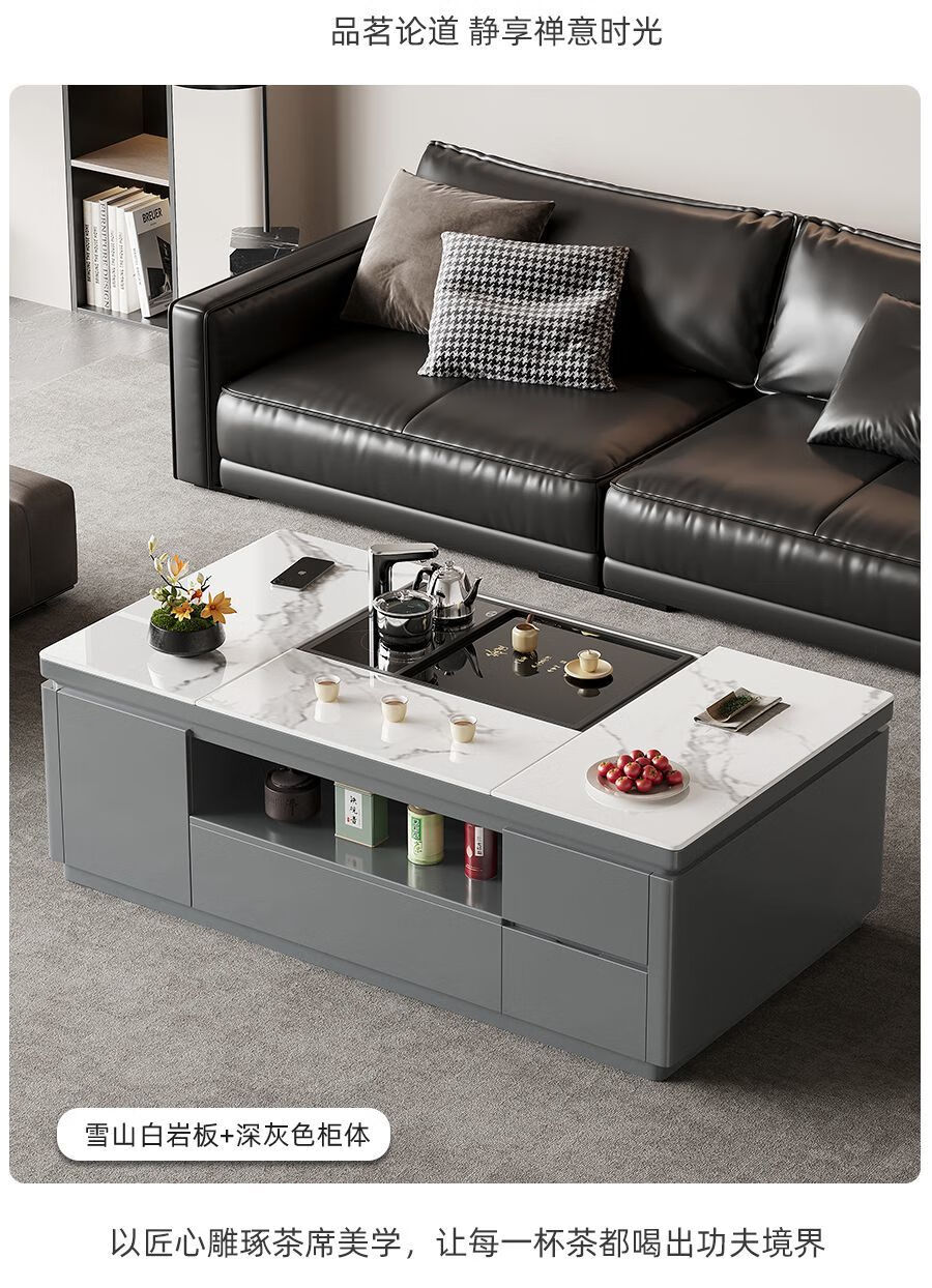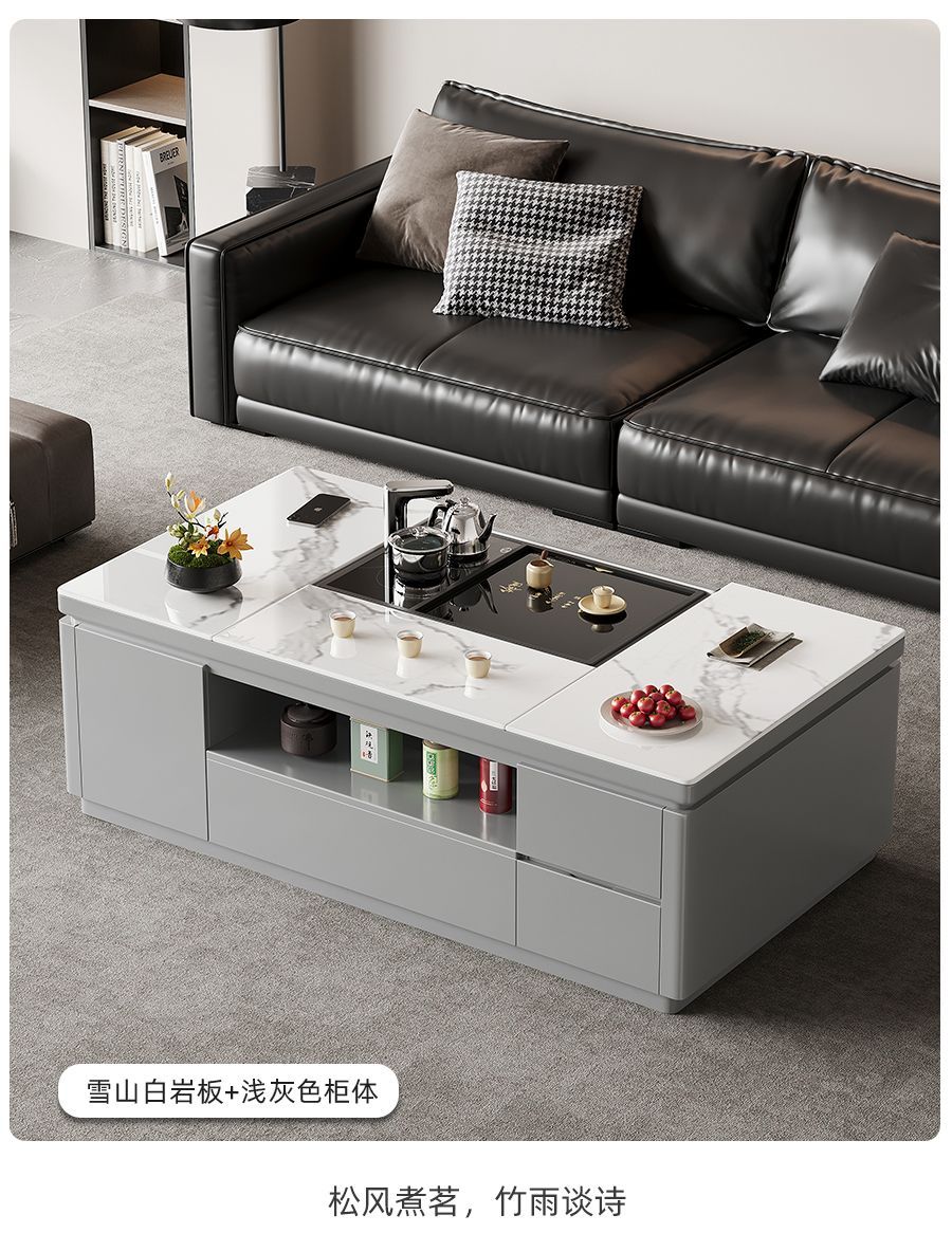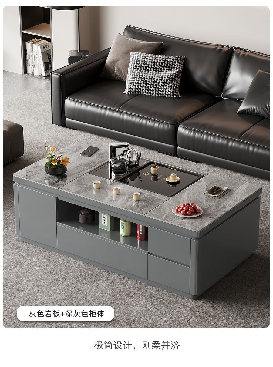 Tea table integrated with tea making, intelligent lifting tea table, light luxury, high-end household multi-functional tea table with boiling rock board Kung Fu tea table, high-end gray-lifting tea table 150-80-53