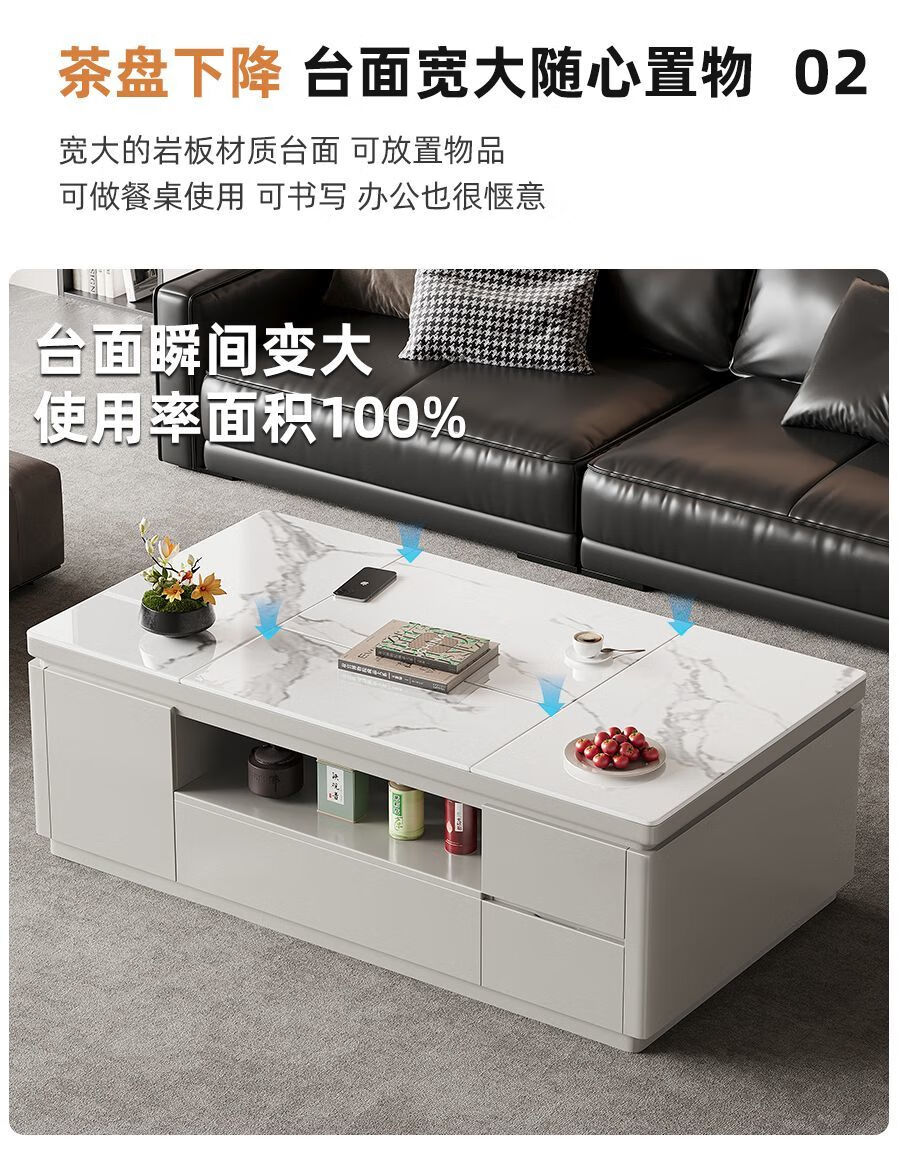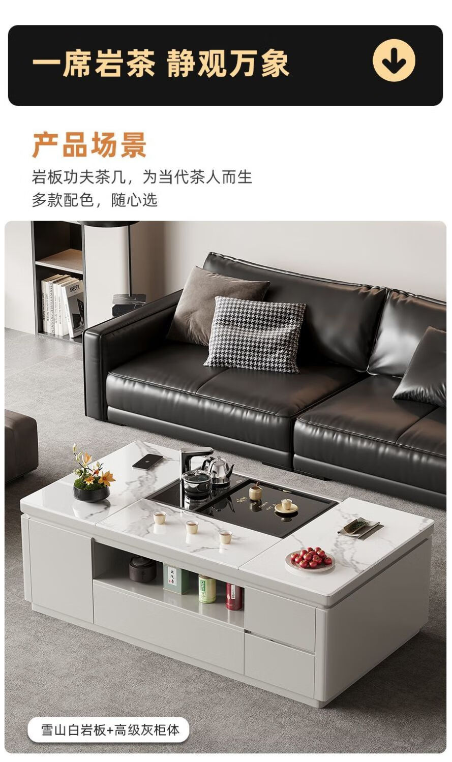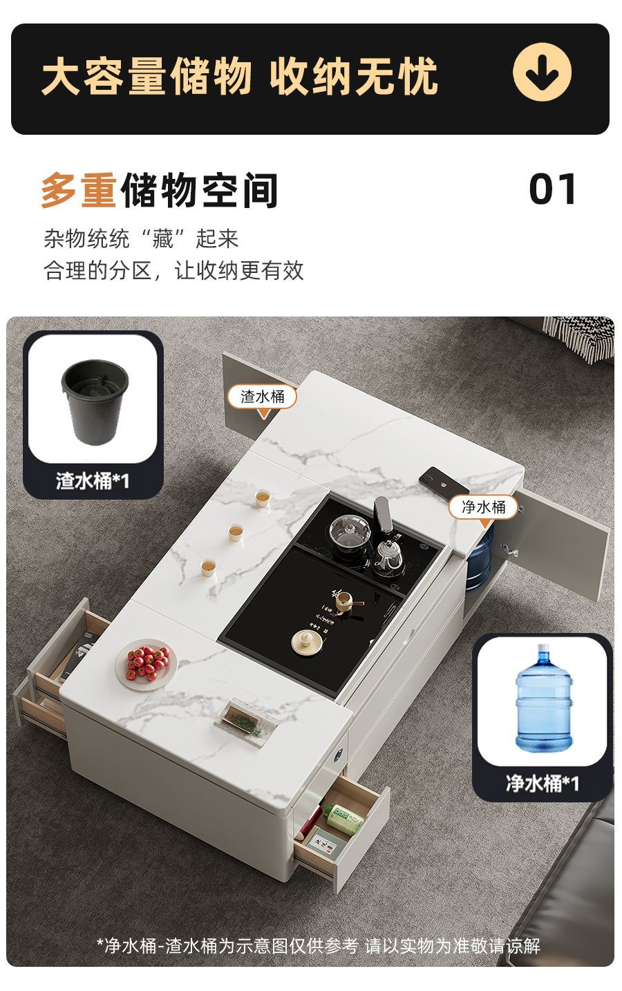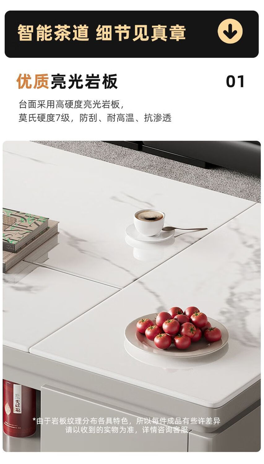 Tea table integrated with tea making, intelligent lifting tea table, light luxury, high-end household multi-functional tea table with boiling rock board Kung Fu tea table, high-end gray-lifting tea table 150-80-53
