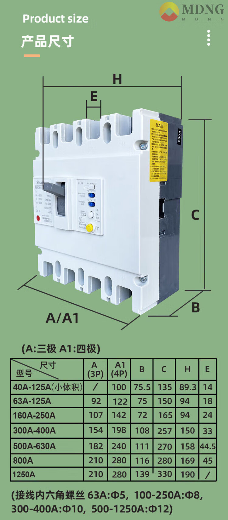 MDNGCM1L leakage circuit breaker three-phase four-wire plastic case leakage protection switch 125A 250A 630A 4p 125A