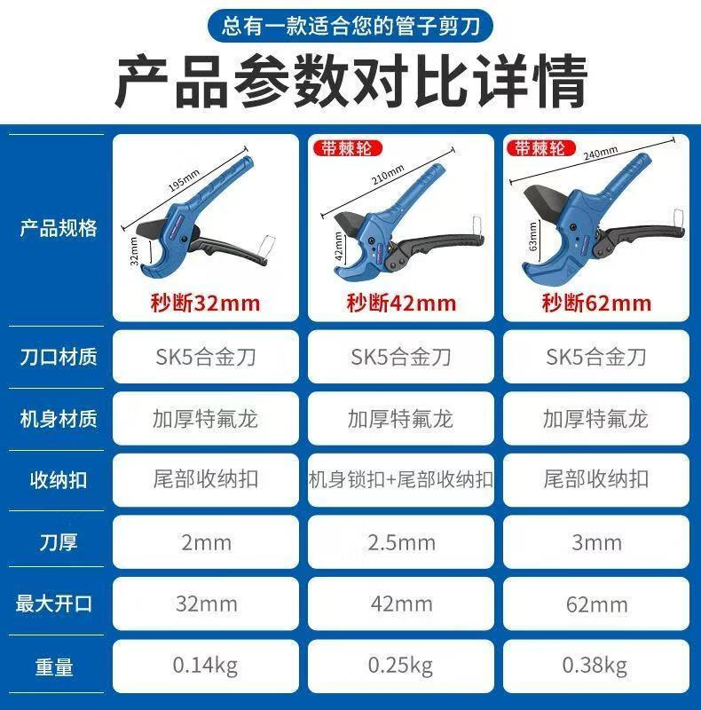 Dongcheng ppr scissors professional pipe cutting knife electric wire hot melt water pipe cutting tool household pvc pipe knife industrial grade labor-saving 42mm SK5 Teflon