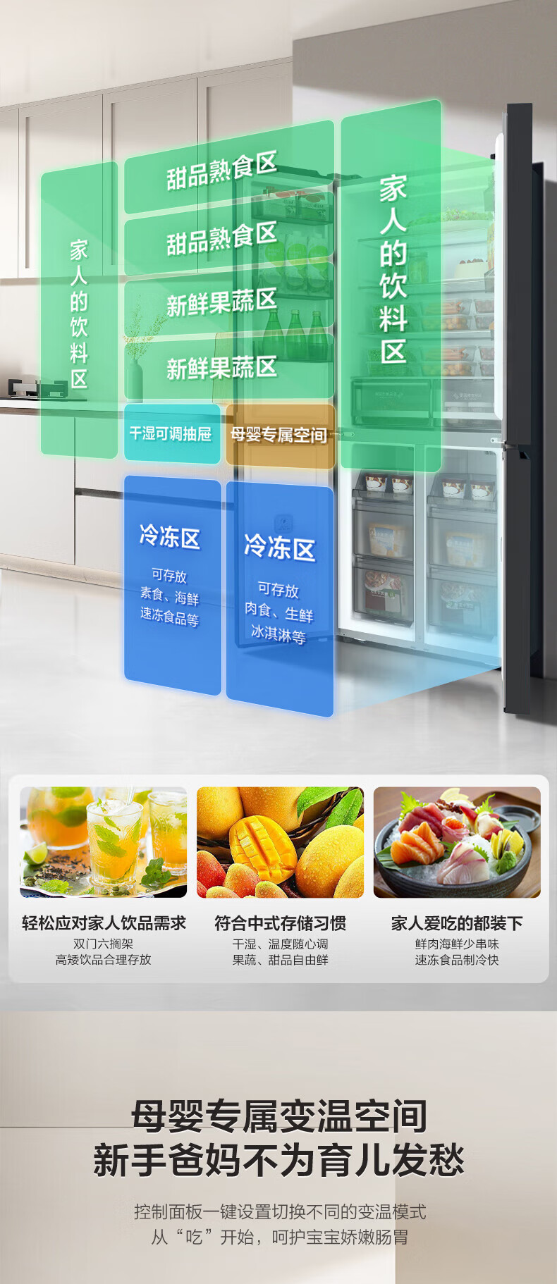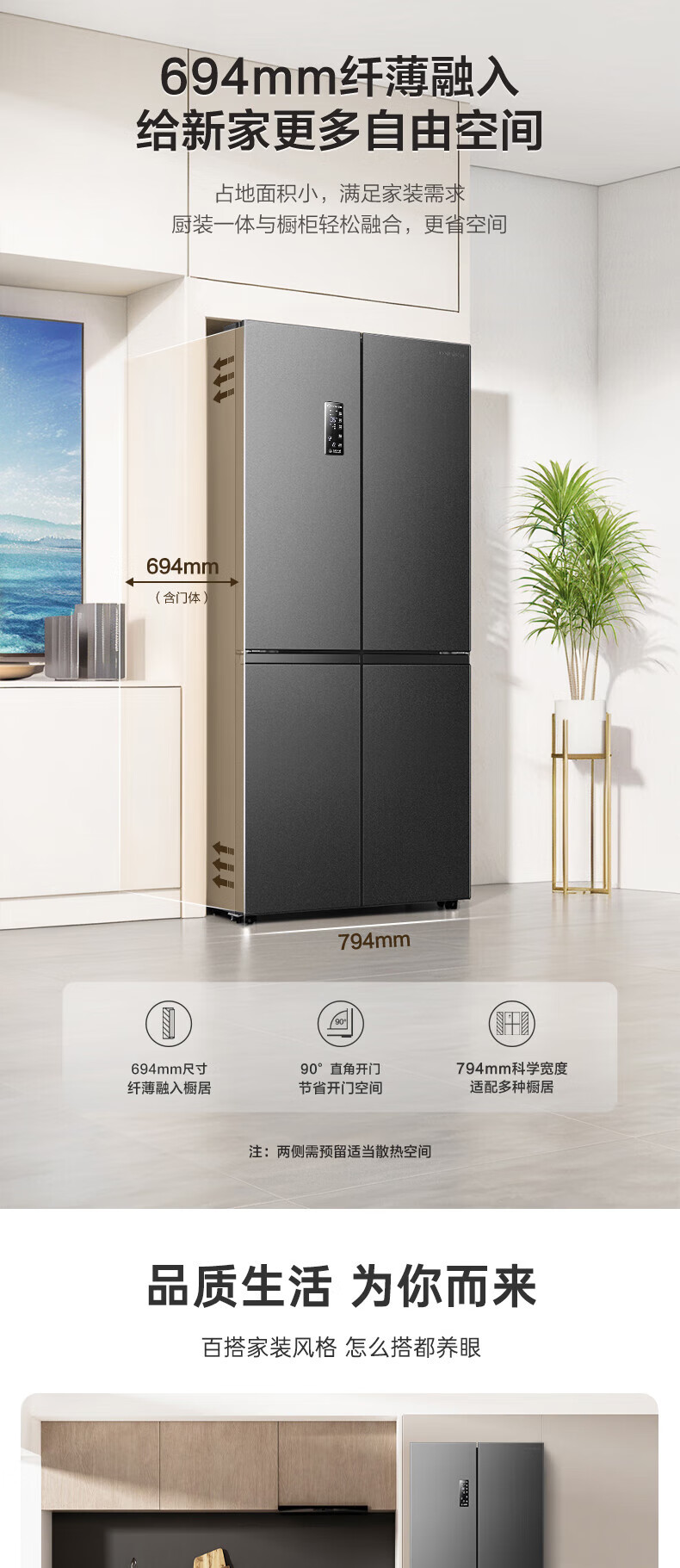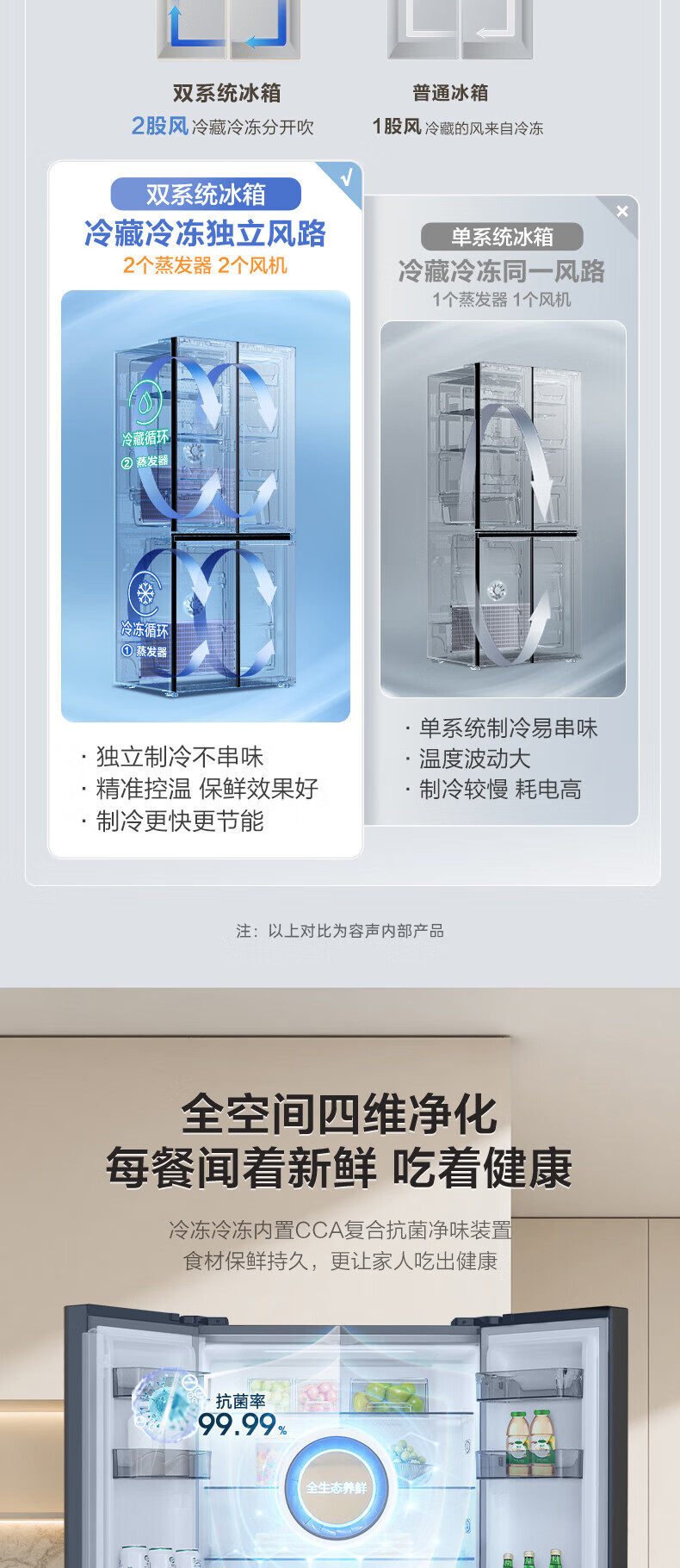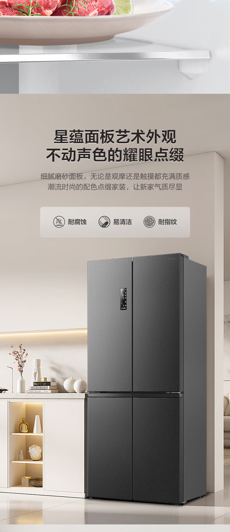 Rongsheng 506-liter dual-system dual-cycle cross-fold four-door refrigerator household first-class energy efficiency energy-saving frequency conversion air-cooled frost-free national subsidy official flagship store BCD-506WD11FP gray