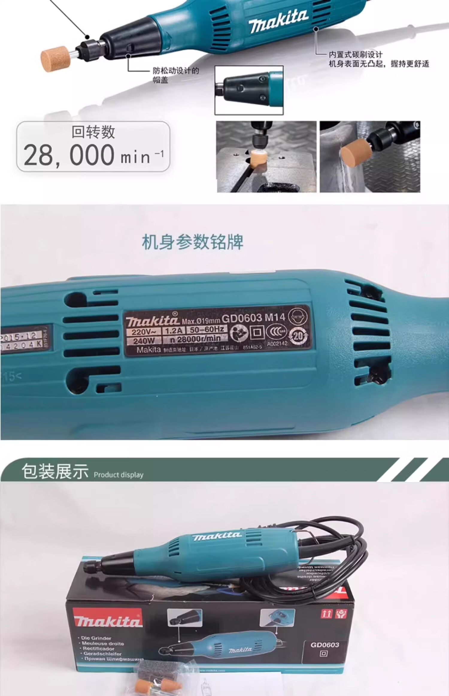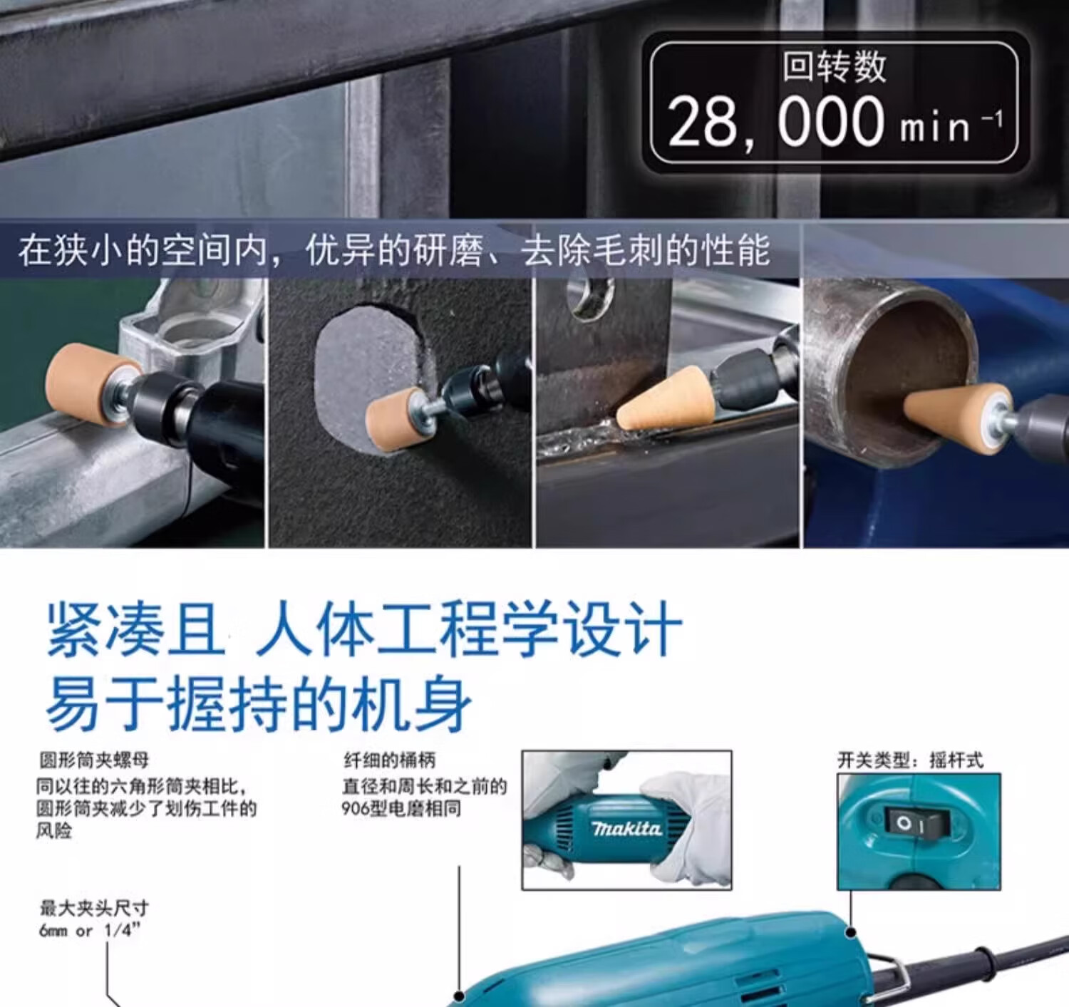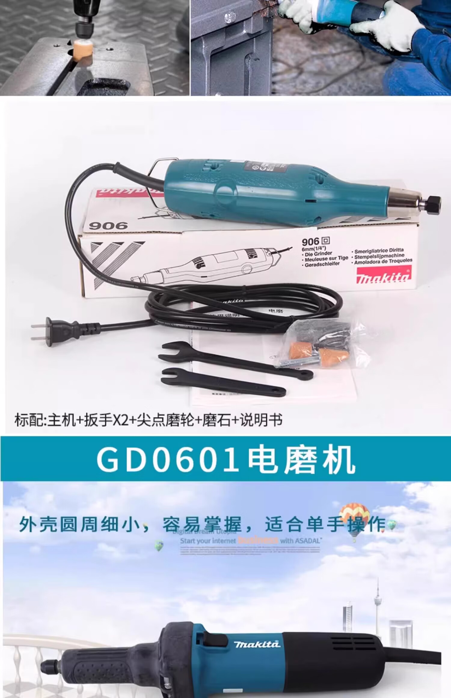 Makita (MAKITA) electric grinding head 906 straight grinder mold polishing handheld grinding and engraving GD0800C hand grinder M9100B