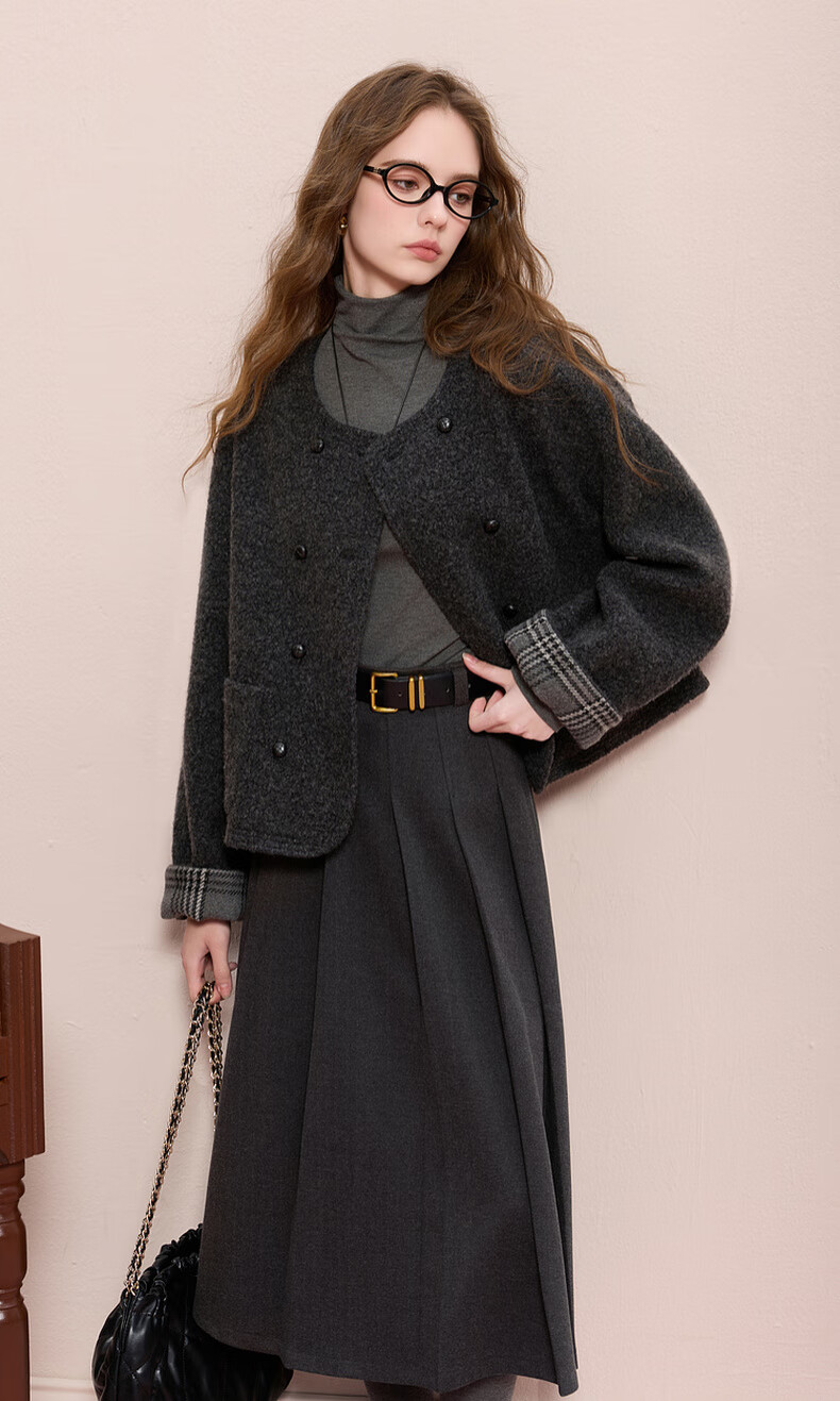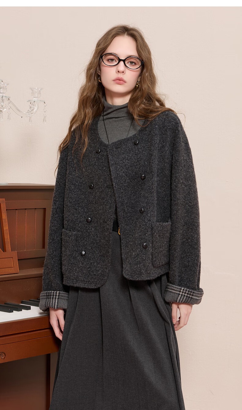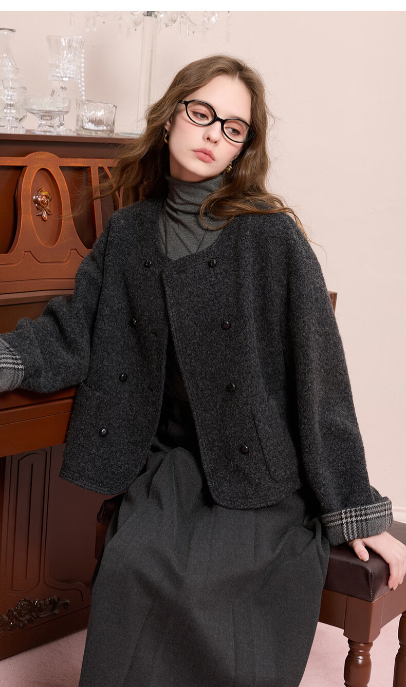 Tricolor Sheep Wool 2025 Winter New Style Fragrant Wool Coat Short Spliced Single Face Wool Jacket M Dark Gray M 160/84A