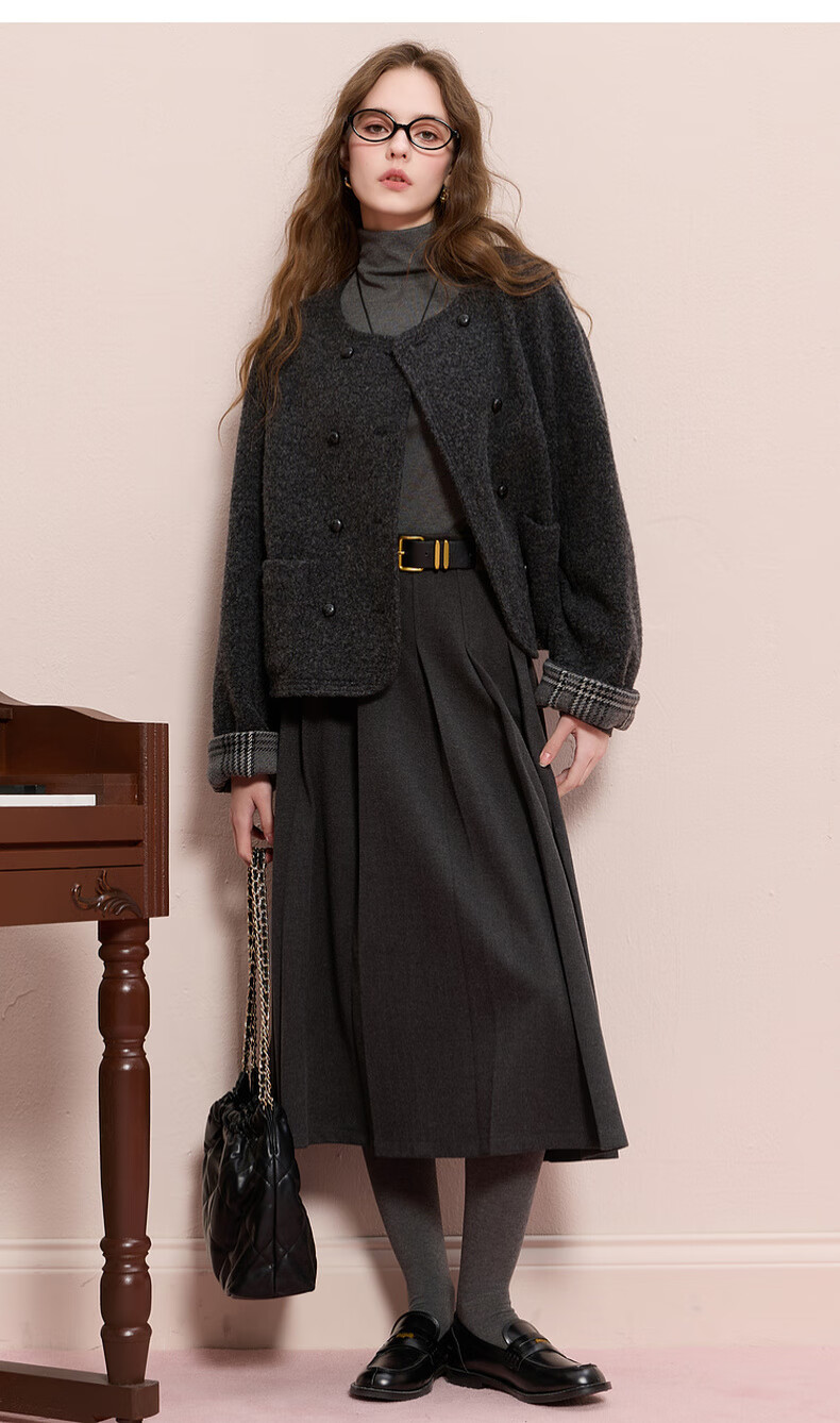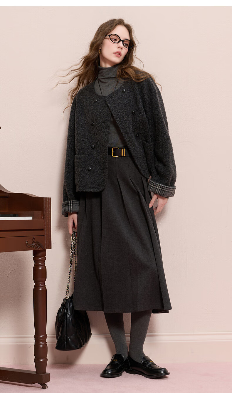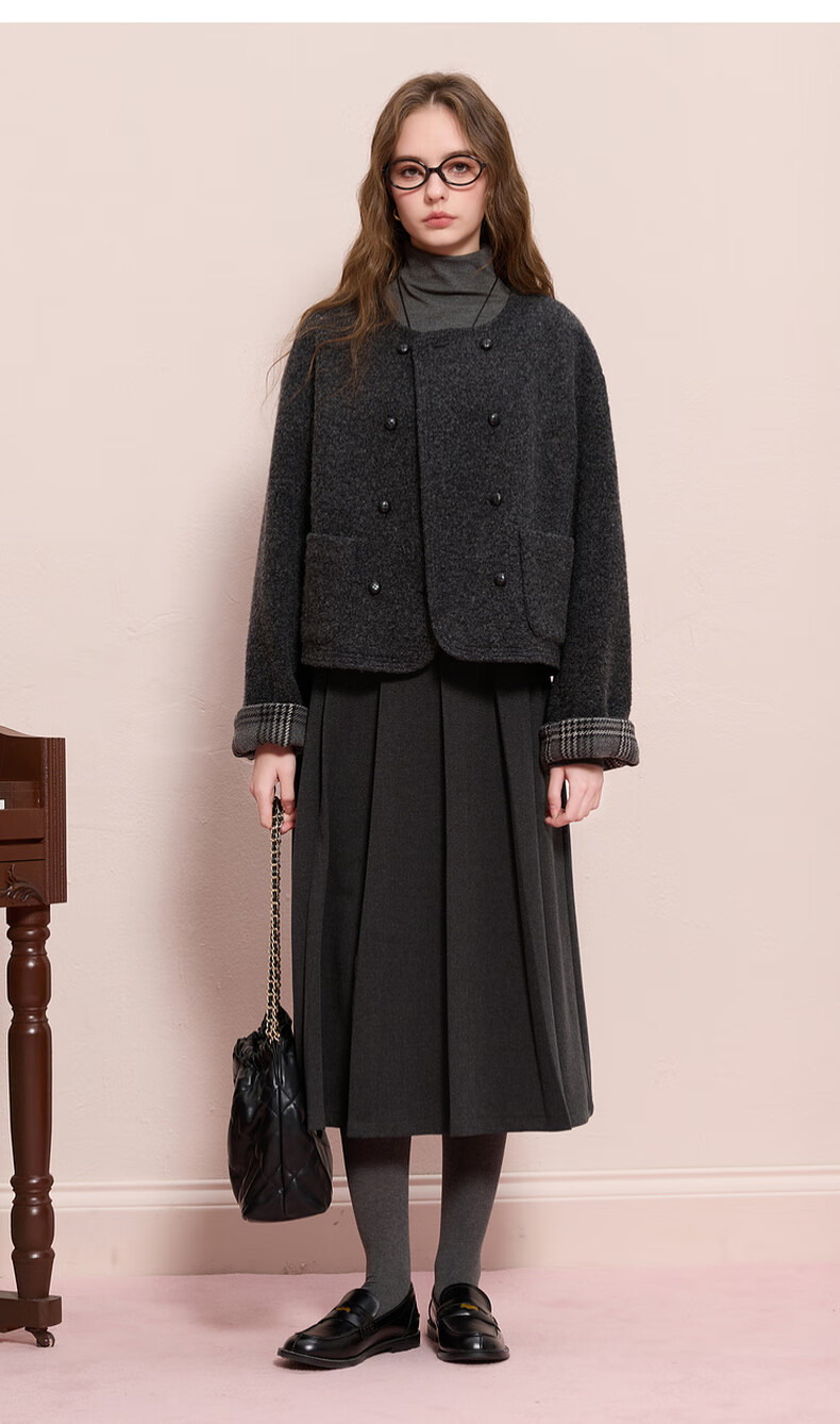 Tricolor Sheep Wool 2025 Winter New Style Fragrant Wool Coat Short Spliced Single Face Wool Jacket M Dark Gray M 160/84A