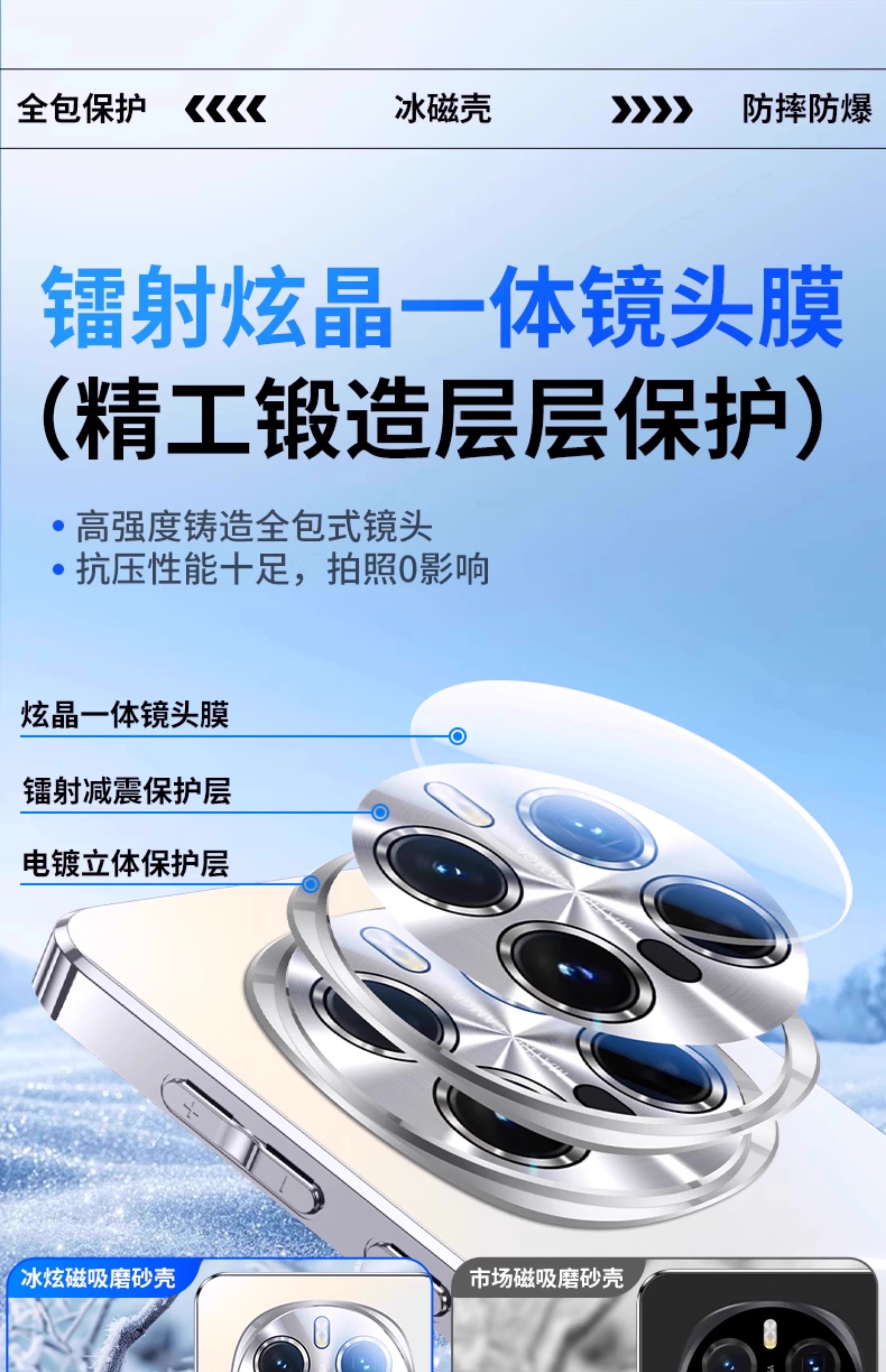 Yibu Kuandeng Ice Ring Magnetic Suitable for Honor magic8pro mobile phone case magic8 protective cover magnetic heat dissipation and anti-fall comes with lens film all-inclusive air bag anti-fall soft silicone model upgraded graphite black fine-grained magnetic suction-AR anti-reflection Honor magic8pro