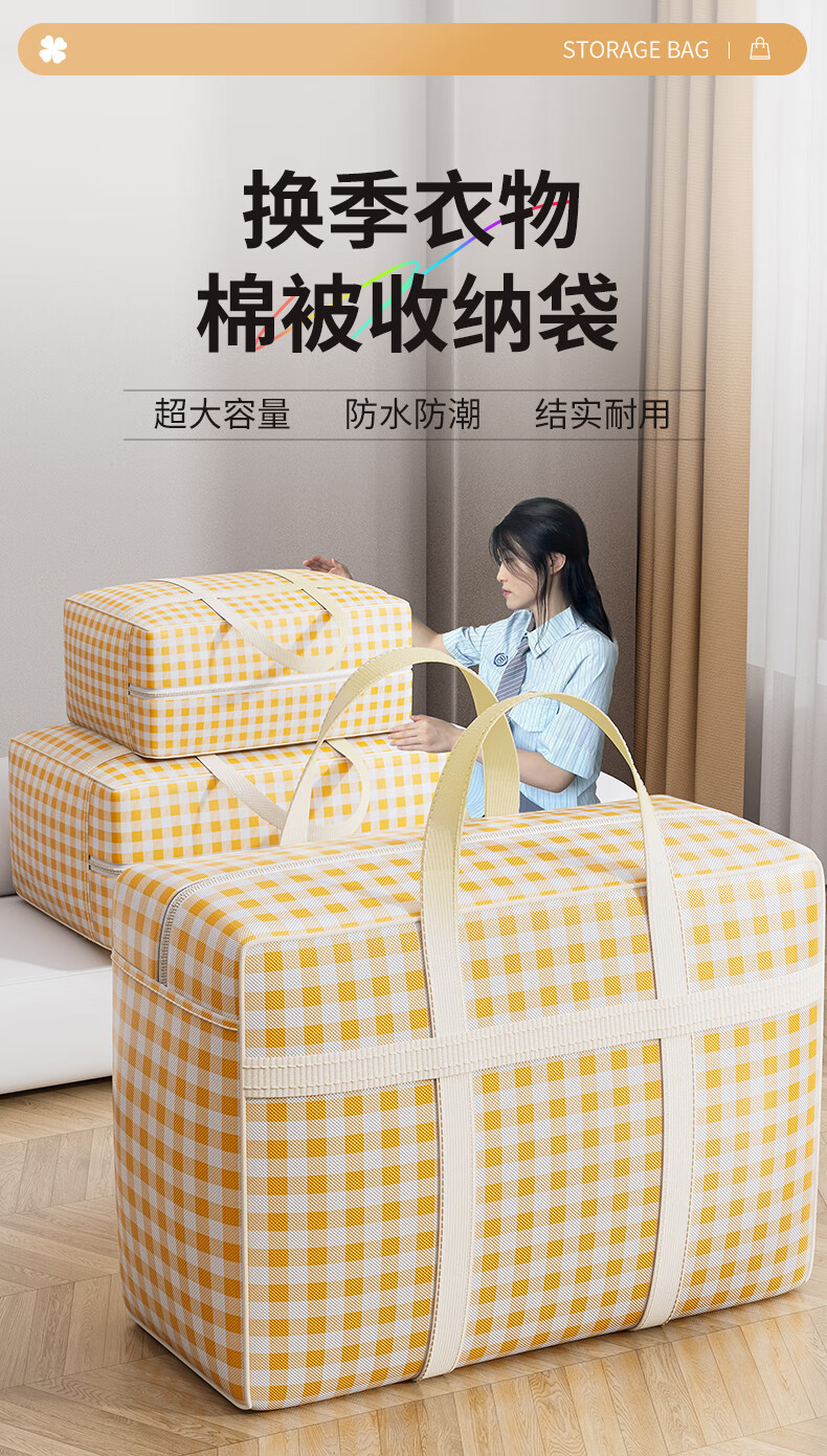 Jiebaina quilt storage bag for quilts, special clothes, luggage, moving packing bag, large capacity dormitory organization woven bag, medium size, wear-resistant and durable, double-sided waterproof, 1 pack, seasonal storage, moving packing