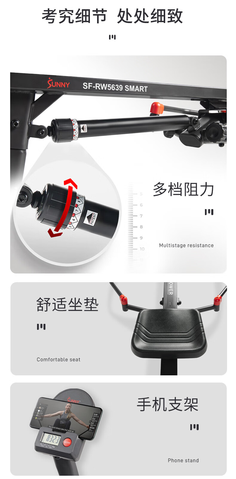 SUNNY sculls rowing machine hydraulic multi-function simulation rowing home sports fitness equipment indoor aerobic rowing machine activity backup 360 pounds large load-bearing | free full body exercise course | door-to-door installation