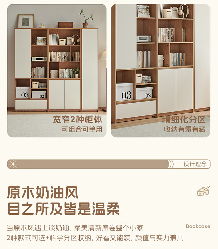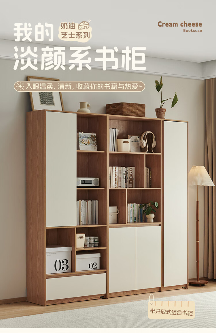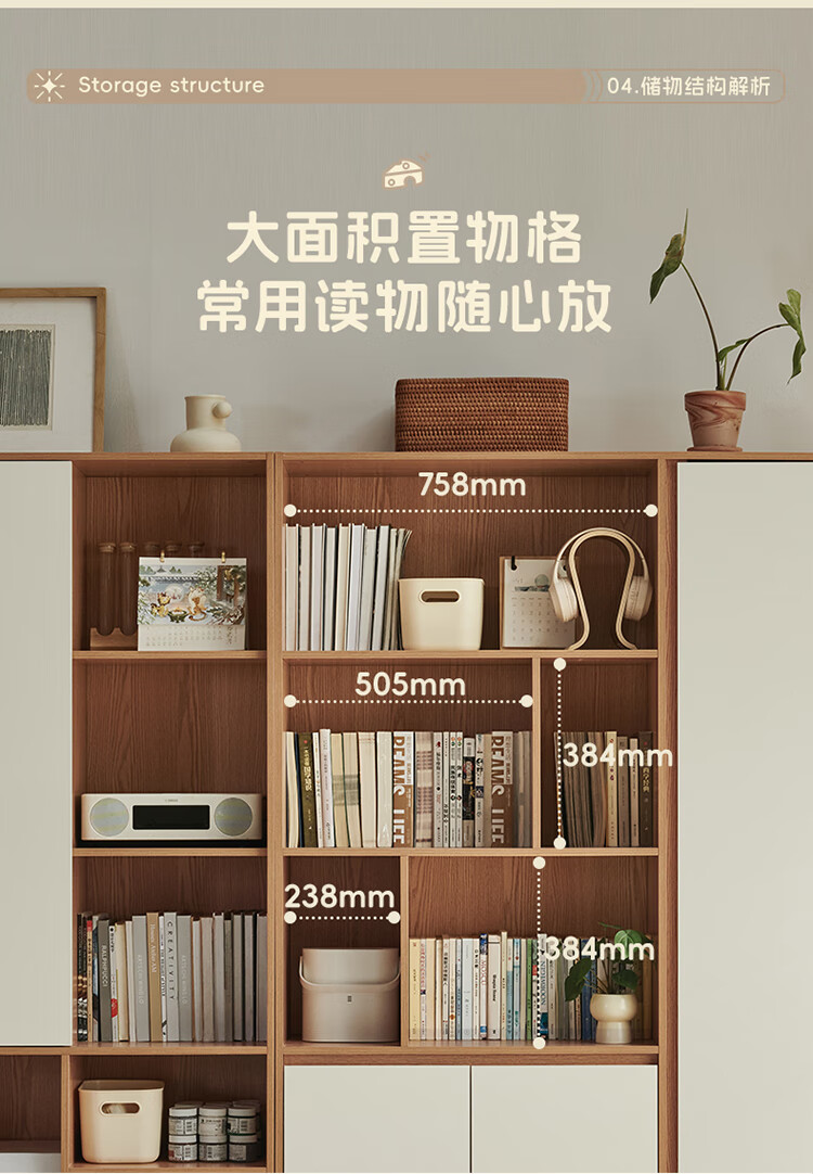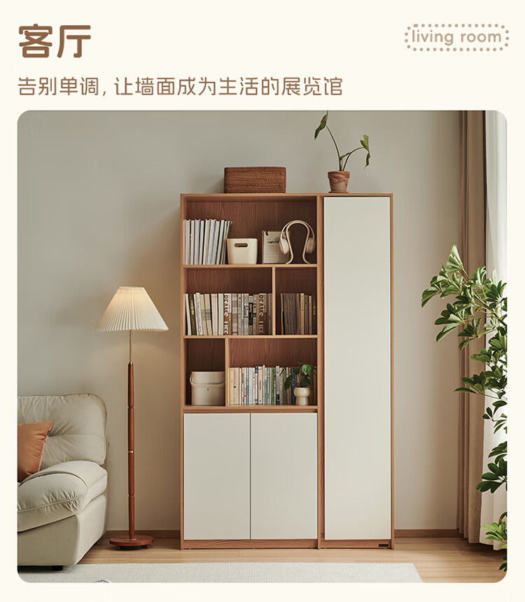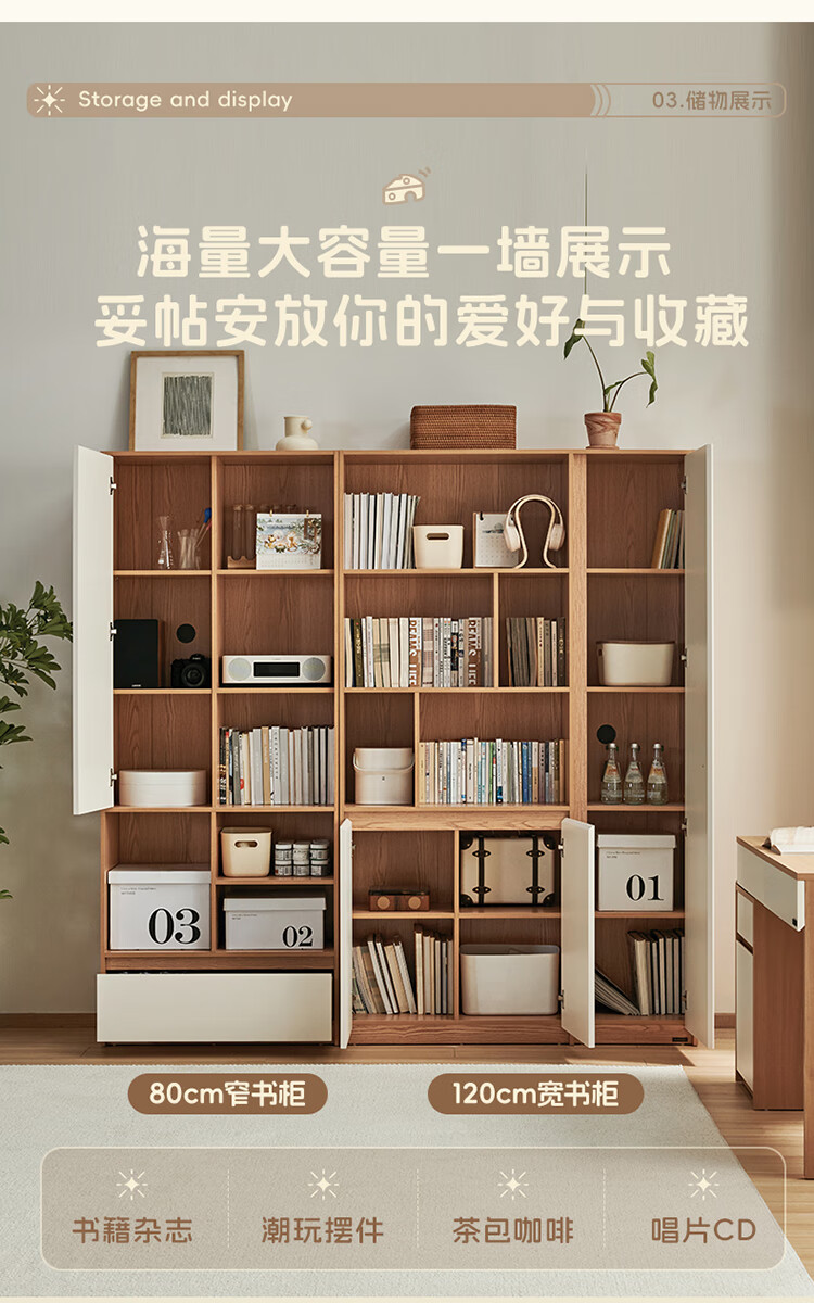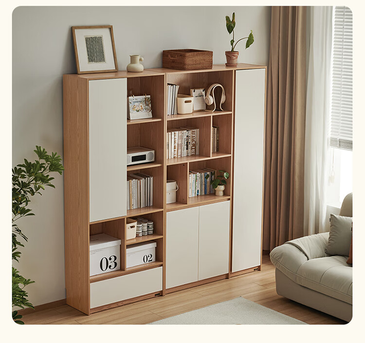 Quanyou Home Cream Style Bookcase Bookshelf Home Storage Storage Display Rack Wine Cabinet Sideboard Wide and Narrow Cabinet Combination 1.2*2m Wide Bookcase
