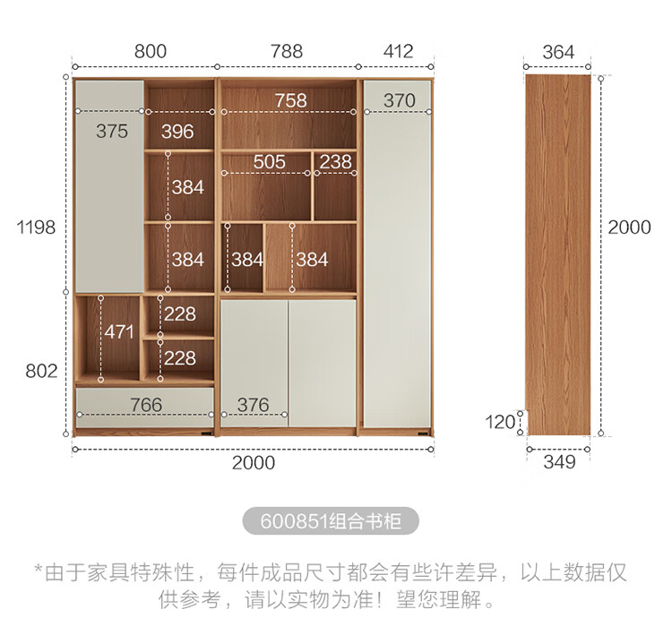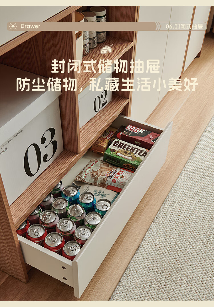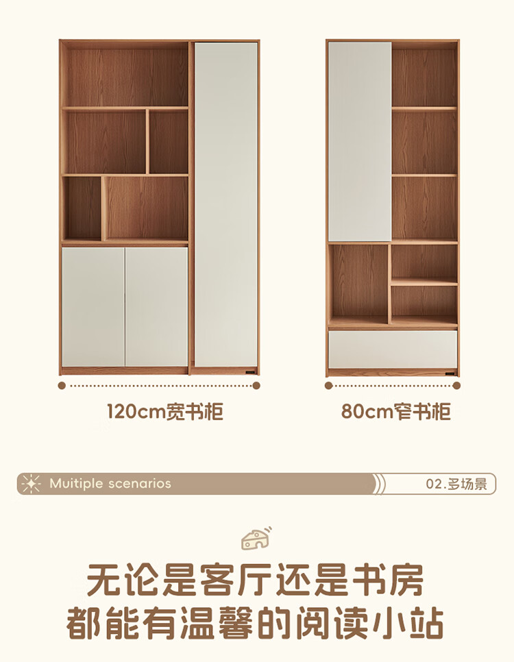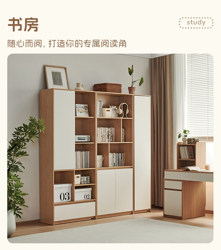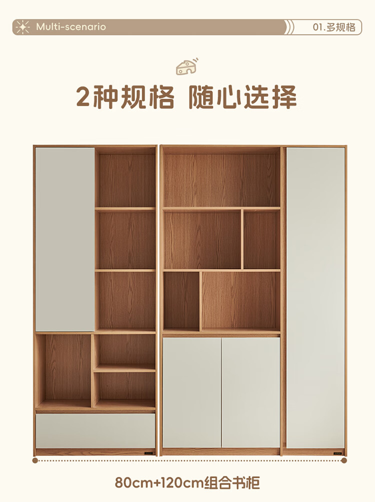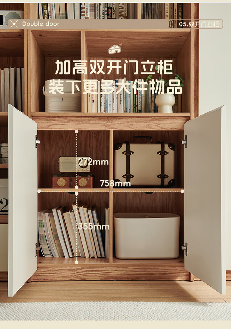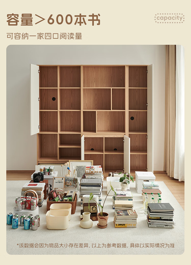 Quanyou Home Cream Style Bookcase Bookshelf Home Storage Storage Display Rack Wine Cabinet Sideboard Wide and Narrow Cabinet Combination 1.2*2m Wide Bookcase