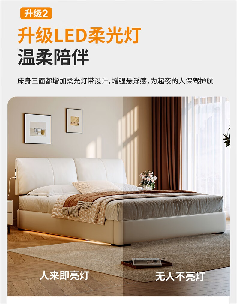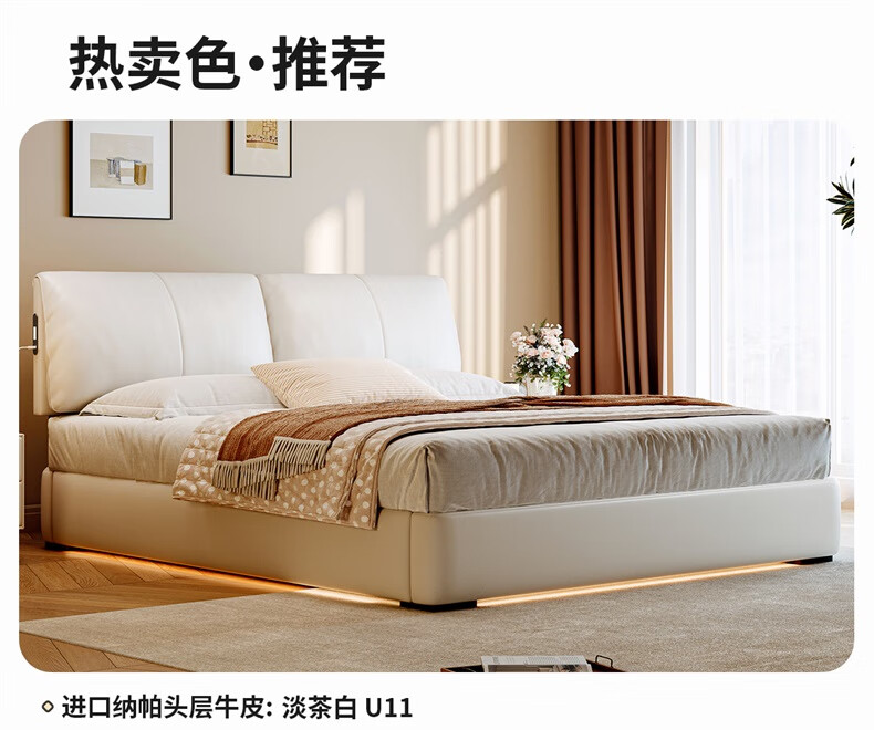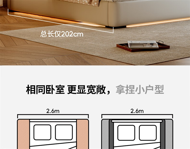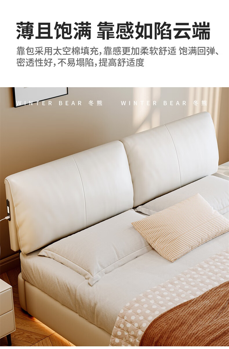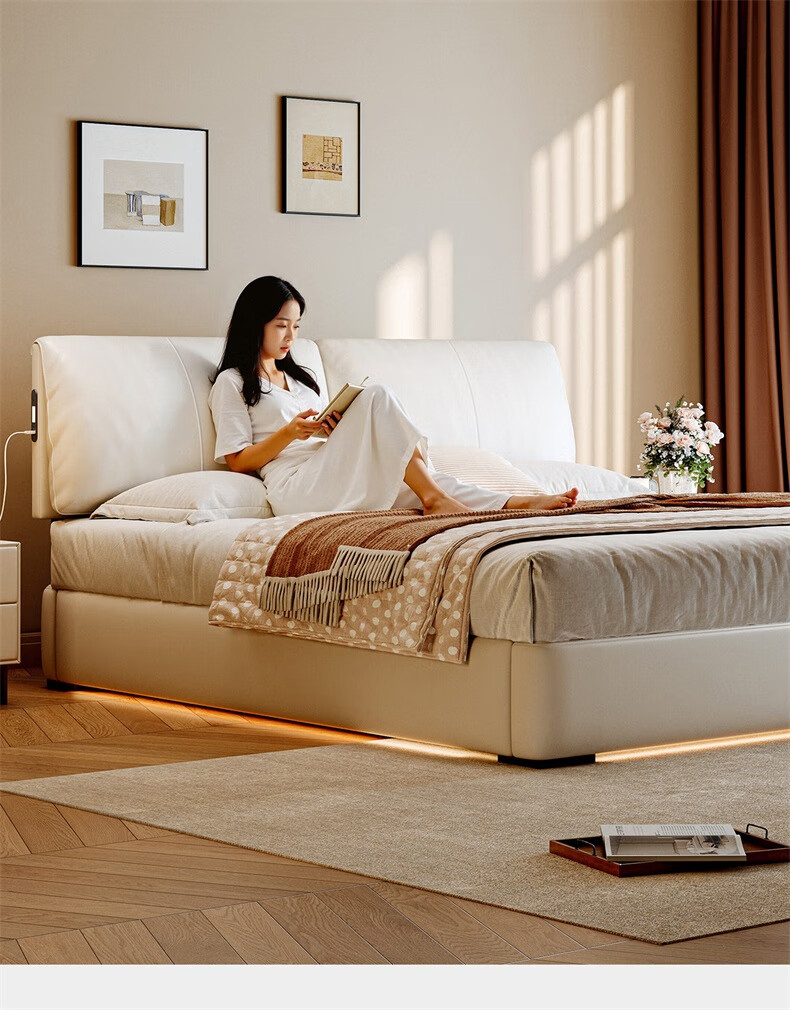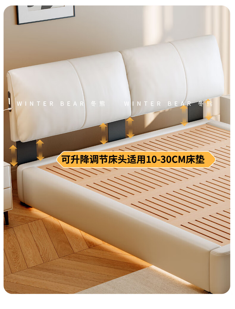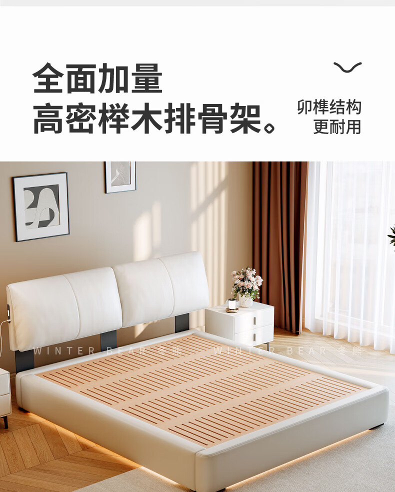 Dongxiong ultra-thin bedside side-opening storage three-drawer bed small apartment space-saving box with flush elephant ear leather bed first layer cowhide bed/full solid wood beech wood rib frame 1500mm*2000mm box side-opening three drawers
