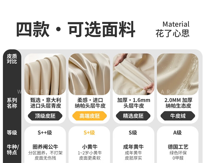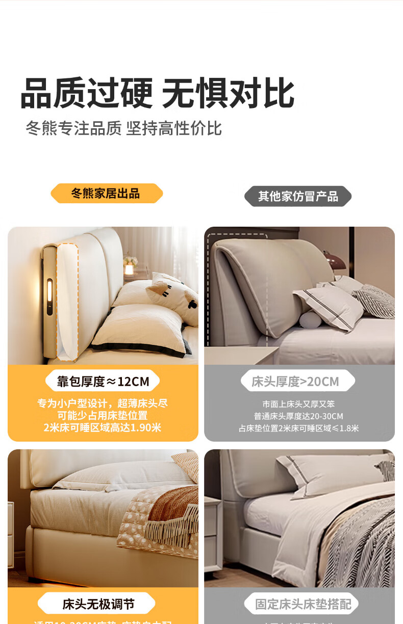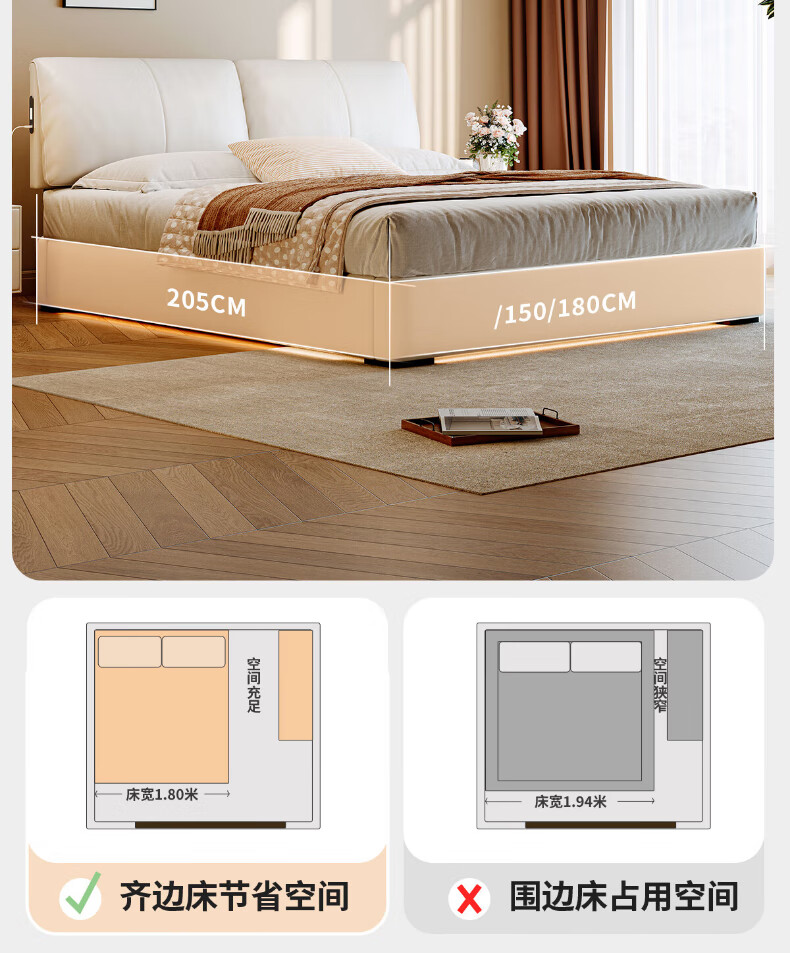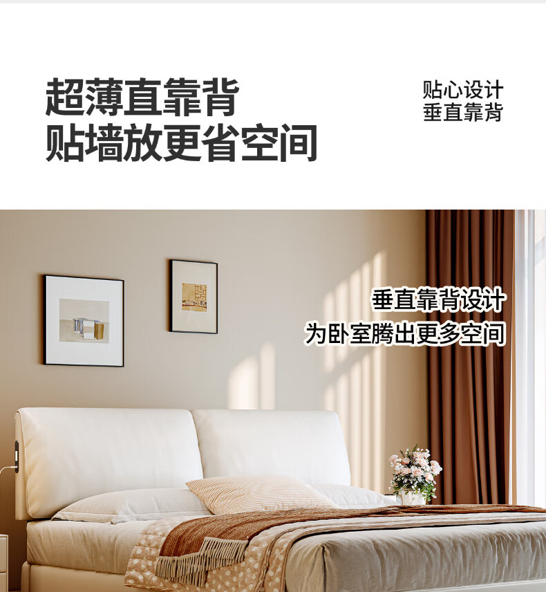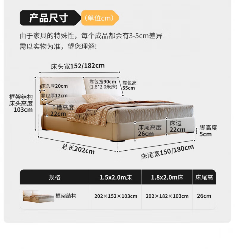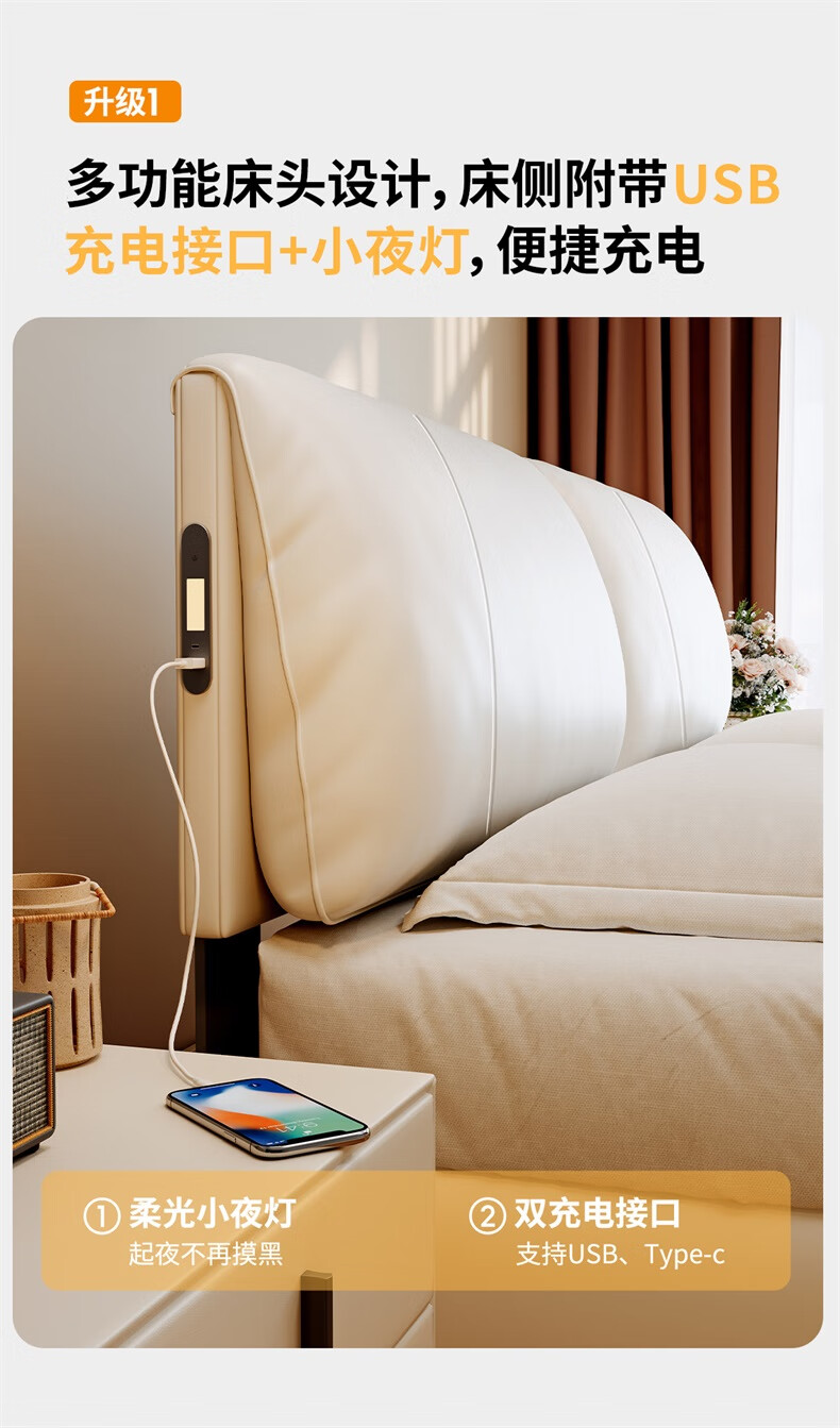 Dongxiong ultra-thin bedside side-opening storage three-drawer bed small apartment space-saving box with flush elephant ear leather bed first layer cowhide bed/full solid wood beech wood rib frame 1500mm*2000mm box side-opening three drawers