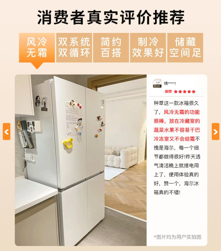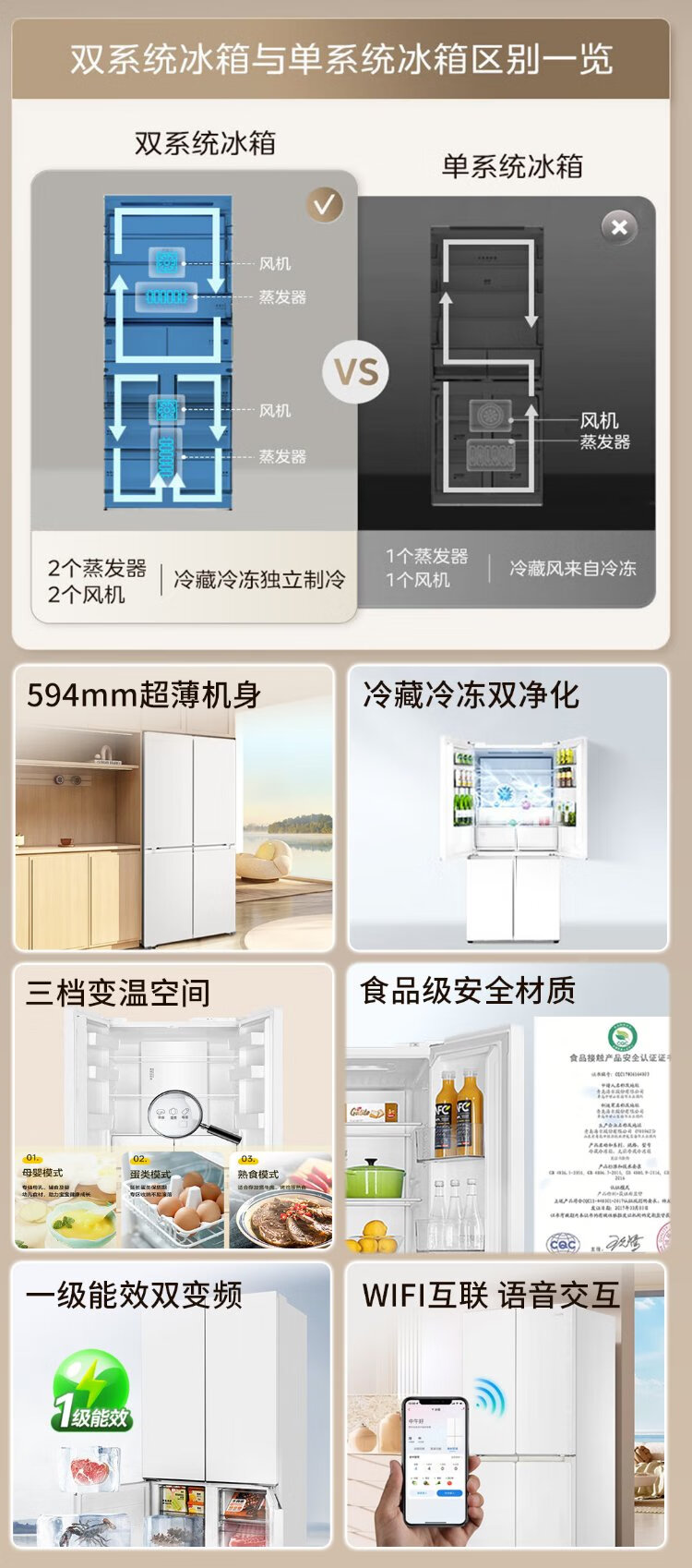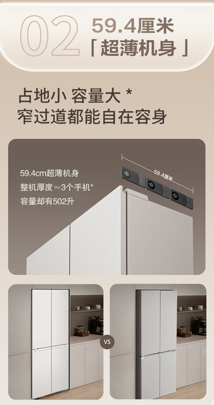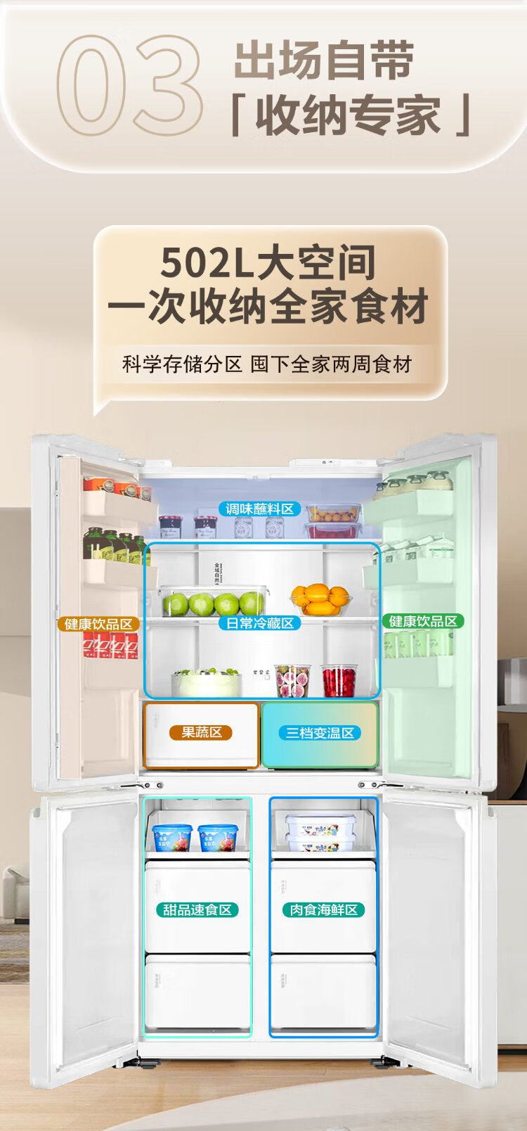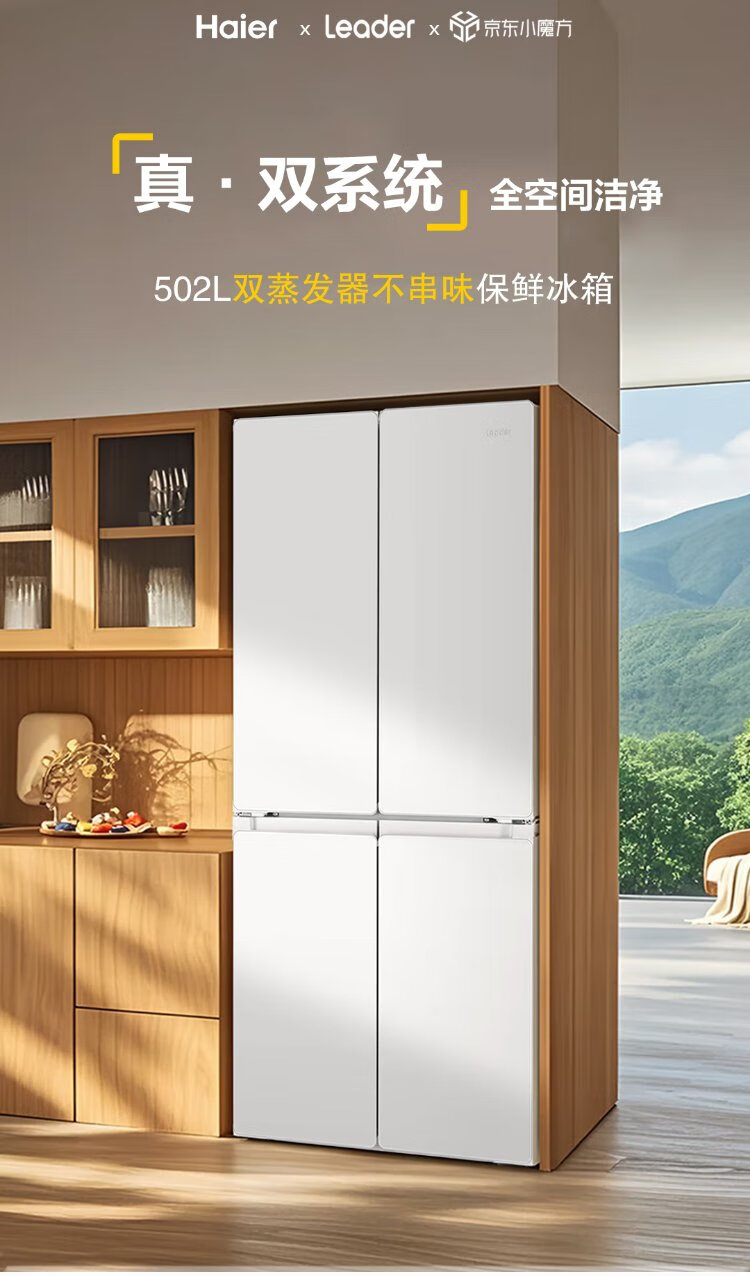 Haier refrigerator cross-door four-door refrigerator ultra-thin embedded dual-system dual-cycle air-cooled frost-free first-class energy efficiency dual-frequency household trade-in refrigerator 502-liter dual evaporator without odor + global anti-bacterial, anti-mildew and odor-free