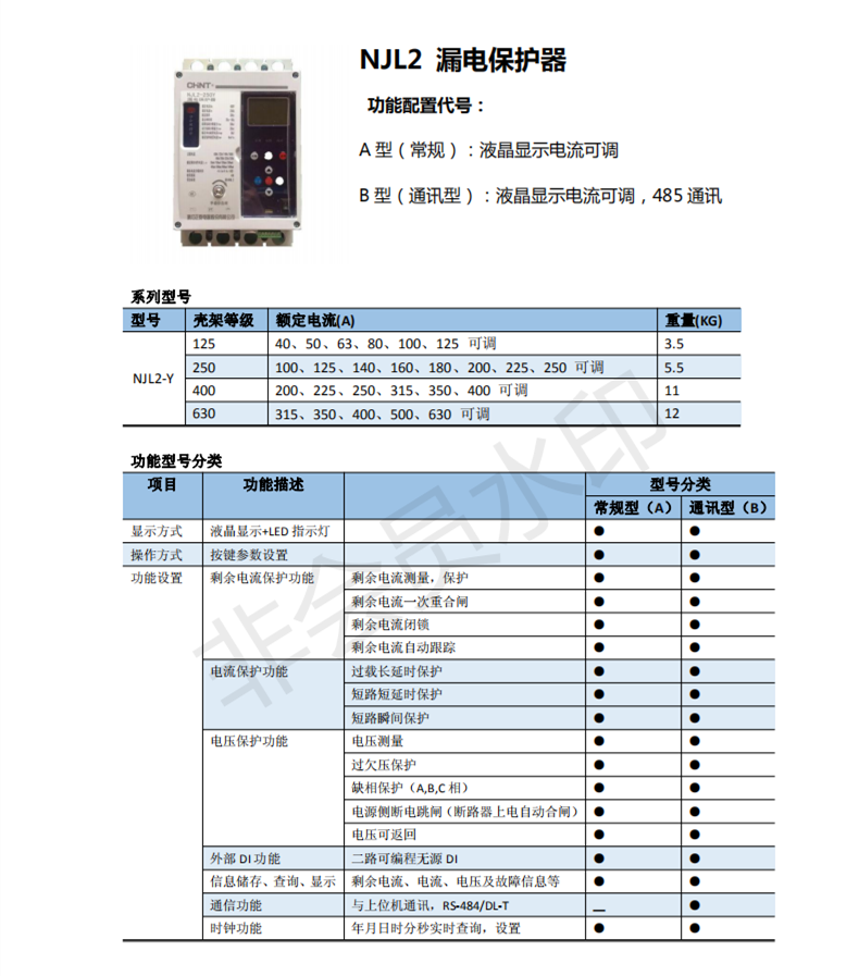 Chint leakage circuit breaker NJL2-125/250/400/630Y automatic reclosing three-phase intelligent protector Type B (communication model) 630A_3P+N