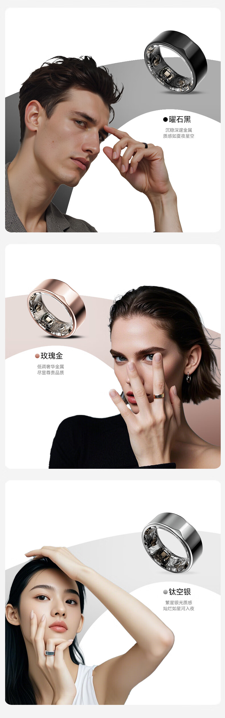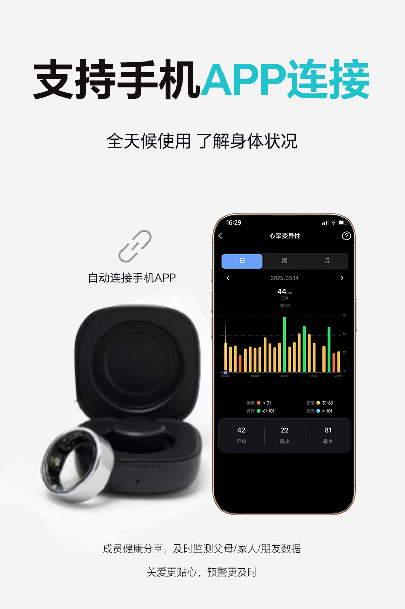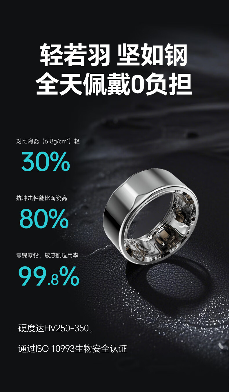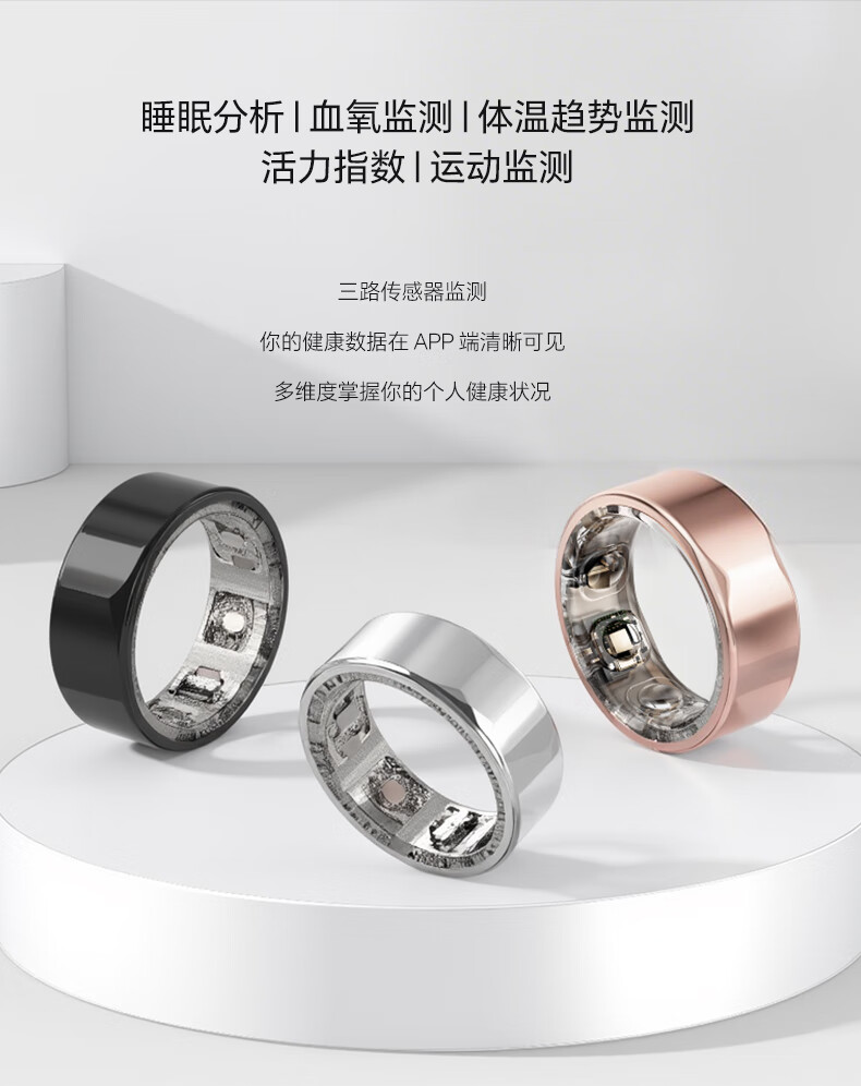 Yijie JCRing Smart Ring Sleep Apnea Monitoring Heart Rate Variation Blood Oxygen Women's Menstrual Period Prediction Health Guidance 12 Days Long Battery Life Love at Fingertips Smart Ring - Rose Gold No. 13 Circumference is 69.5mm, diameter is 22.3mm