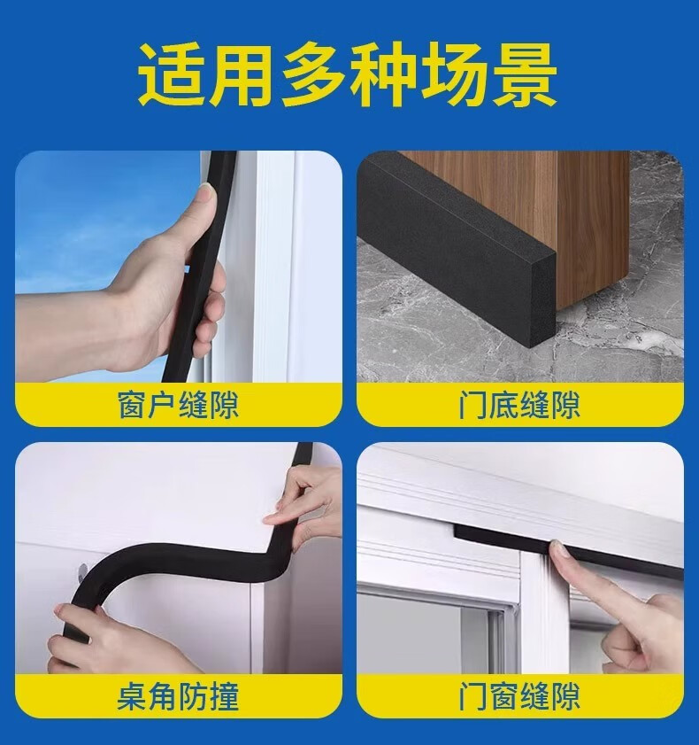 Black thickened gap filling caulking strip sponge strip eva sealing strip wardrobe cupboard table anti-falling barrier bedside bedside anti-sound baffle single-sided self-adhesive sealing strip 50MM wide * 1 meter long * 60mm thick
