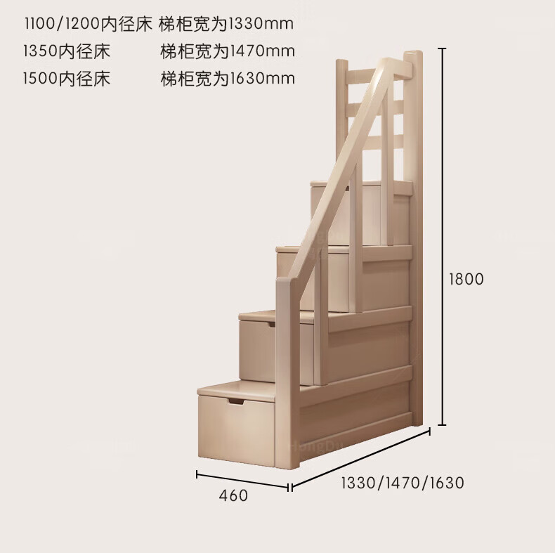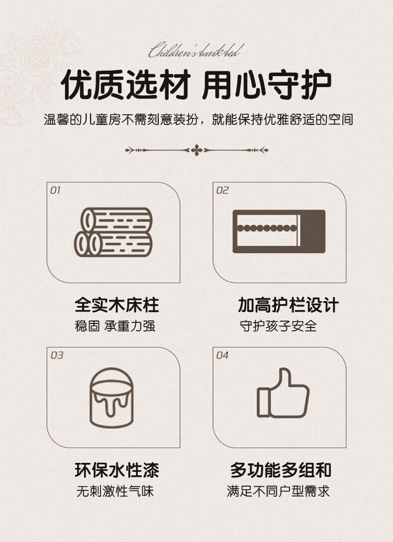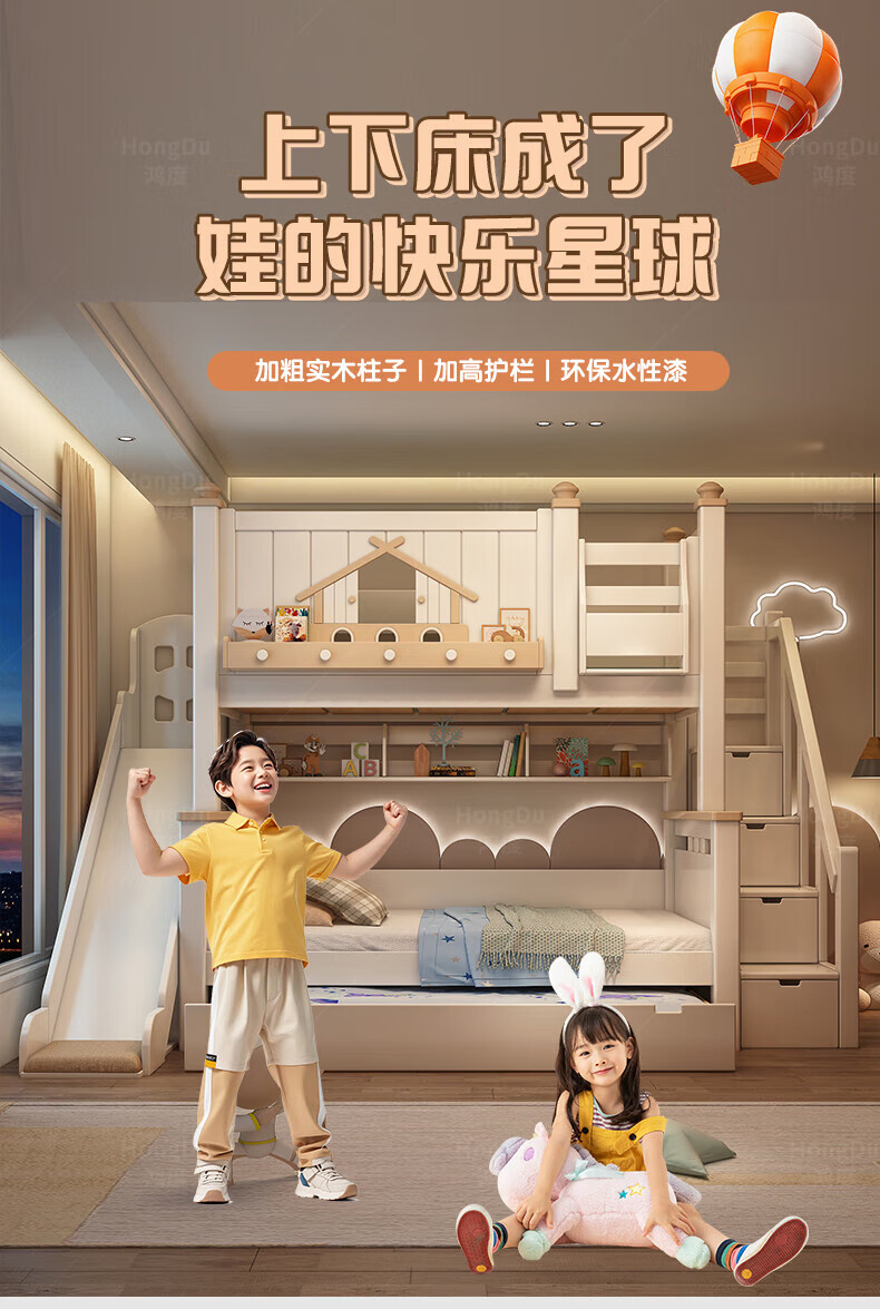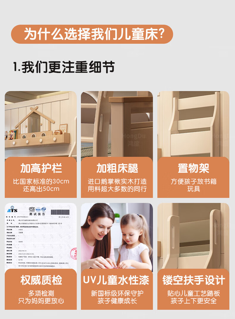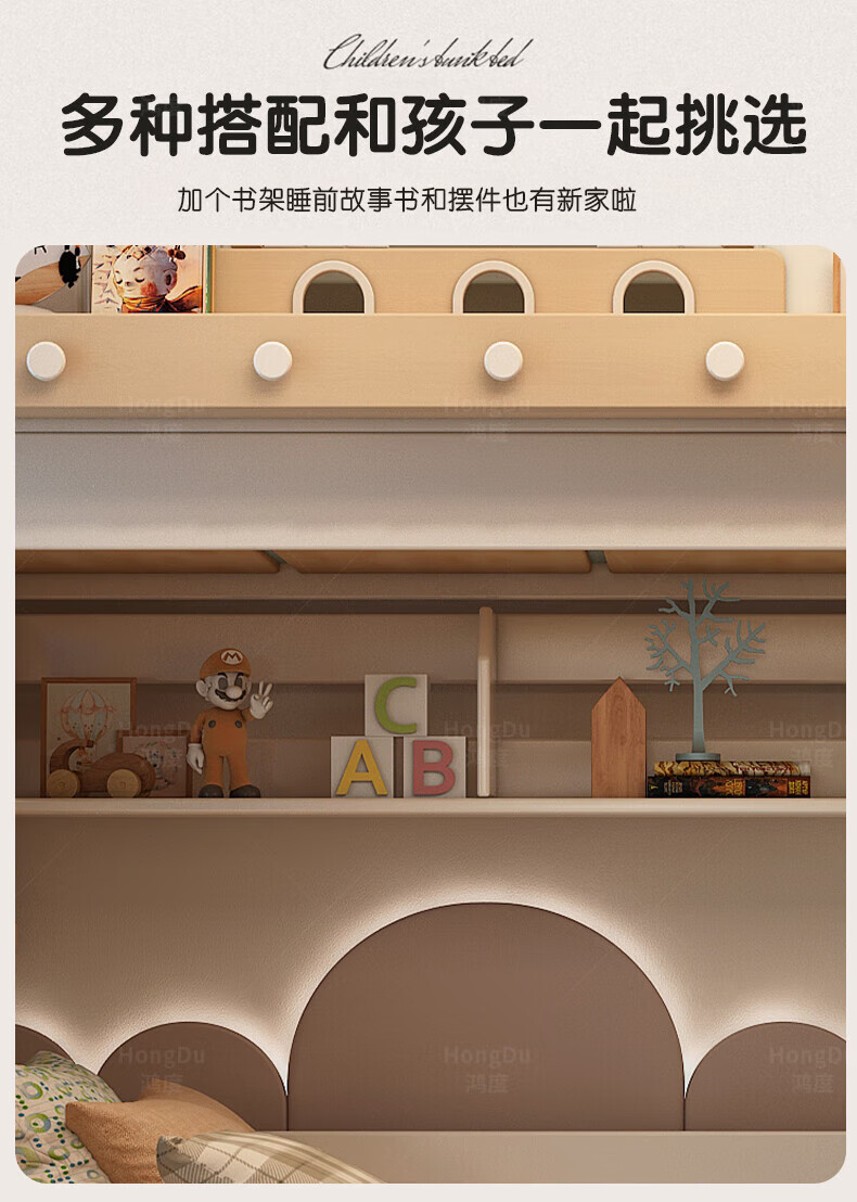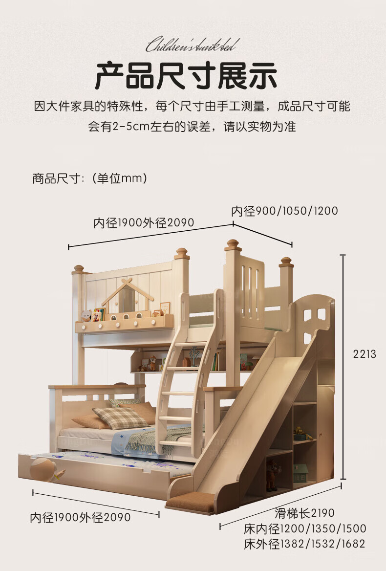 Fenlis all solid wood bed and bunk bed, children's bed, high and low beds do not interfere with each other, double bed and double bed with high guardrails, high and low bed + bookshelf + double drawers + ladder cabinet, bottom bunk 1.5*1.9 meters, upper bunk 1.2*1.9 meters