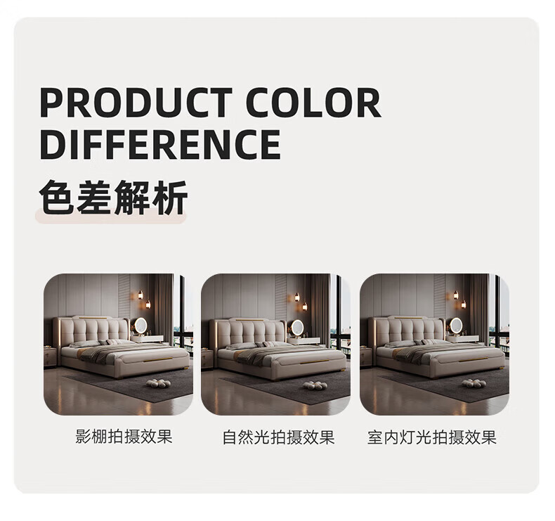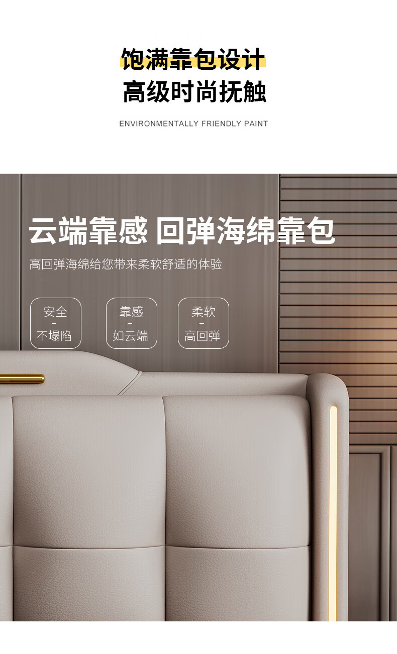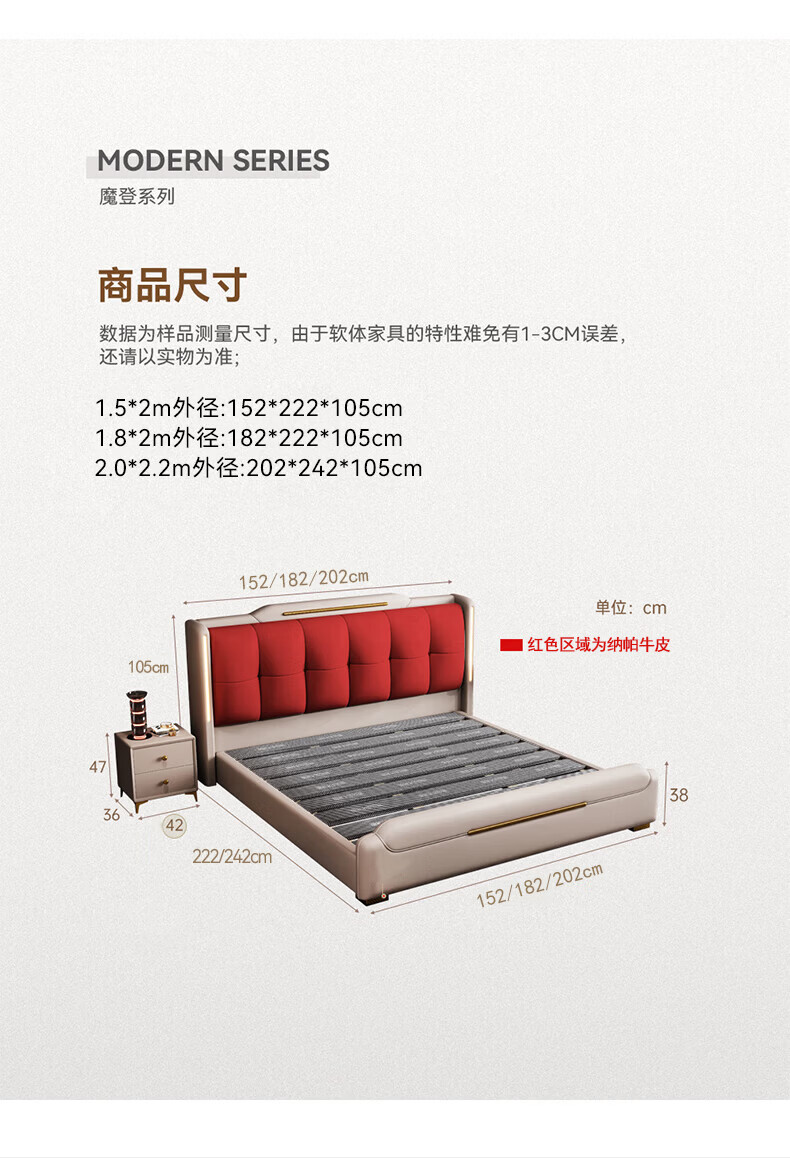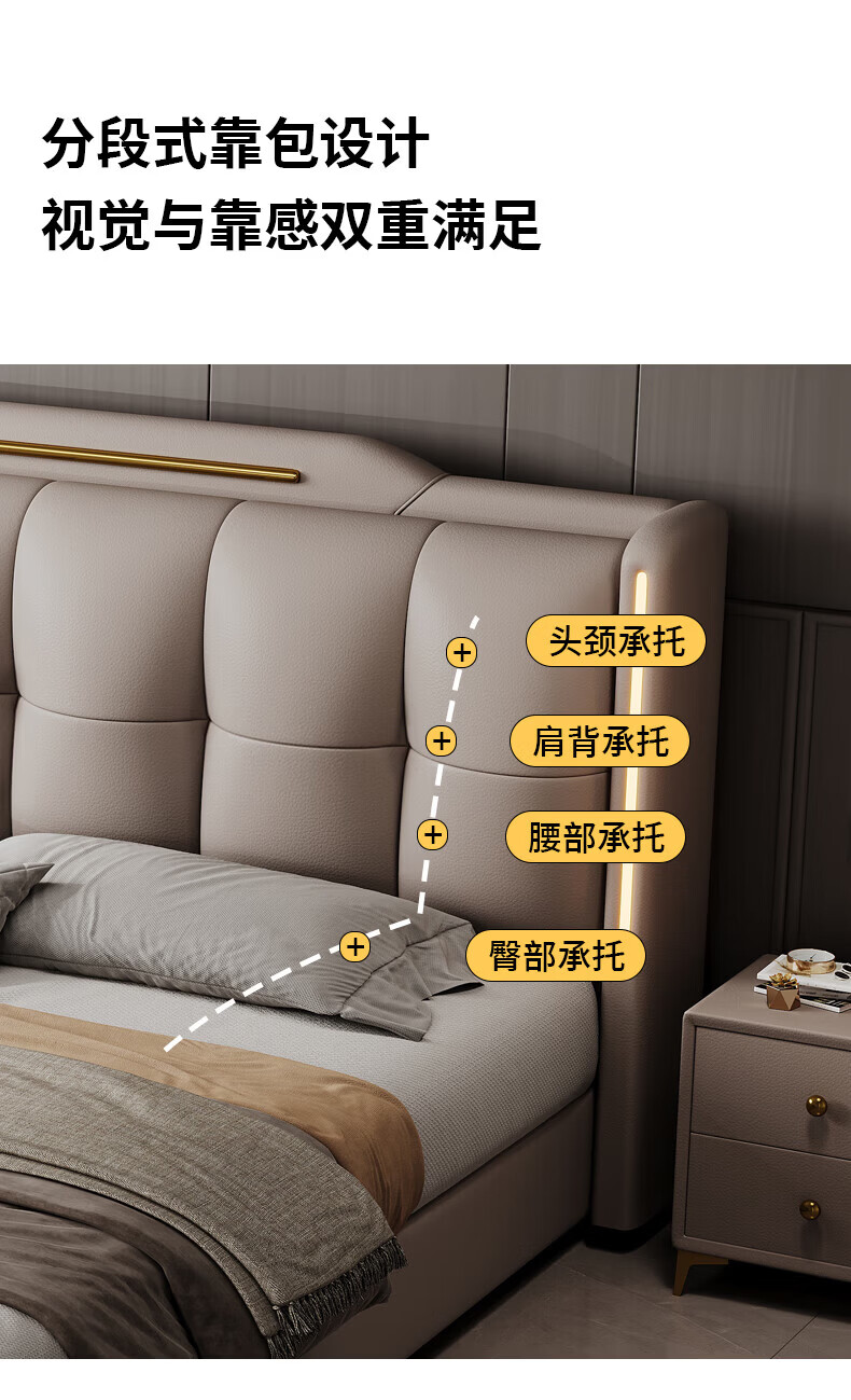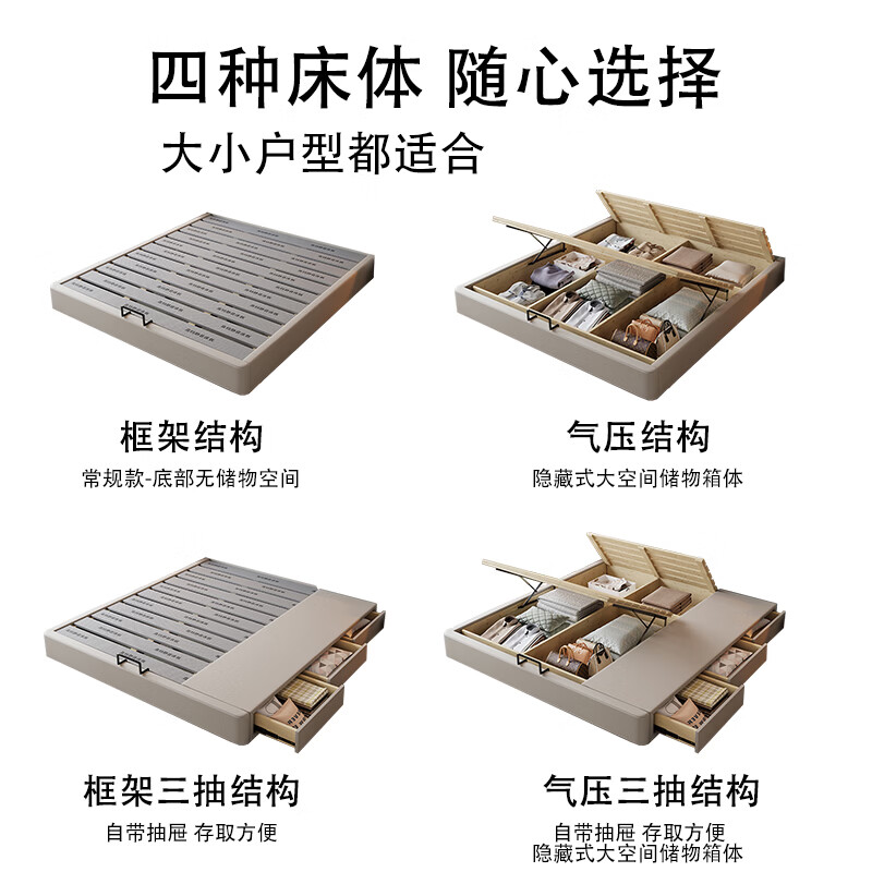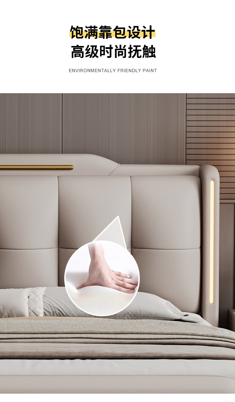 Light luxury style leather bed with light double bed 1m8 master bed 2m large bed wedding bed secondary bed 1m5 single bed bed + 5D honeycomb latex mattress + cabinet 1 + package installation 2.0*2.2m full bed bed frame