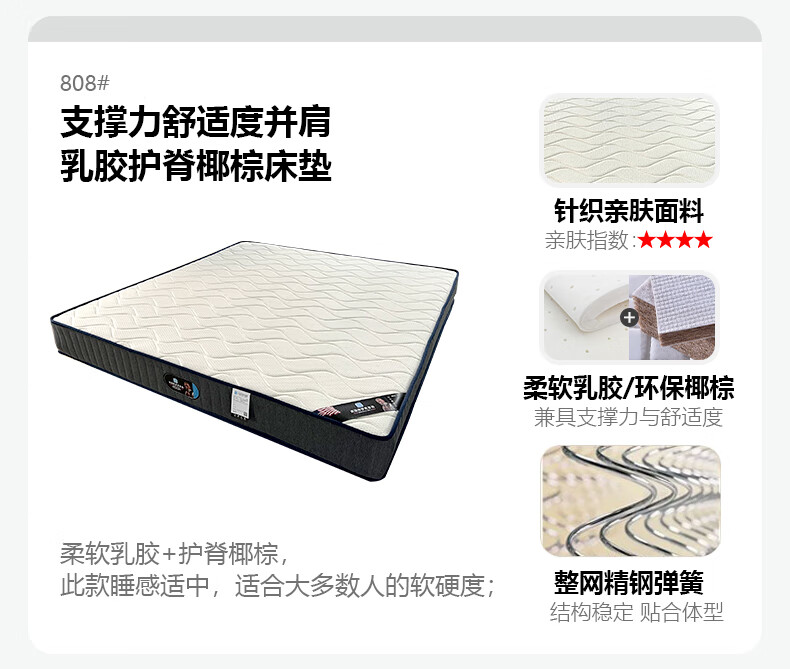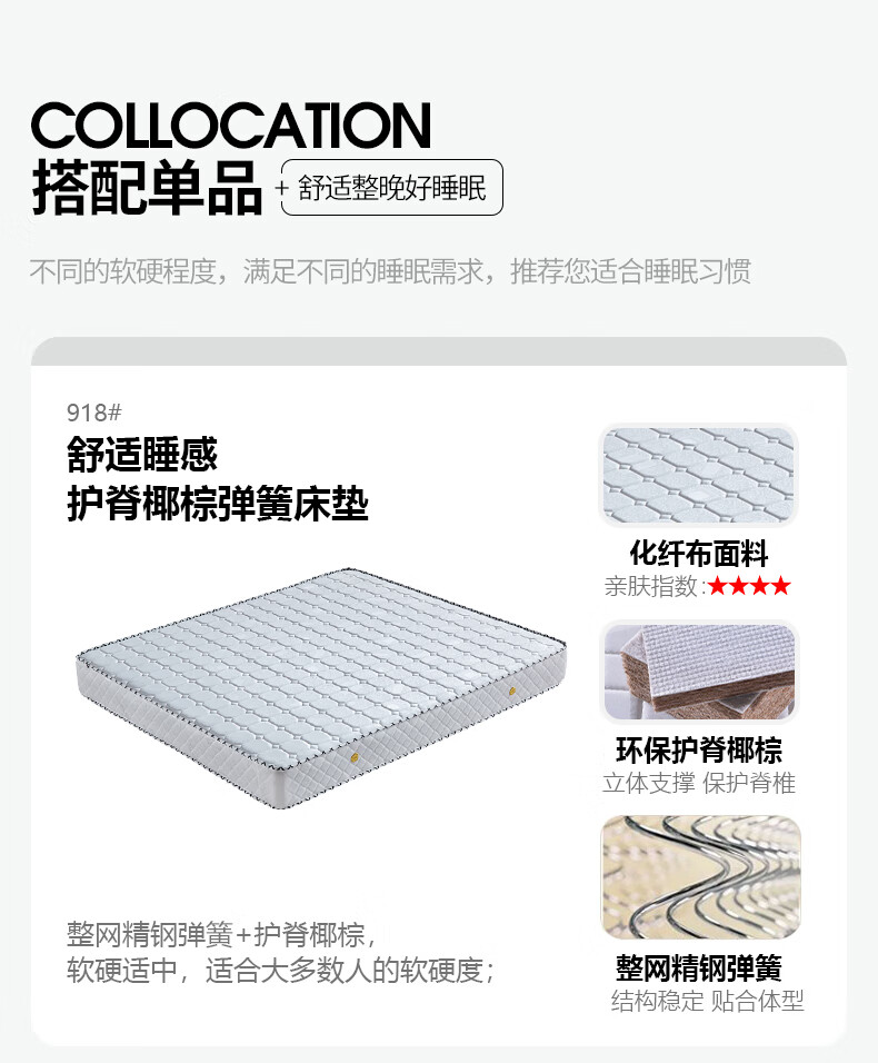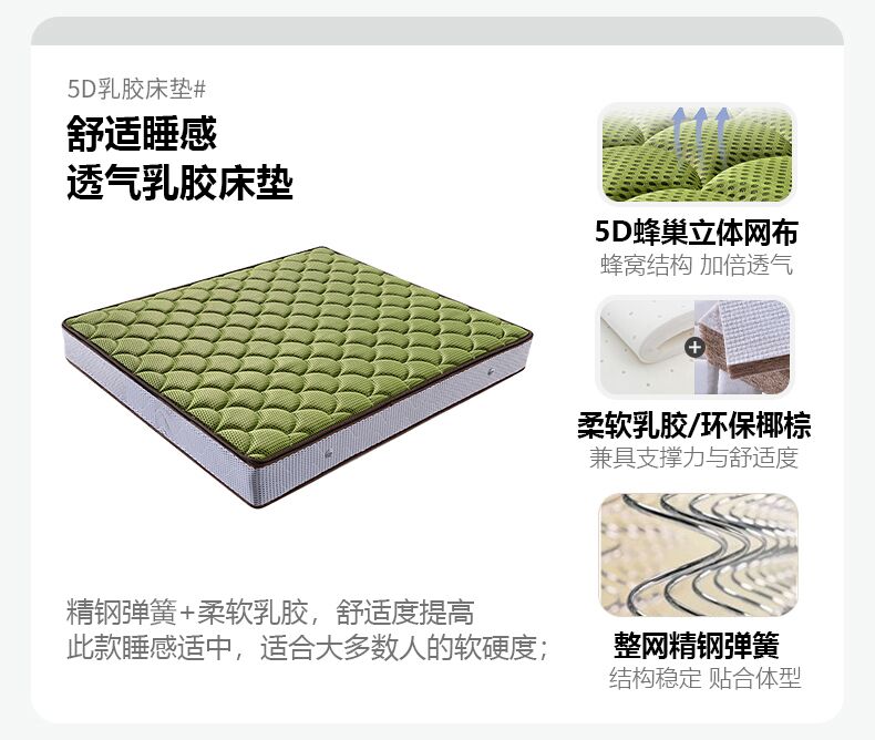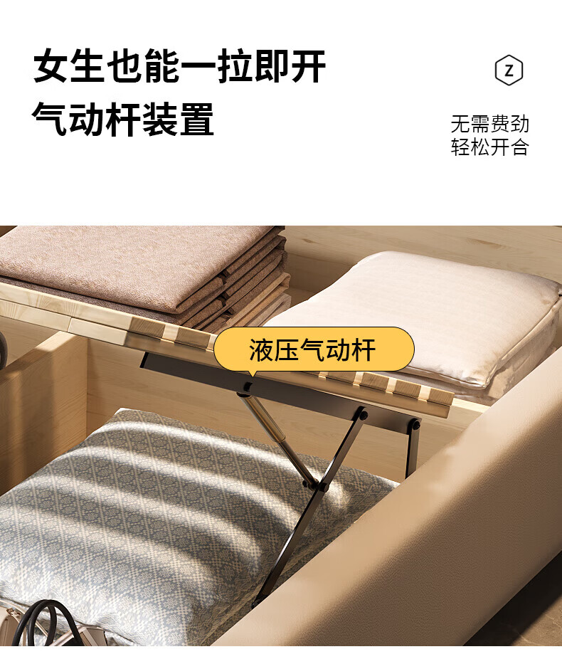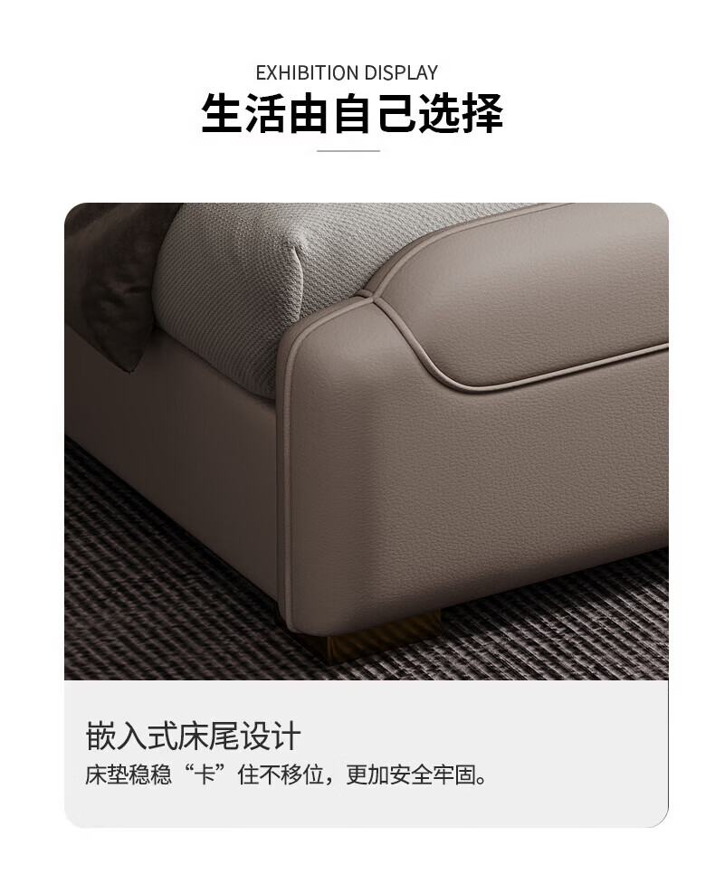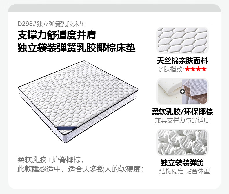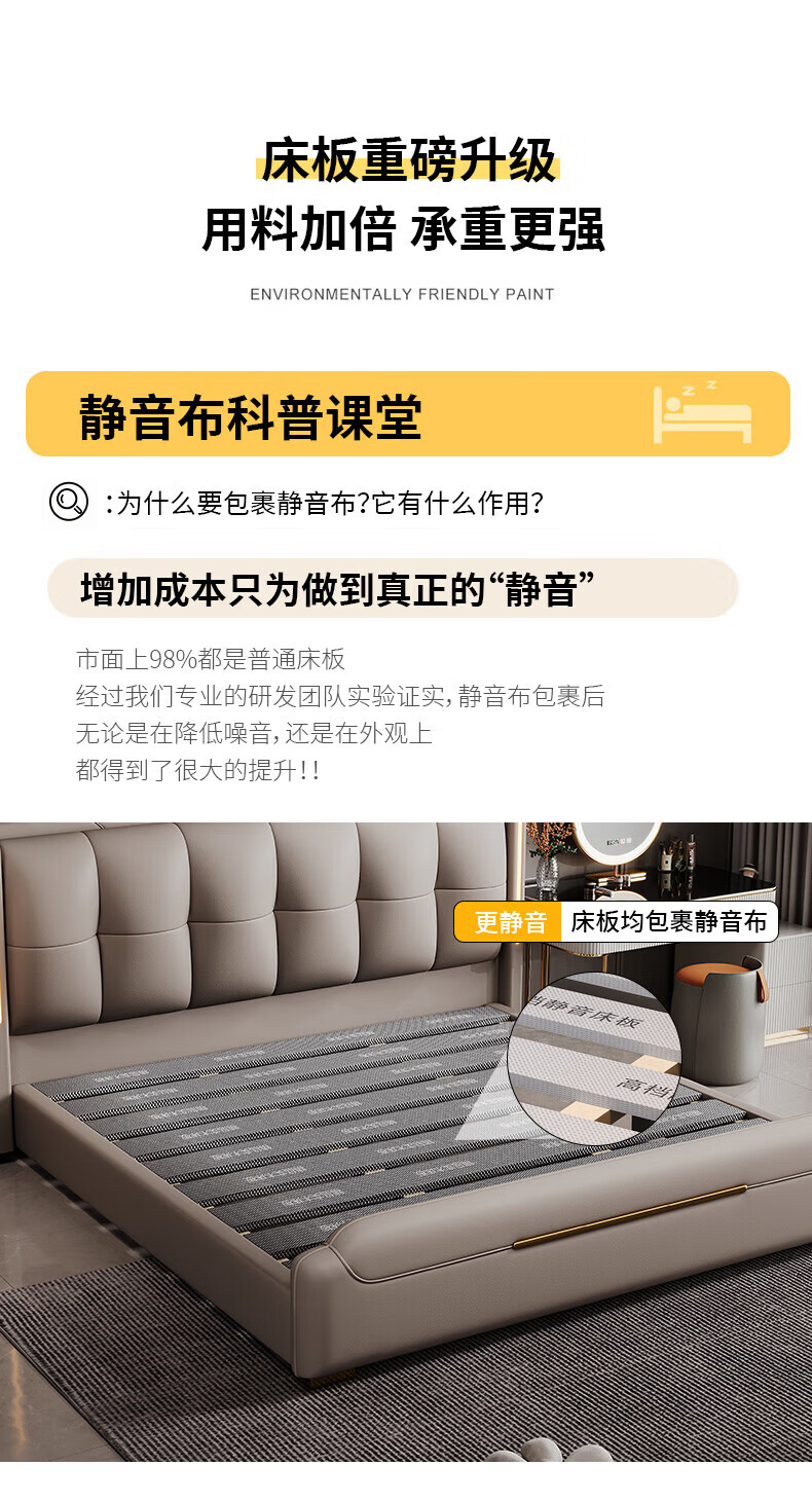 Light luxury style leather bed with light double bed 1m8 master bed 2m large bed wedding bed secondary bed 1m5 single bed bed + 5D honeycomb latex mattress + cabinet 1 + package installation 2.0*2.2m full bed bed frame