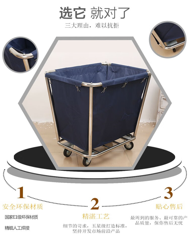 Stainless steel hotel room linen cart bag hotel thickened silent linen cart multi-functional cleaning room entrance cart fully equipped single-pass stainless steel installation-free-5-inch wheel