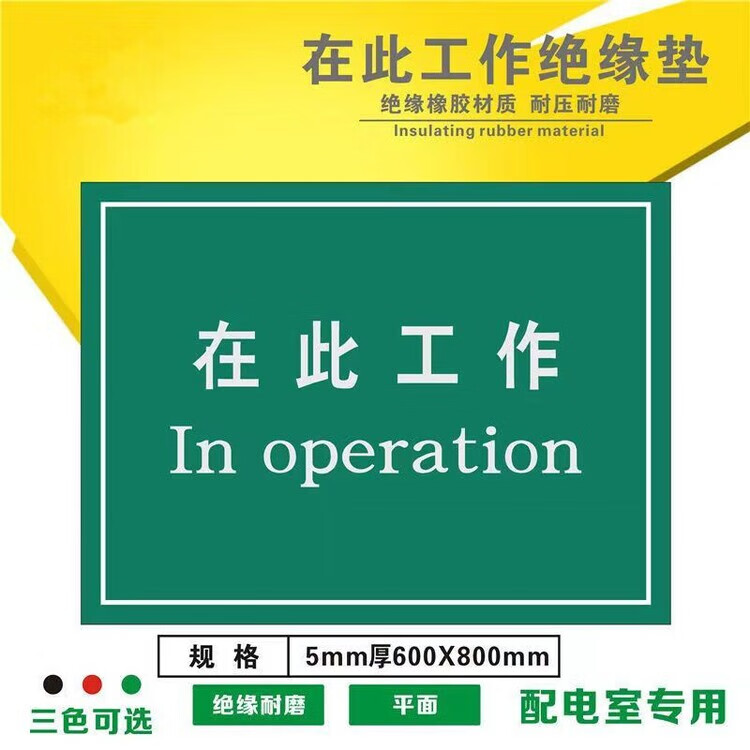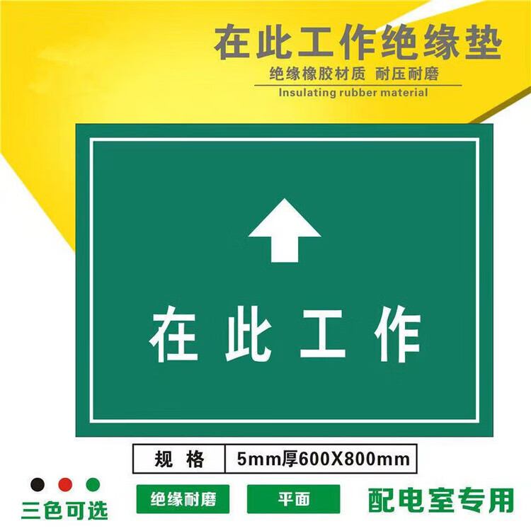 Diaohuang Insulating Floor Mat Work Here Rubber Mat Maintenance Work Workbench Mat Power Distribution Room Station Mat Maintenance Work Mat Rubber 5*800*800 Work Here Yellow Letter