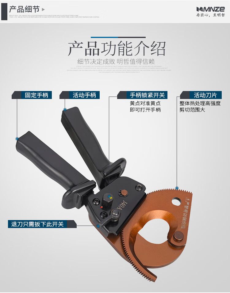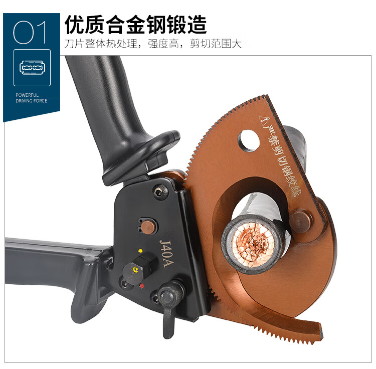 Yingnet Yuhuan Mingzhe cable cutter J40A ratchet gear cable scissors cable cutter wire cutter cable cutter J40A (cut single strand below 300mm)