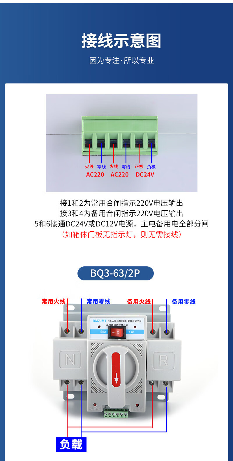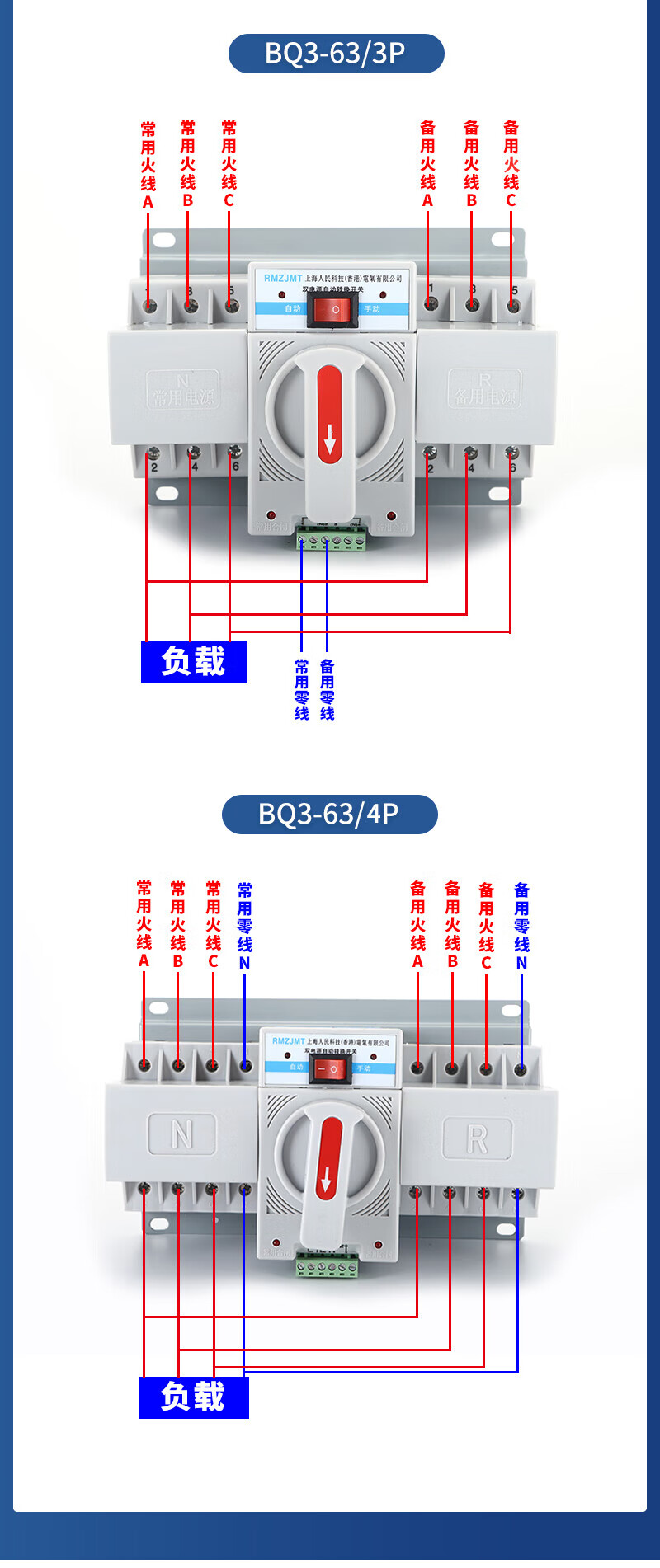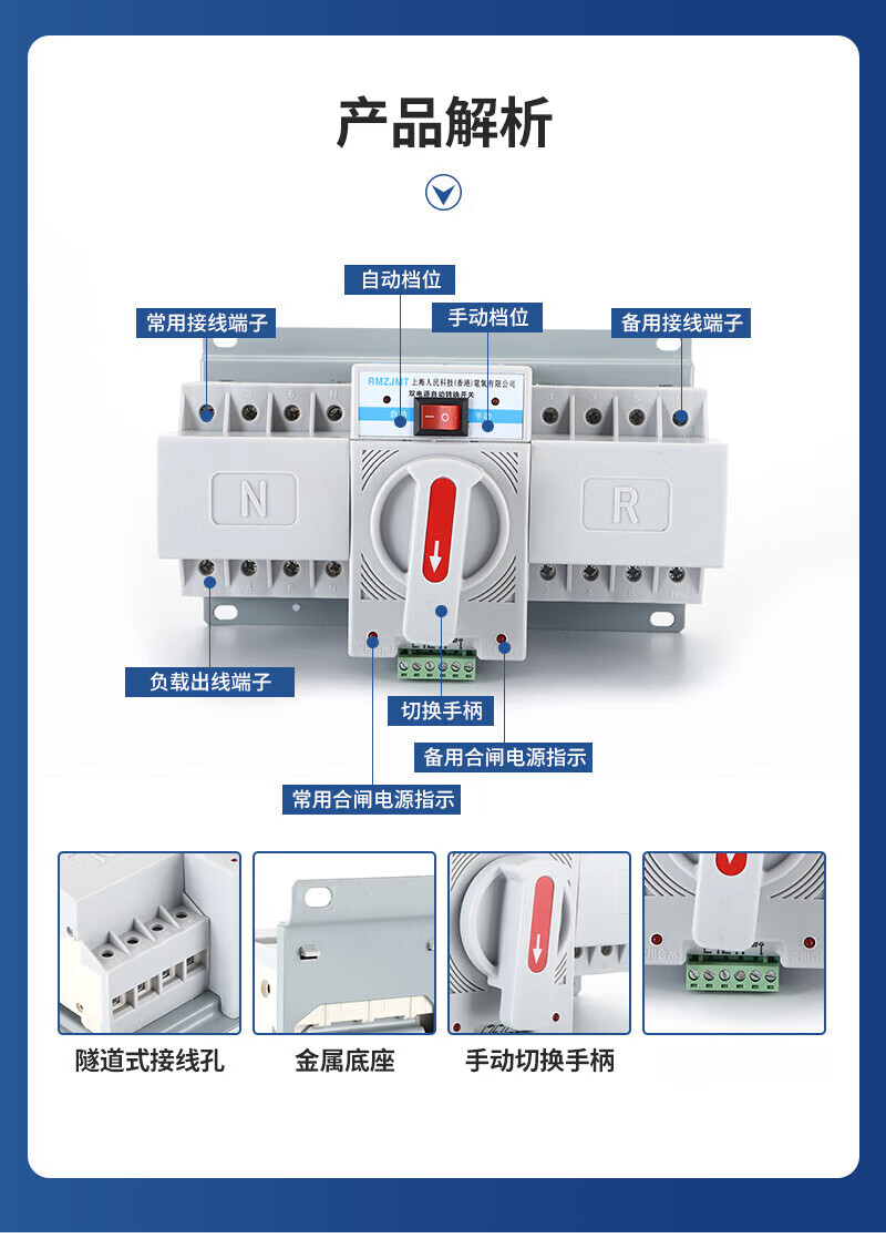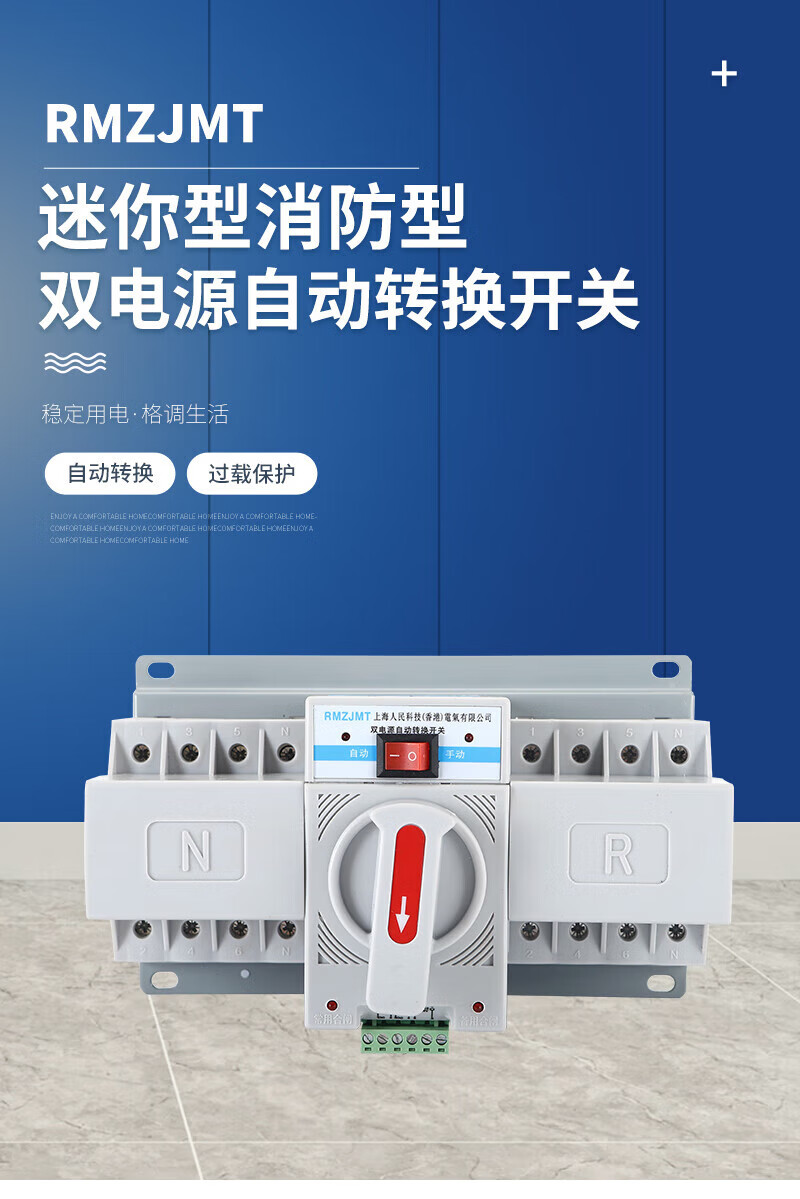 Shanghai People's Electrical Appliances dual power automatic transfer switch pc level 2P3P4P fire mini 63A 2P 50A