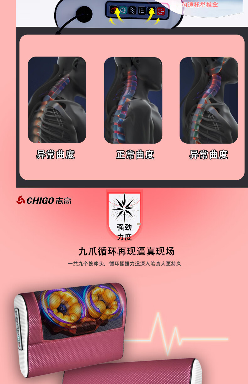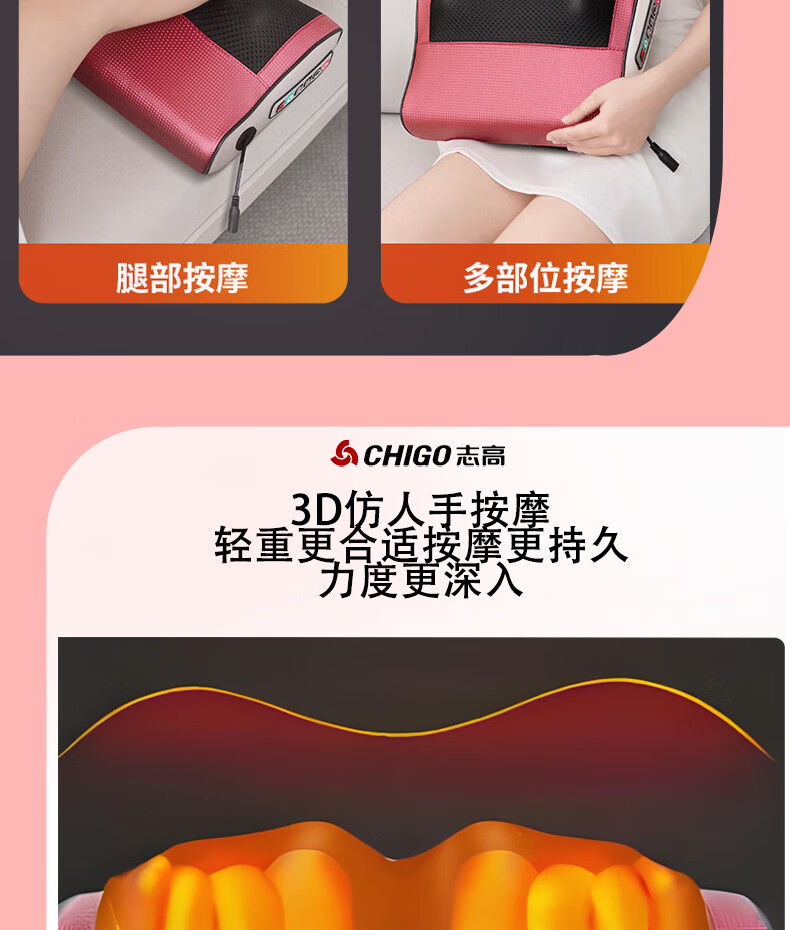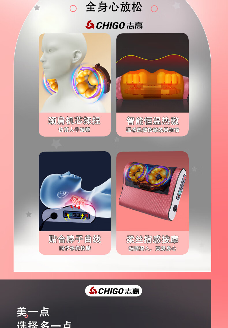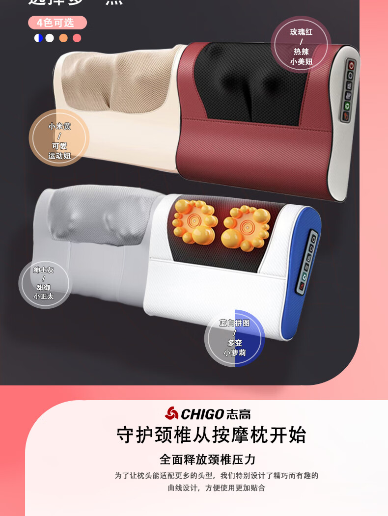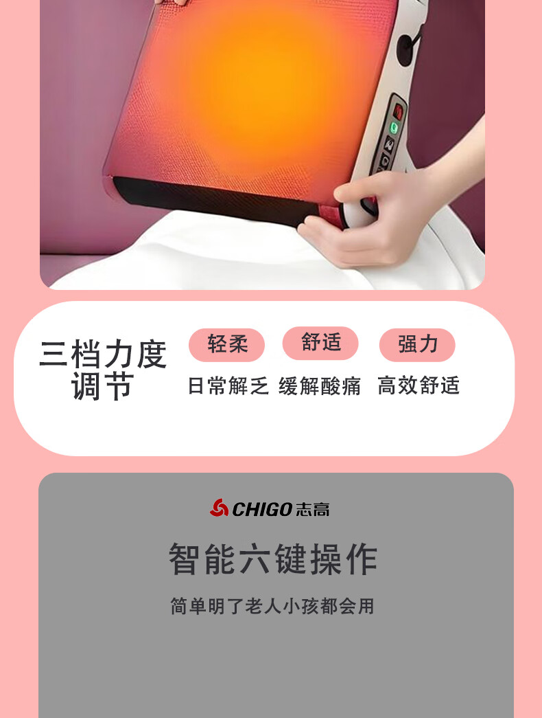CHIGO Cervical Massager Pillow and Waist Massager Cervical Shoulder, Neck and Waist Multifunctional Massage Cushion. Practical birthday and holiday gift for parents and elders. Top with six-button plug-in gift box. 12 massage heads + positive and negative kneading + three adjustments.