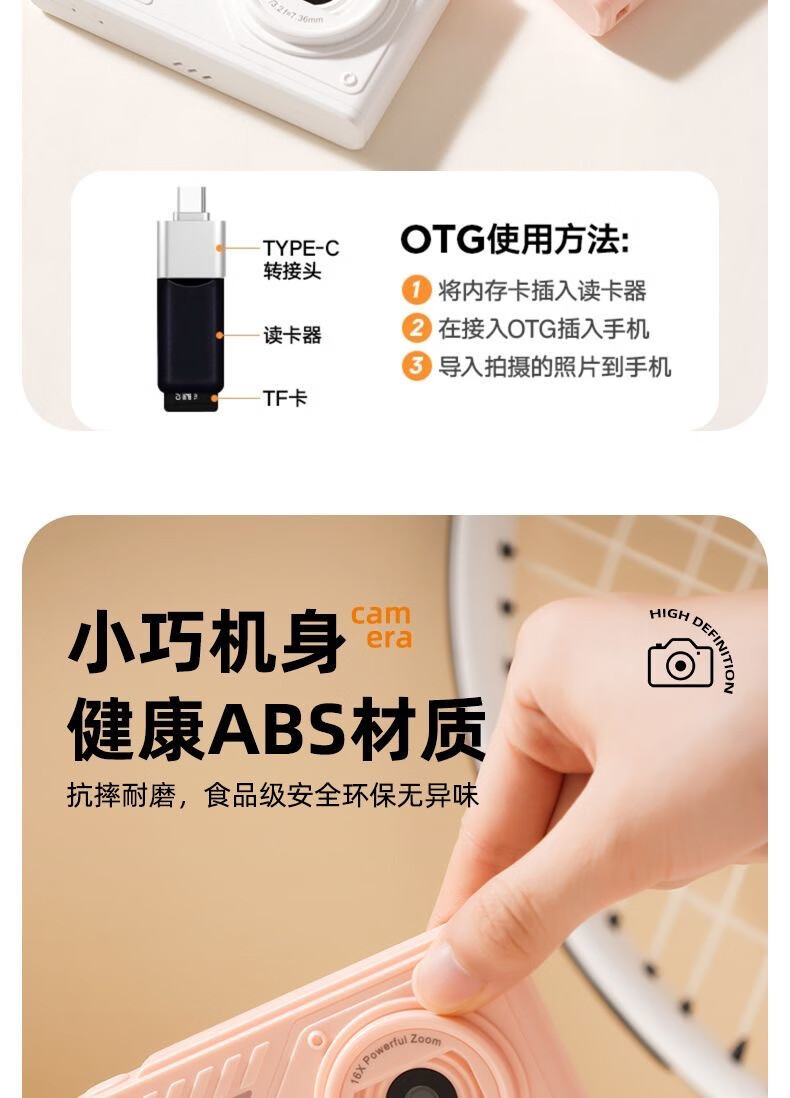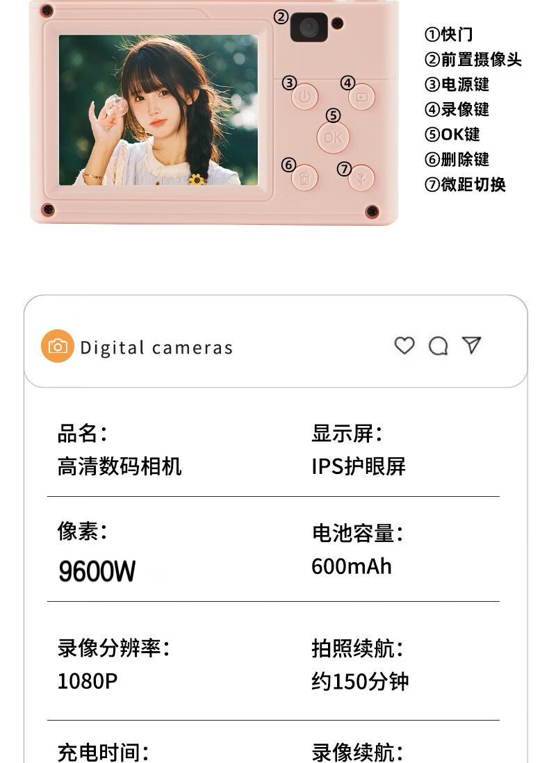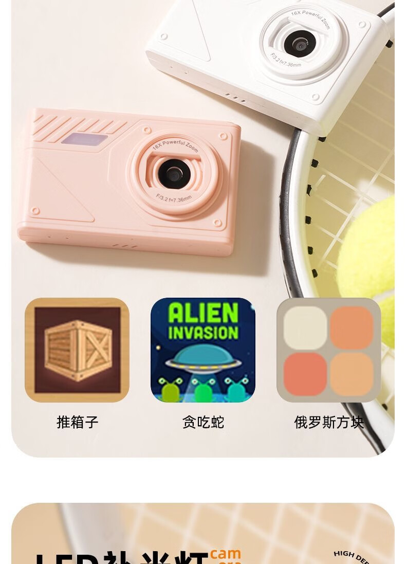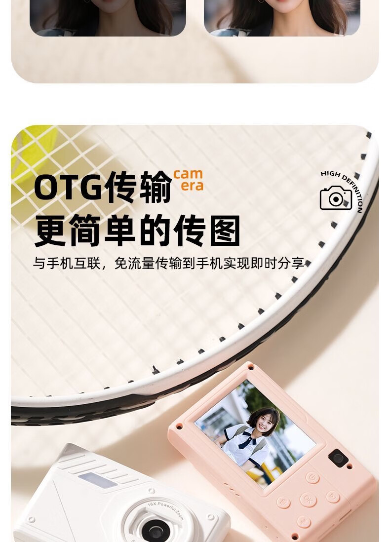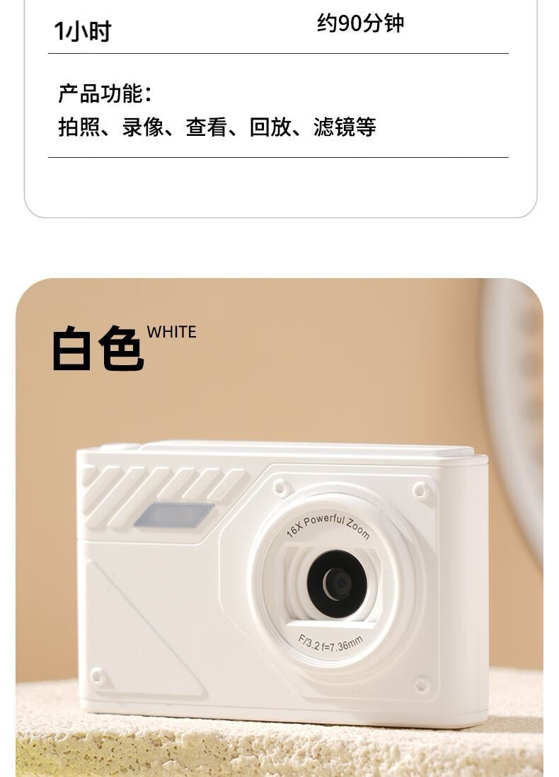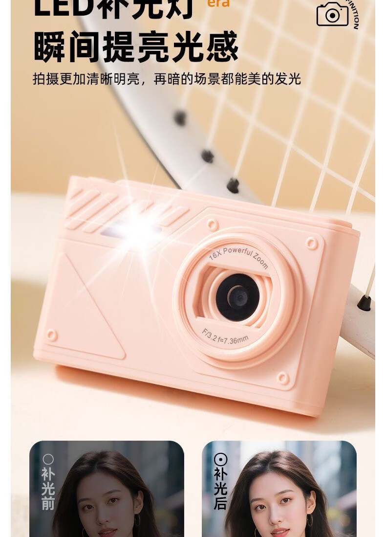 Youheyue high-definition digital camera, a student-specific high-pixel CCD camera that can take pictures on campus travel, a small portable camera Z007-white, beauty filter + fill light, 32G high-speed memory card (free Android gift package)