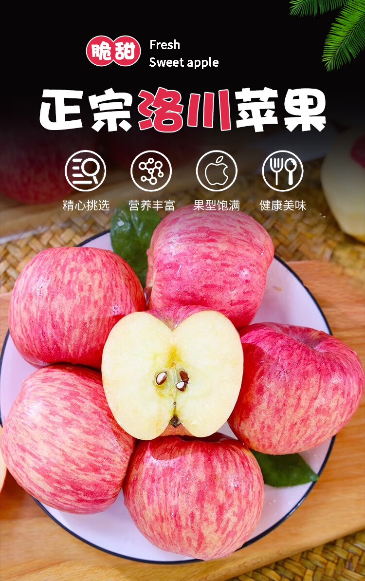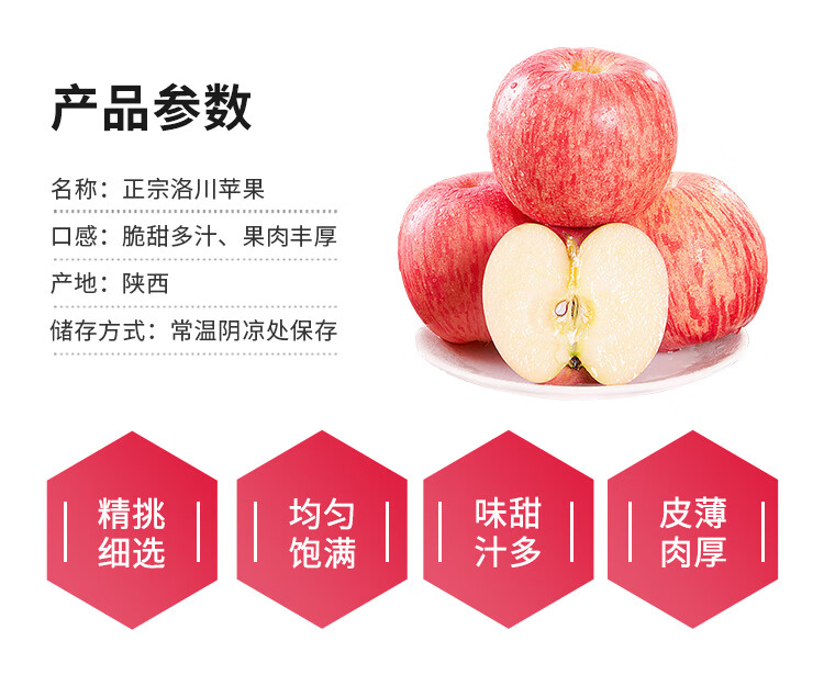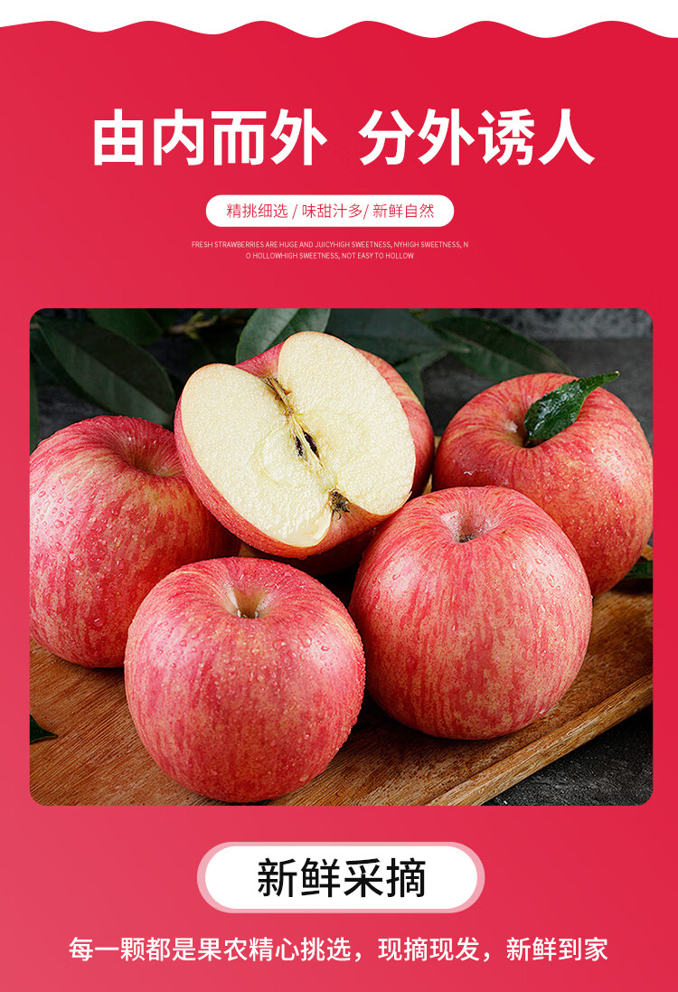 Authentic Shaanxi Luochuan apples, red Fuji, fresh seasonal rock candy, crispy and sweet, whole box of fresh fruits for pregnant women, about 5 kilograms in box, single fruit 75mm+