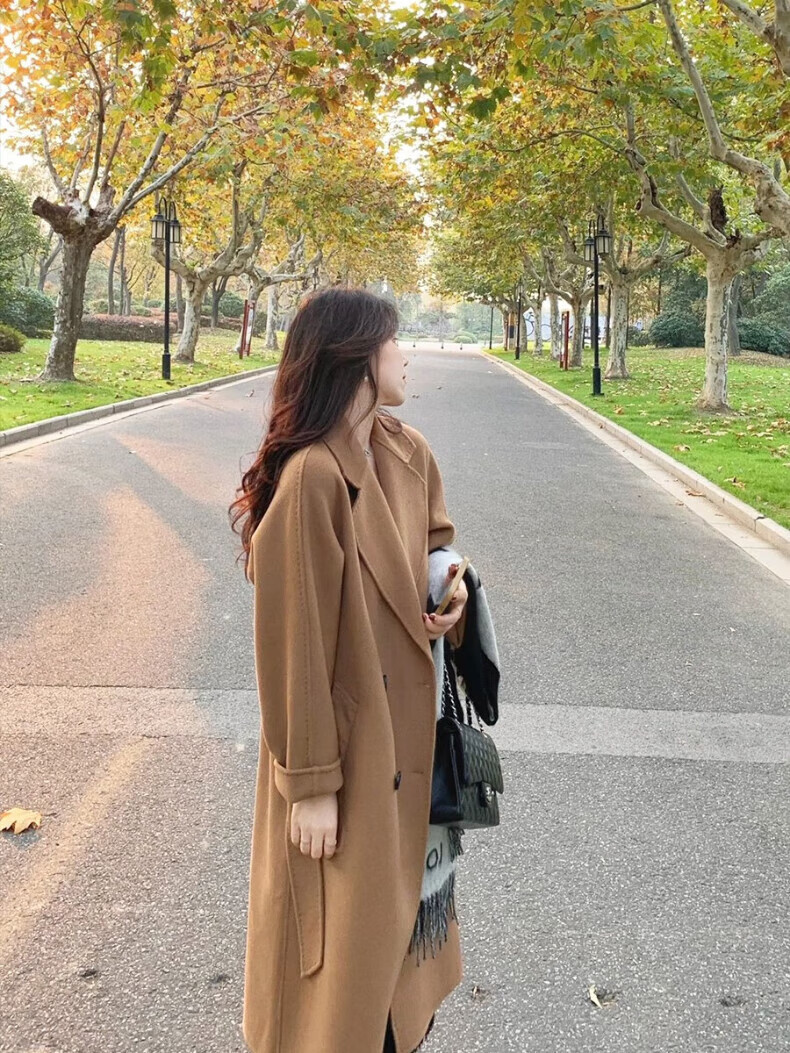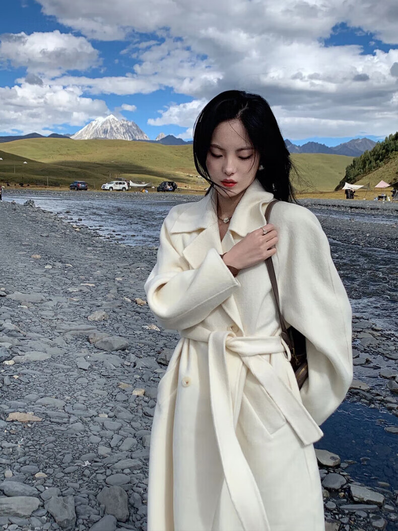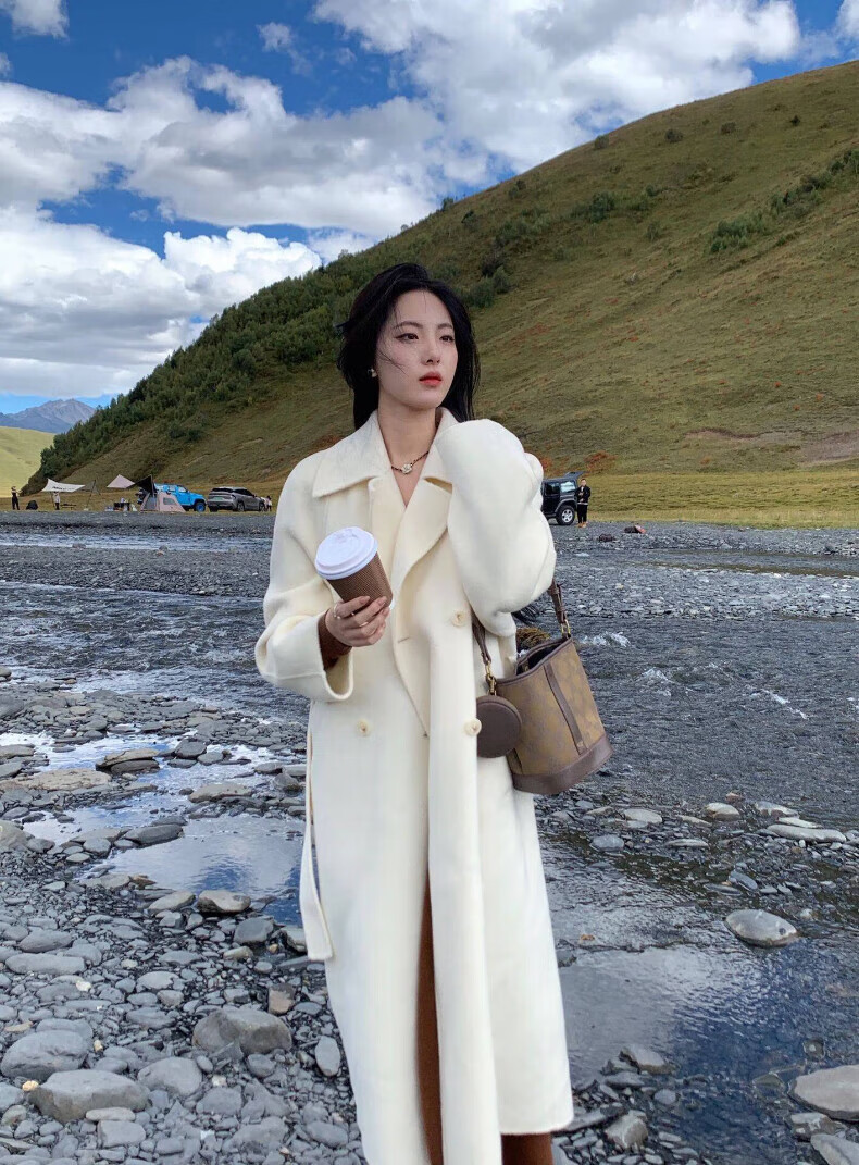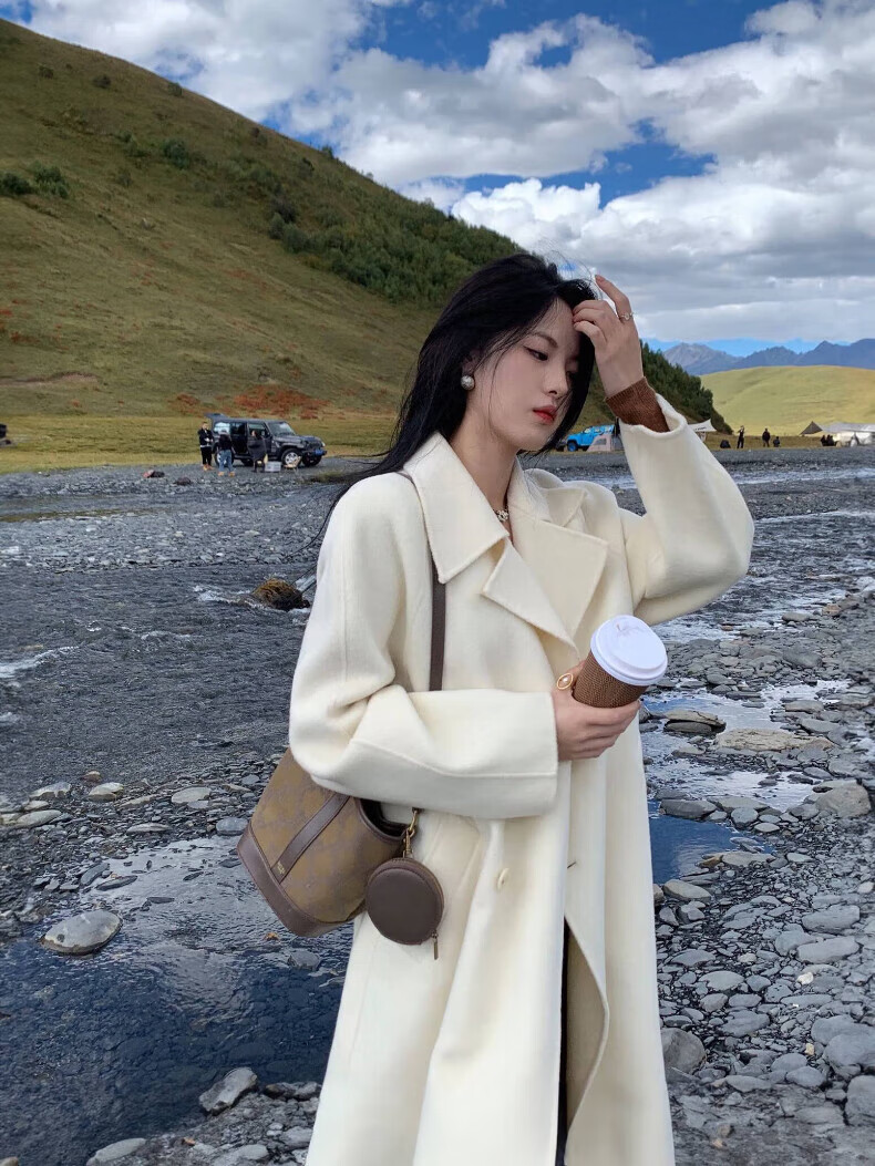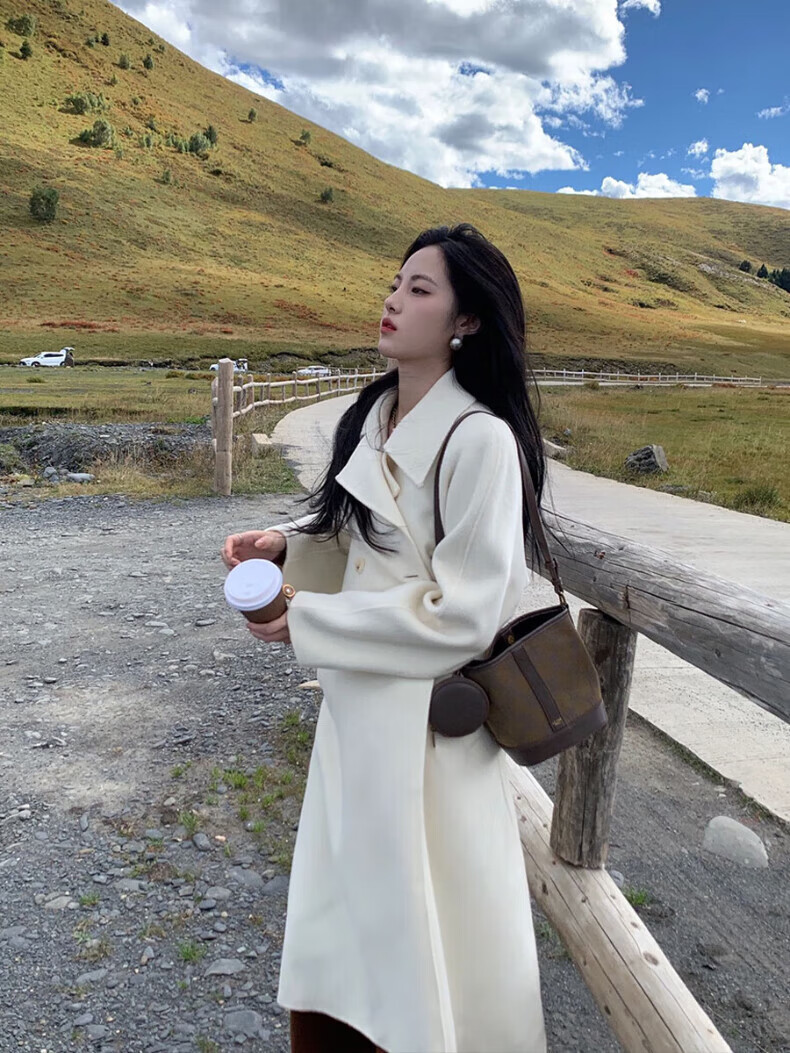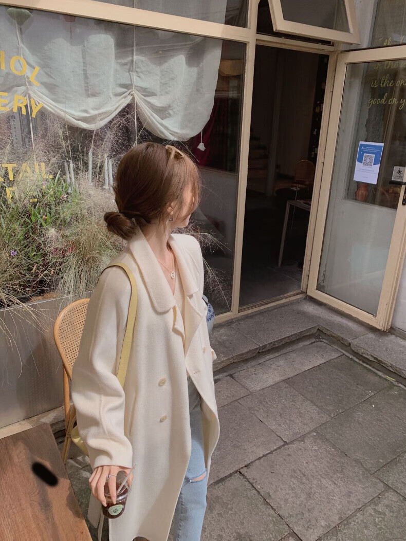 ONEDEW International Brand Double-sided Cashmere Woolen Coat Women's Mid-Length Autumn and Winter New Style Korean White Woolen Coat Oatmeal White Gift Box + JD Home Delivery S (Recommended 106-115 catties)