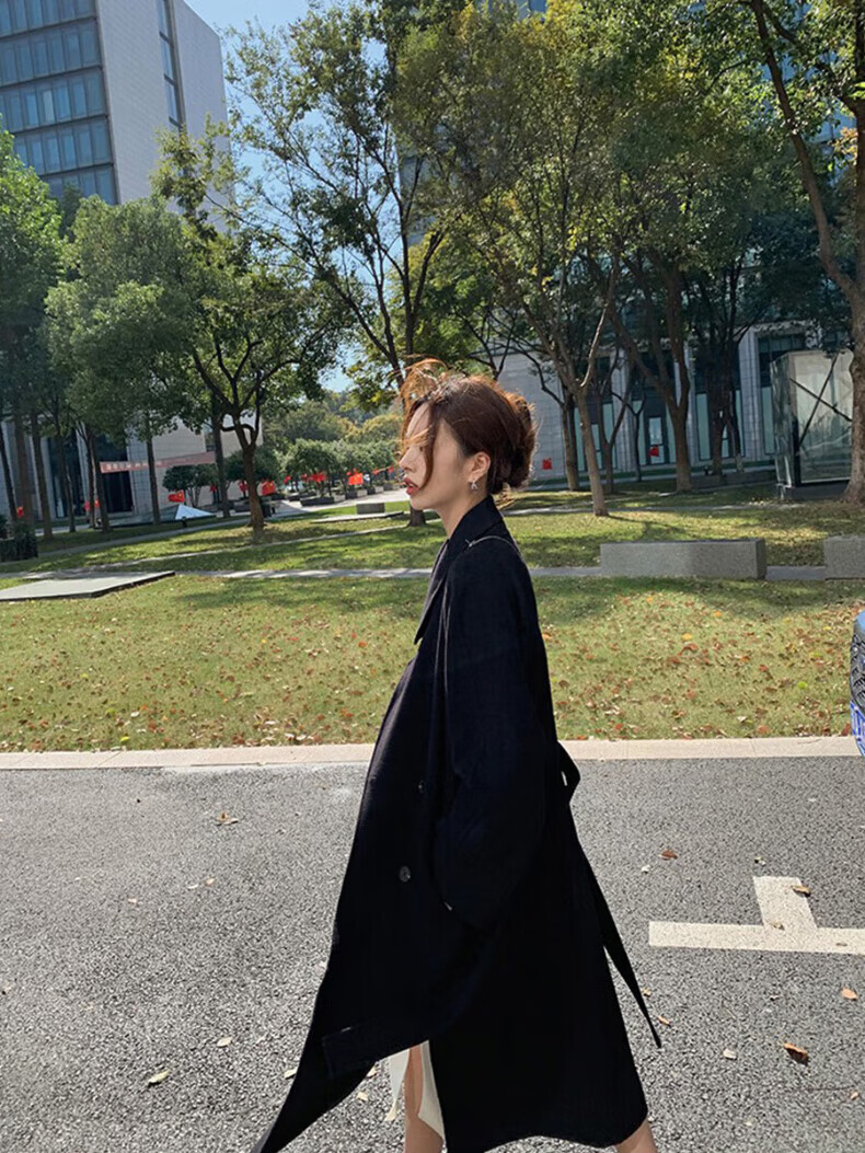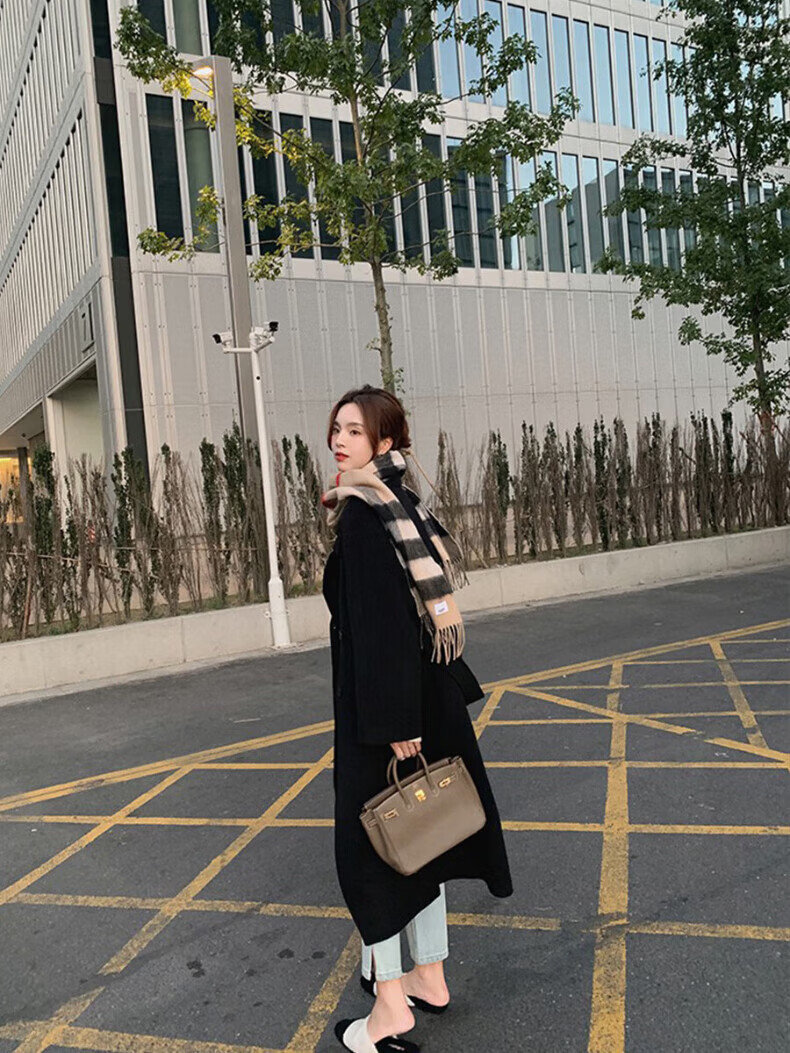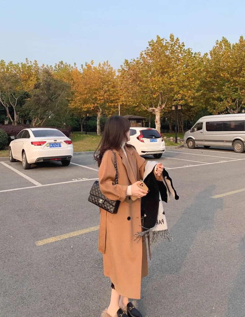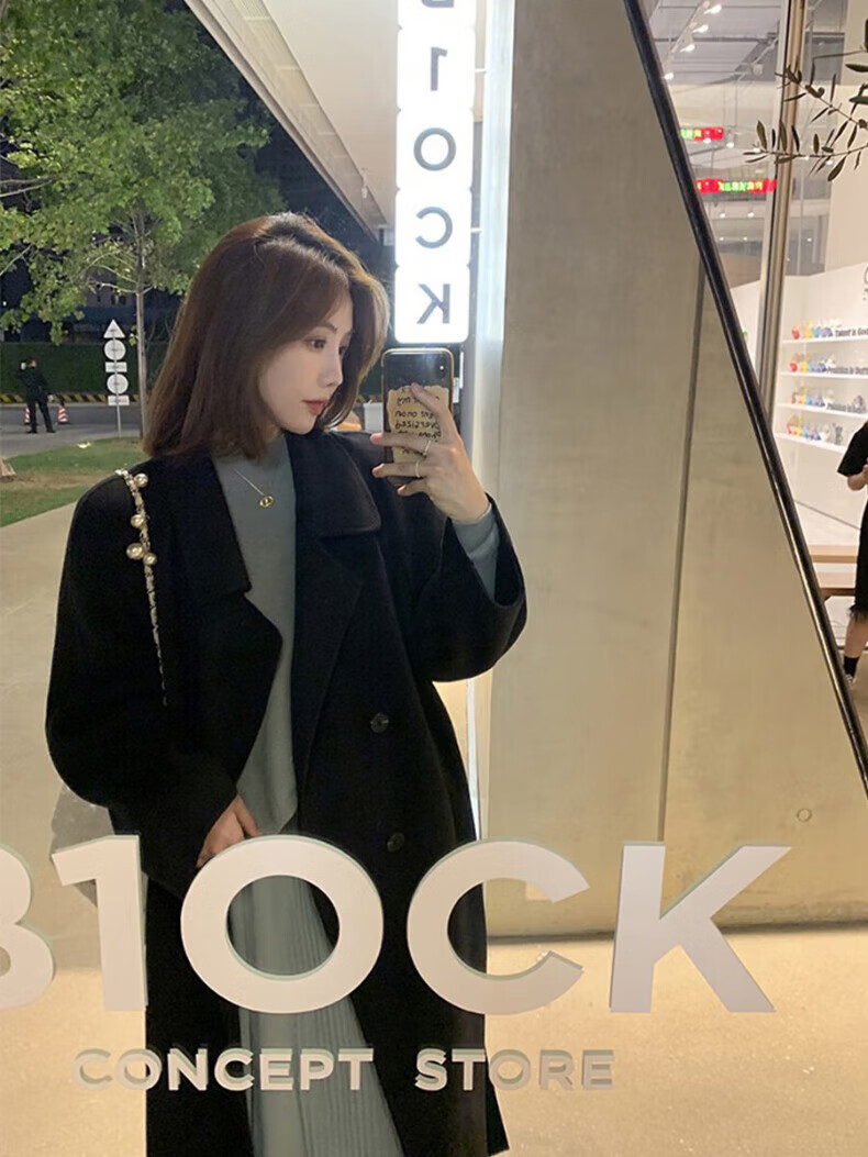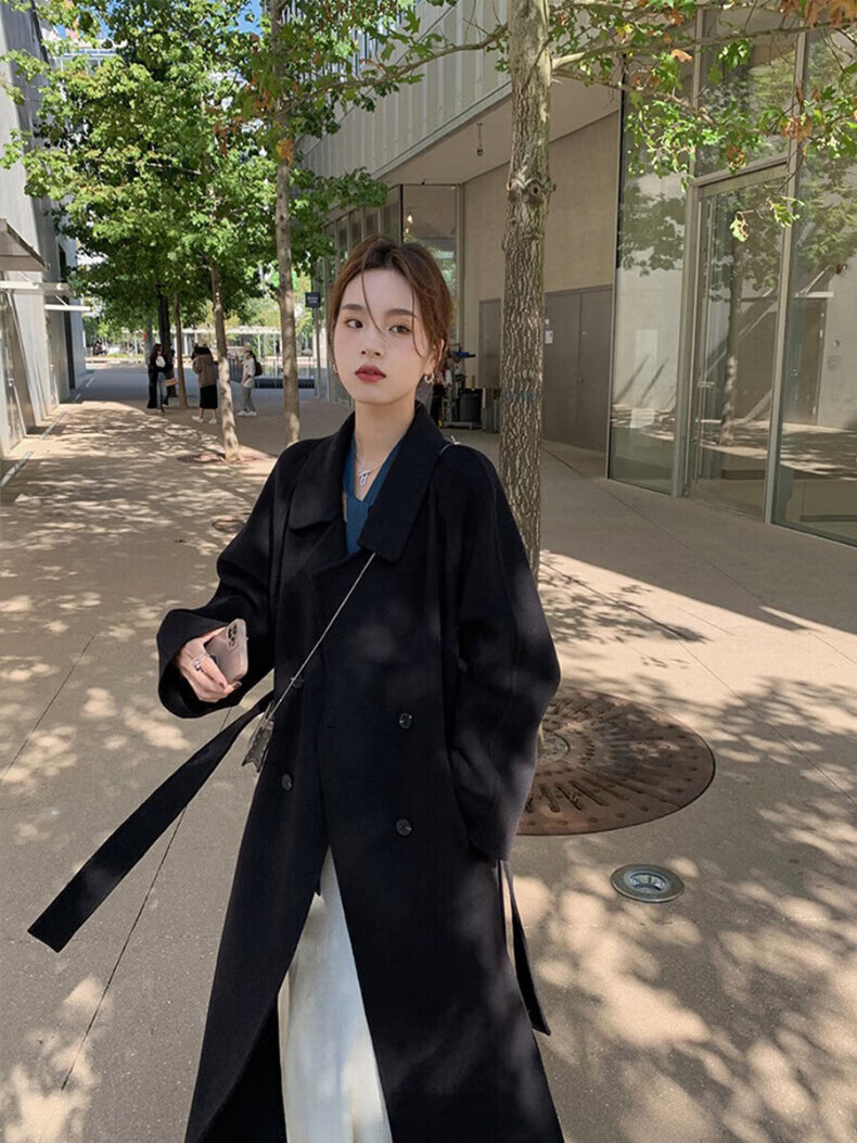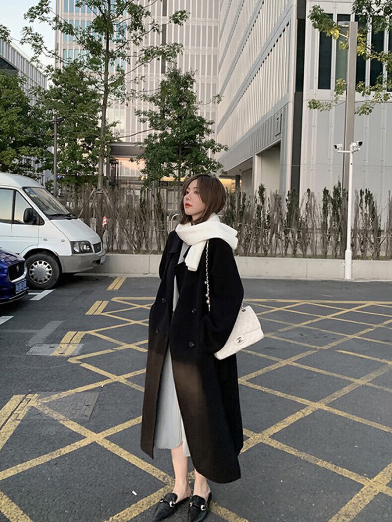 ONEDEW International Brand Double-sided Cashmere Woolen Coat Women's Mid-Length Autumn and Winter New Style Korean White Woolen Coat Oatmeal White Gift Box + JD Home Delivery S (Recommended 106-115 catties)