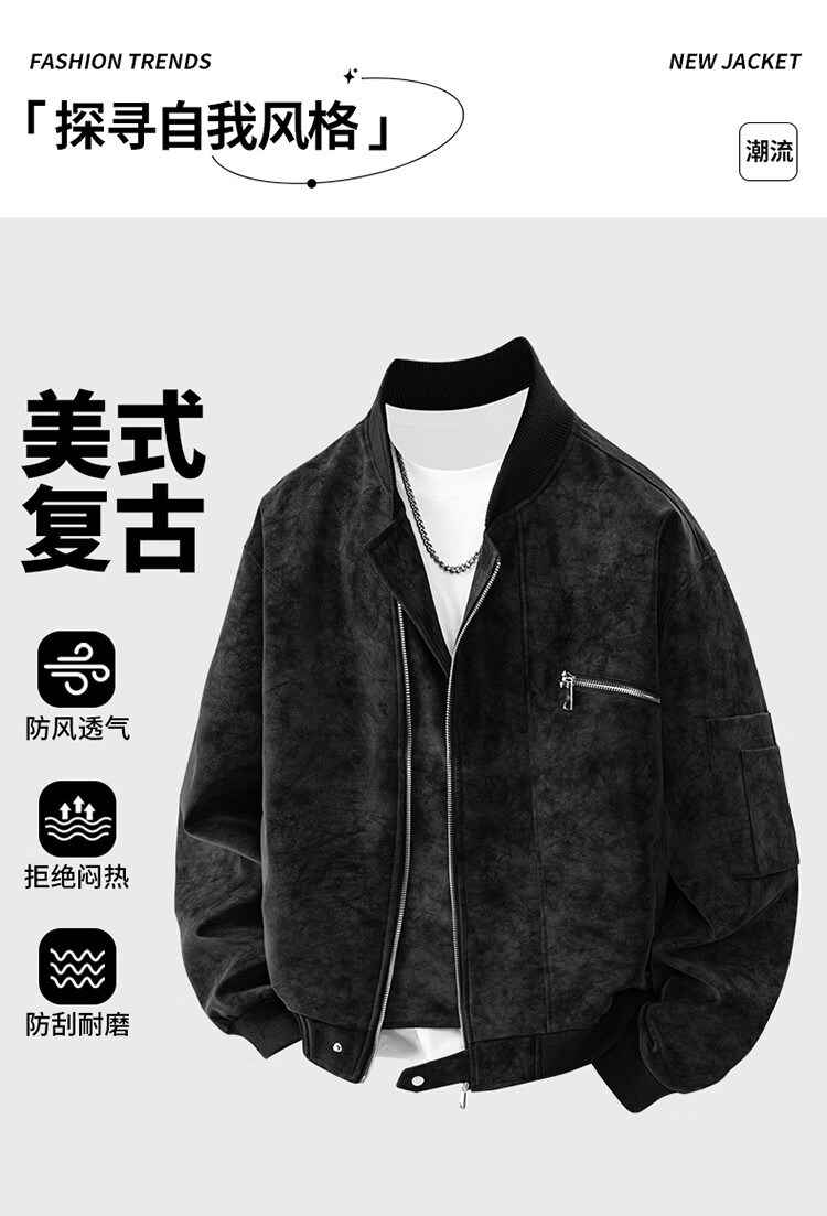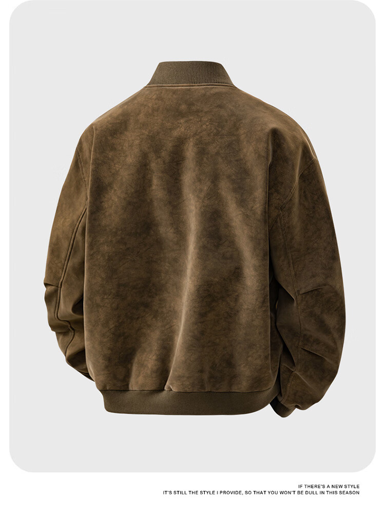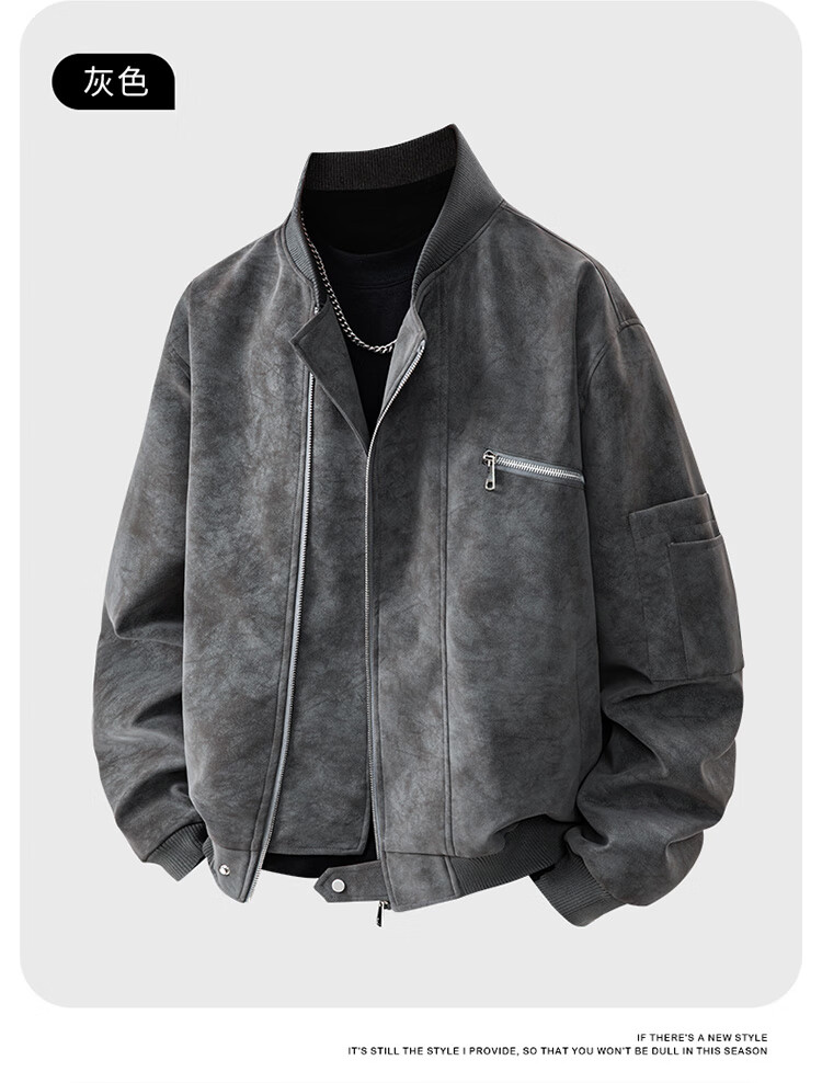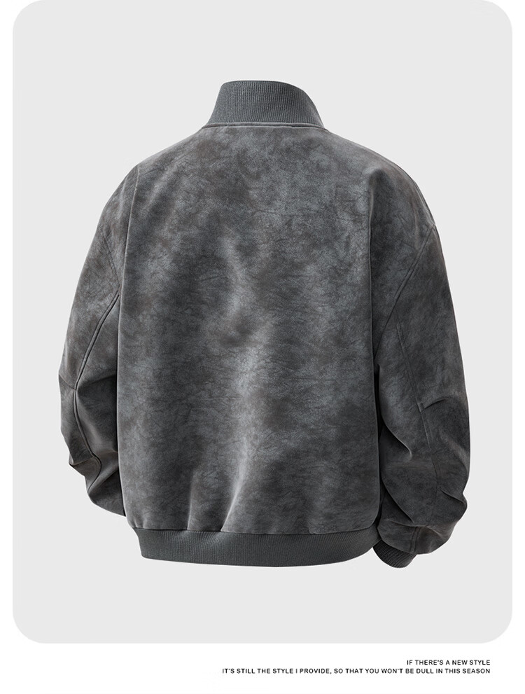 Nasawassup flight jacket men's trendy autumn and winter leather jacket American tie-dye pu leather loose handsome versatile baseball uniform gray L recommended 125-145 pounds