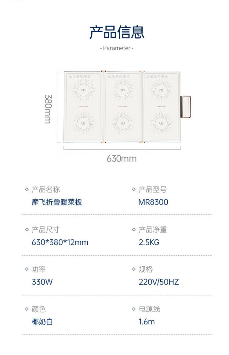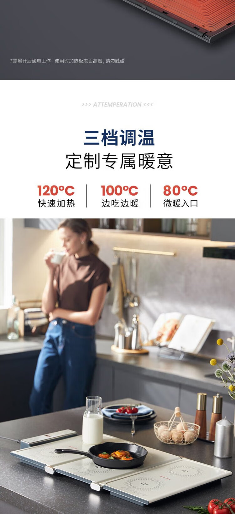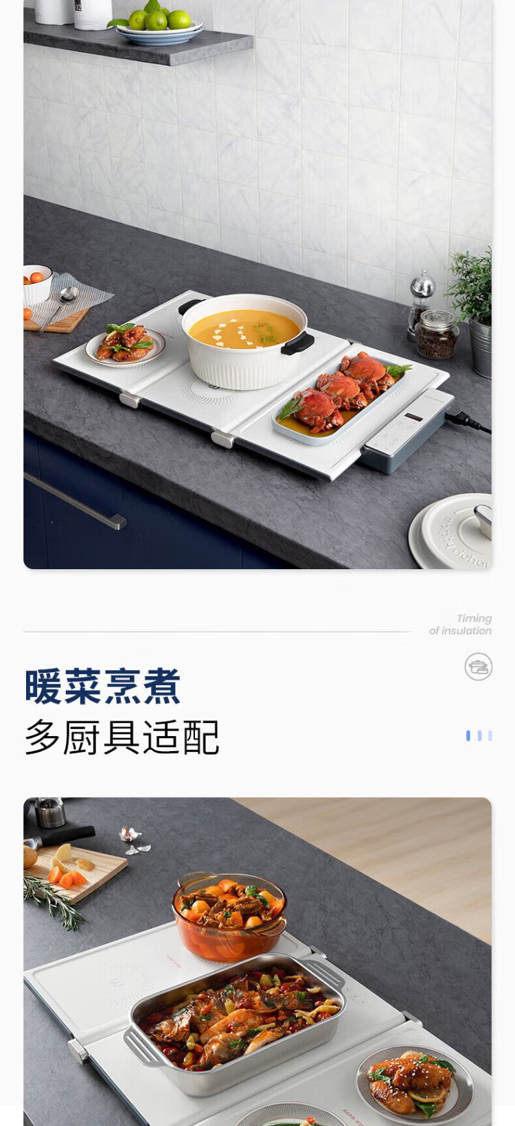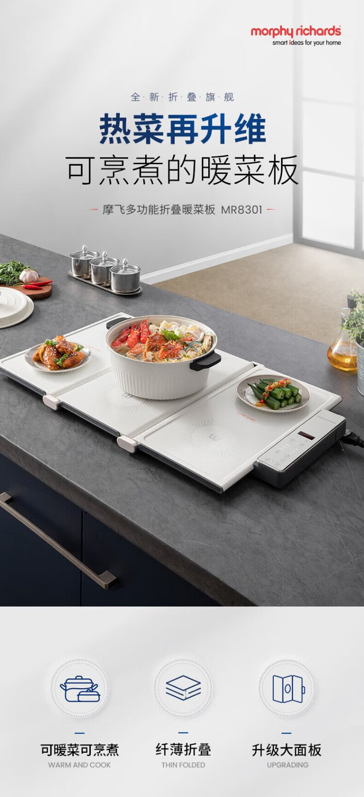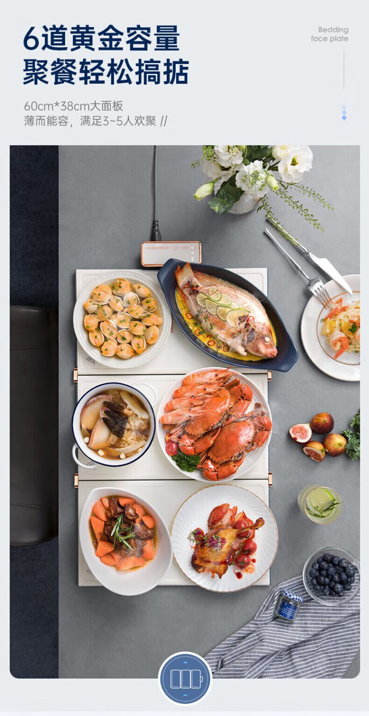 Morphyrichards Folding Warming Board Multifunctional Slim Hot Chopping Board Insulation Board Home Warming Mat Electric Ceramic Stove Hot Food Artifact New Year's Day New Year Gift Heating, Steaming and Dual-Purpose 25 Years New | Can Hold 4-6 Dishes MR8308