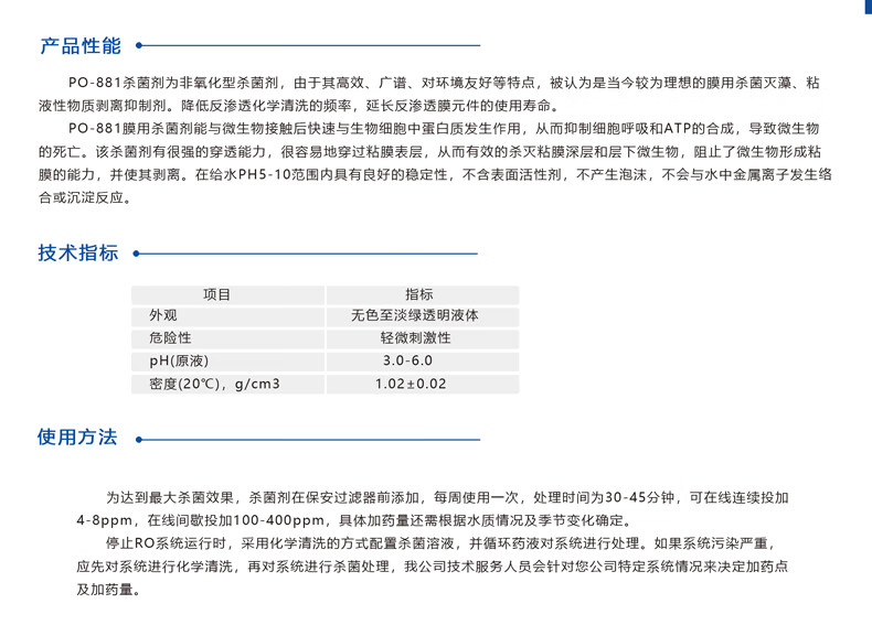Reverse osmosis agent for algae removal, RO membrane for ultrafiltration, special fast capacity, strong non-oxidizing properties