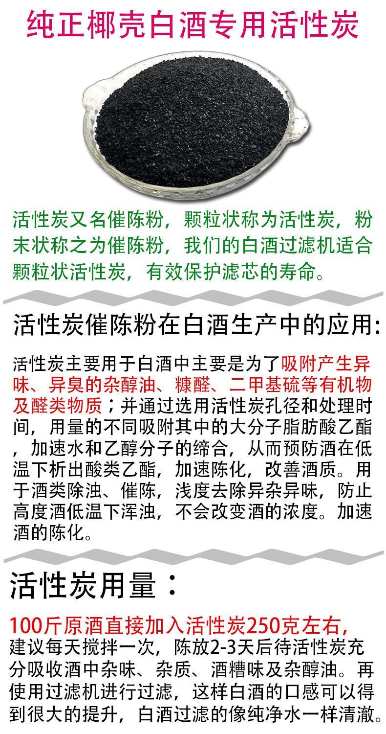 Special brewing equipment with activated carbon for liquor, pure coconut shell activated carbon filter, special aging powder for liquor, 1 pound of 30-50 mesh pure coconut shell special no-wash carbon for liquor