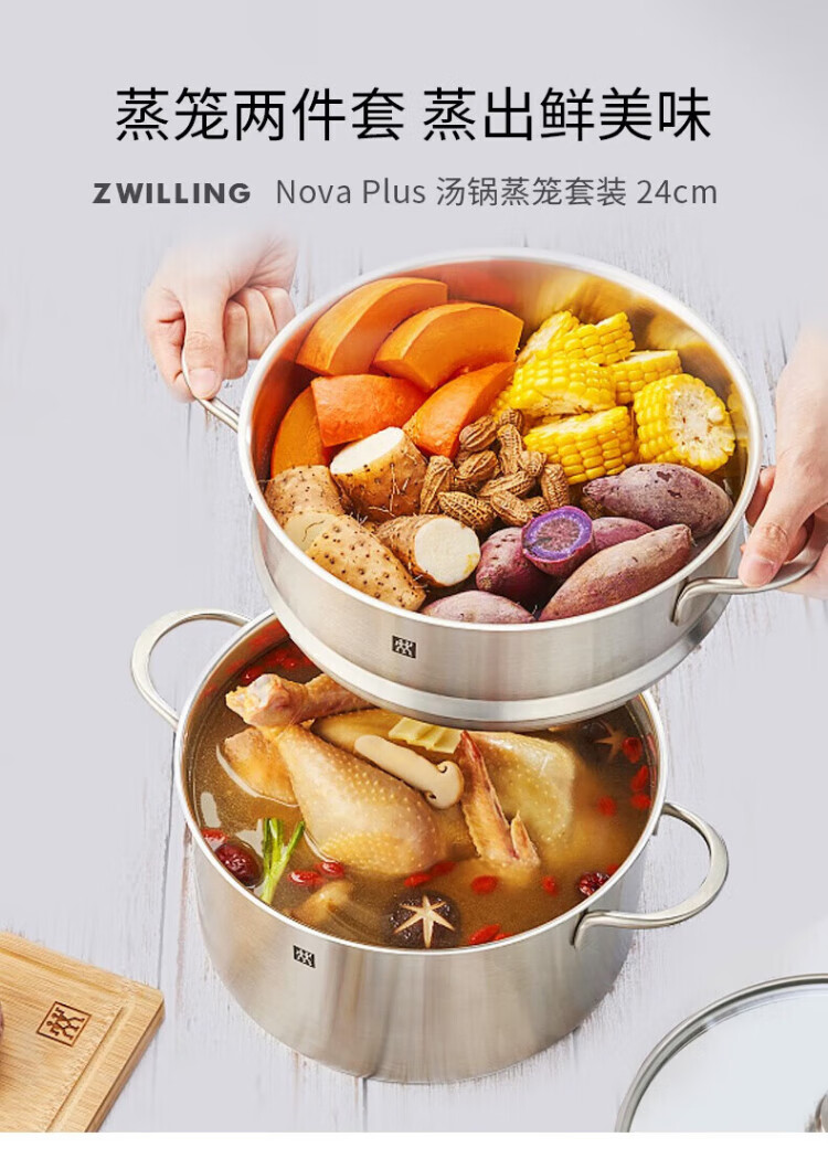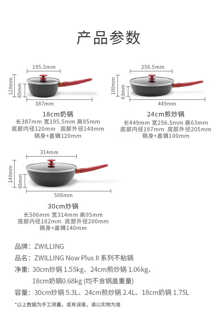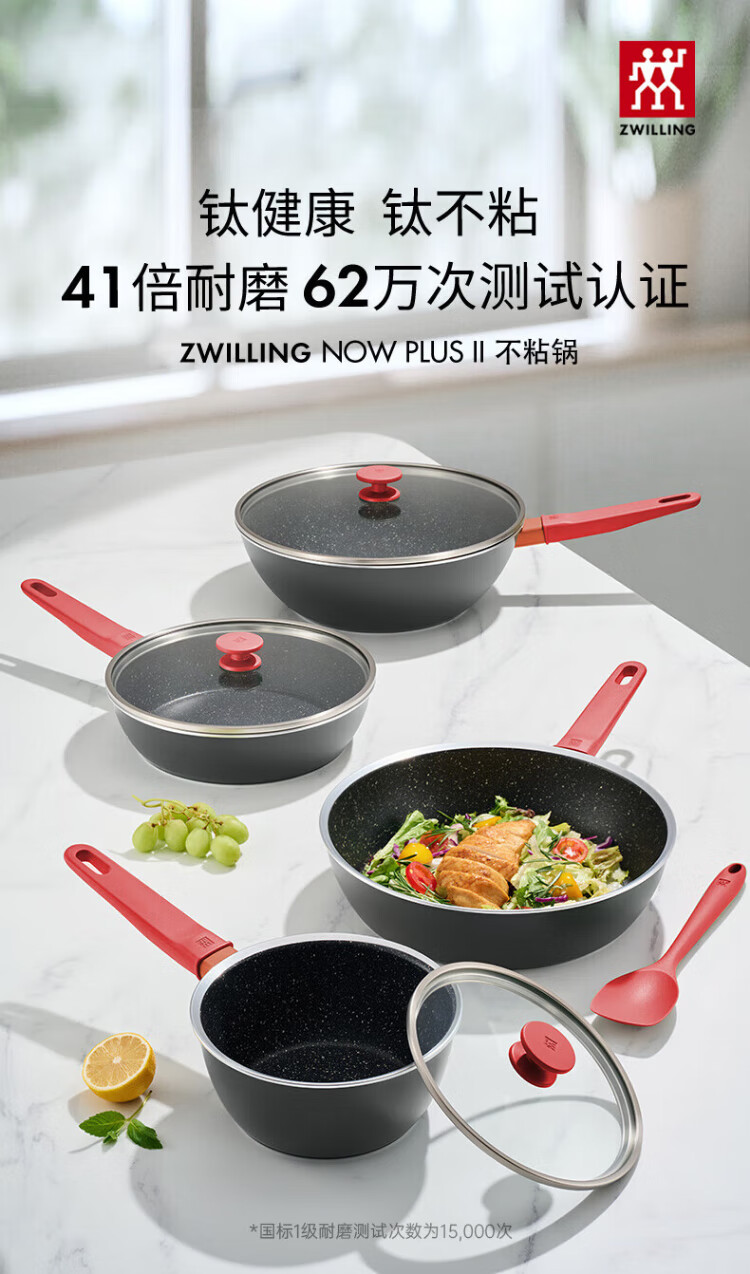 ZWILLING pot set, frying pan, household non-stick pot, wok, enamel pot, steamer, milk pot, kitchen utensils and pots, new upgrade with titanium, Now Plus II kitchen utensils 6-piece set - pomegranate red