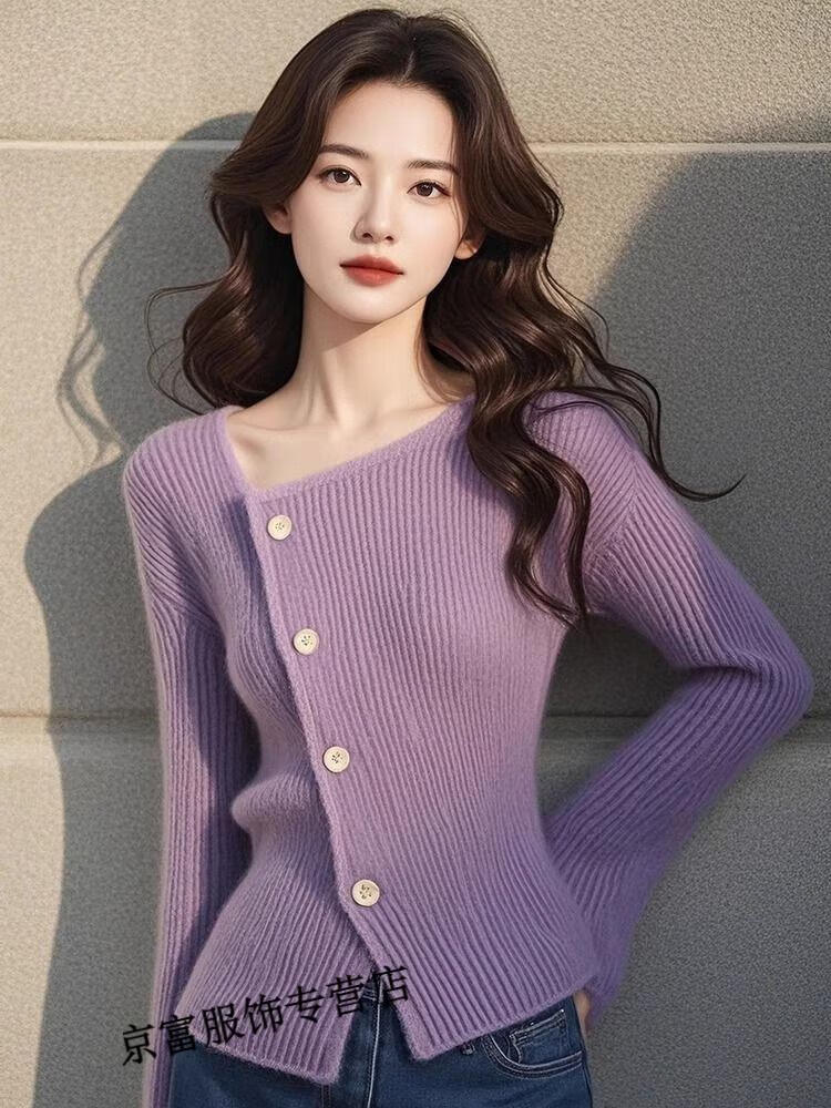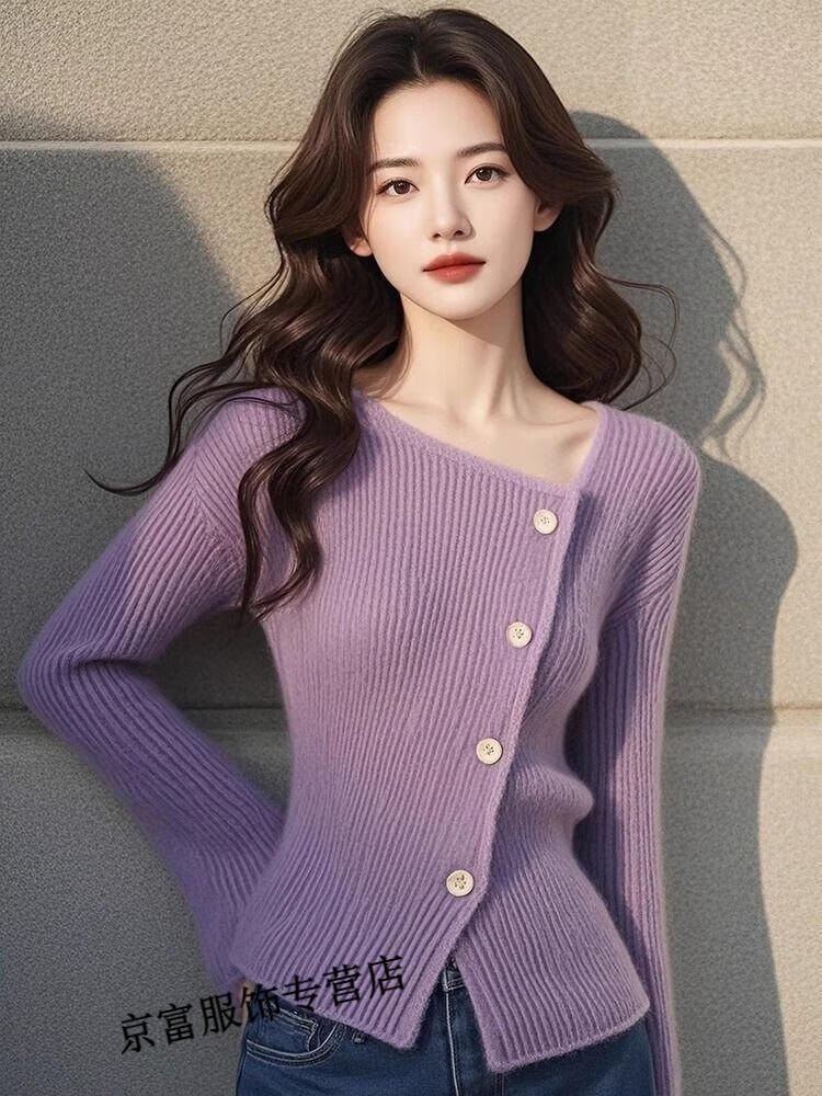 Chudiai purple long-sleeved sweater knitted bottoming shirt, autumn style and good-looking shirt, purple S, recommended within 95 pounds