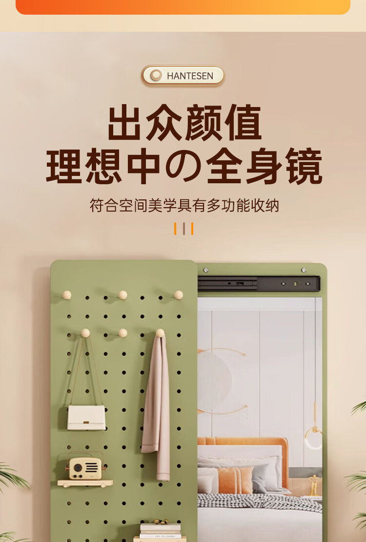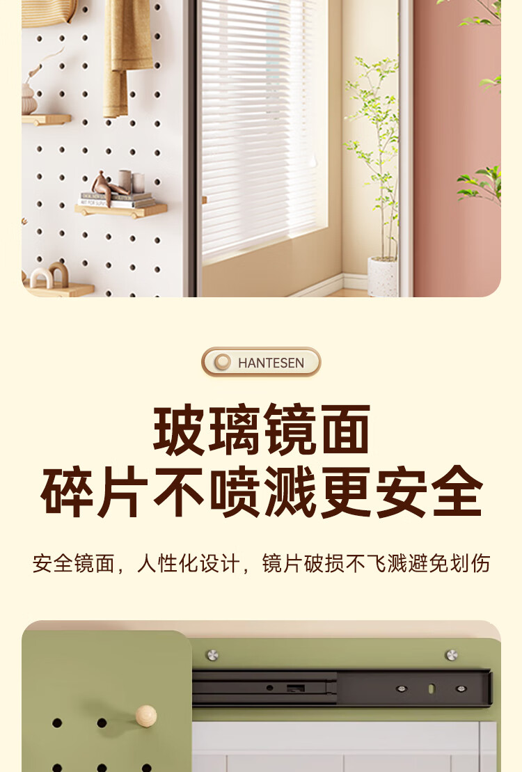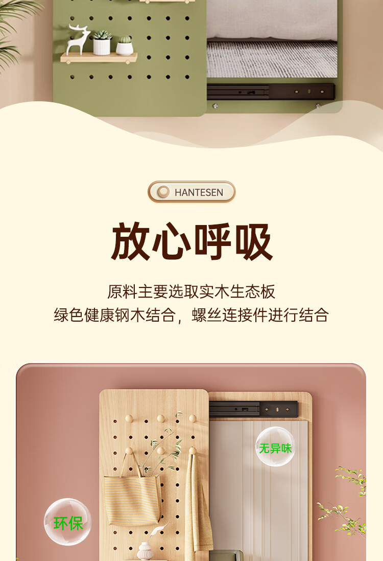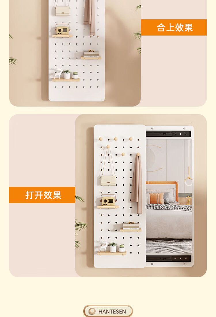 Watson solid wood hole board fitting mirror push-pull one-piece hidden wall-mounted entrance invisible full-length mirror white length 160 width 40cm