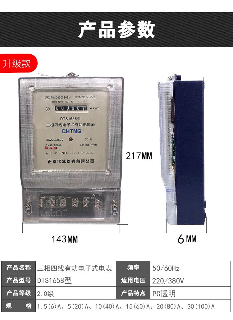 Chint (CHNT) qn three-phase four-wire high-power electronic 220/380V electric meter can be equipped with a transformer. Three-phase four-wire ordinary white shell type 1.5(6)A_mutual