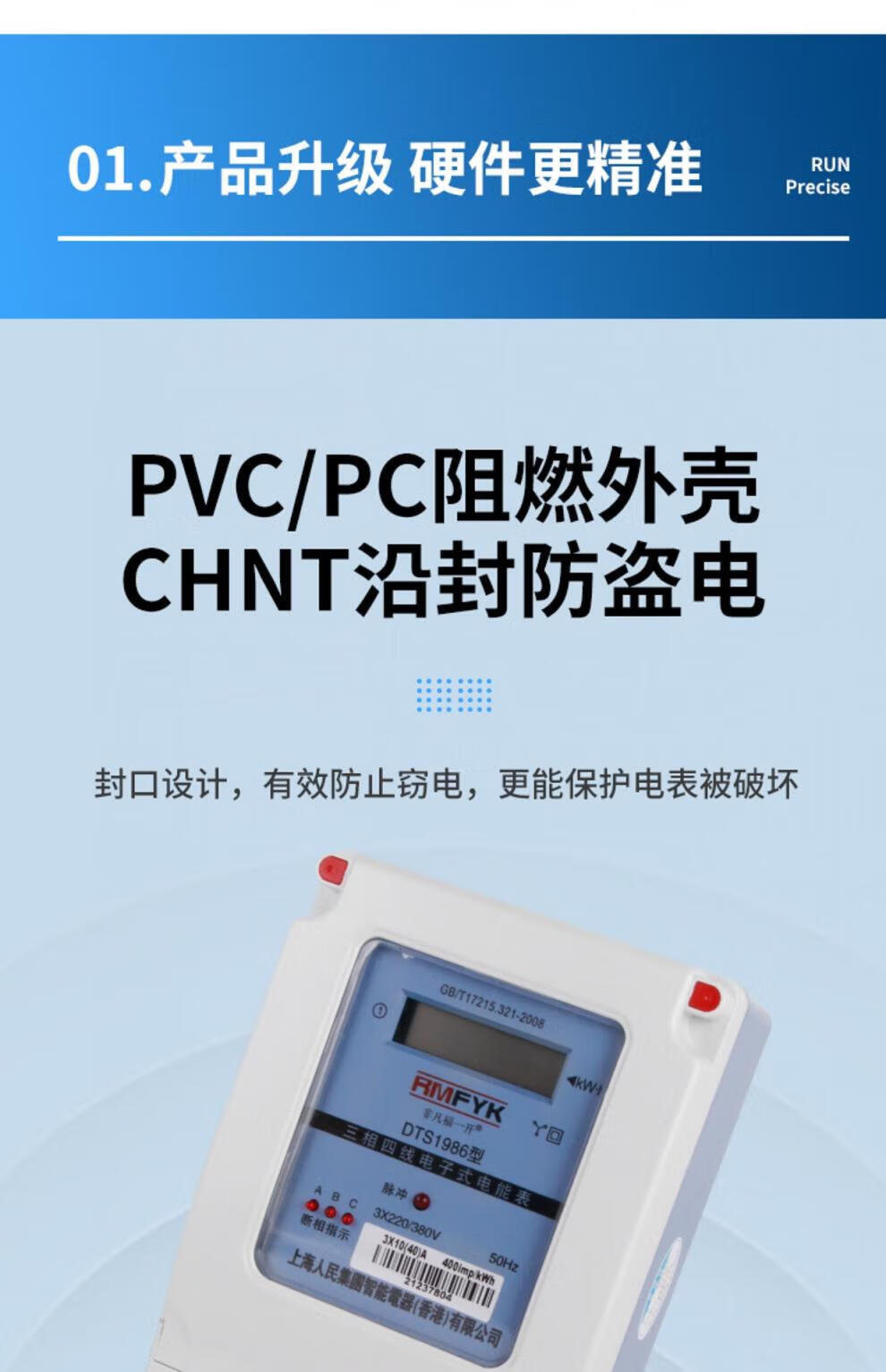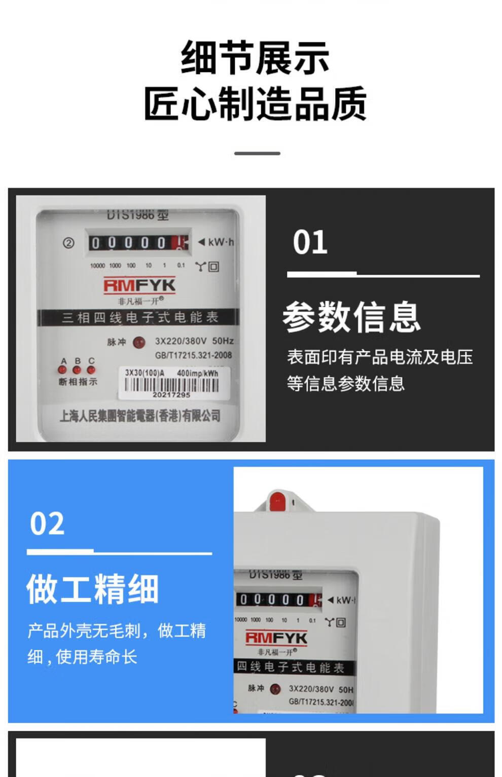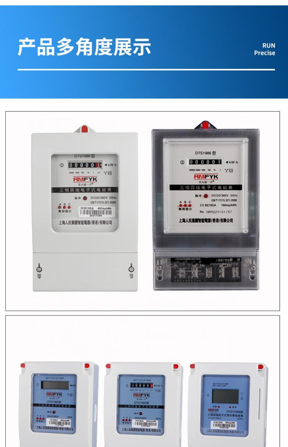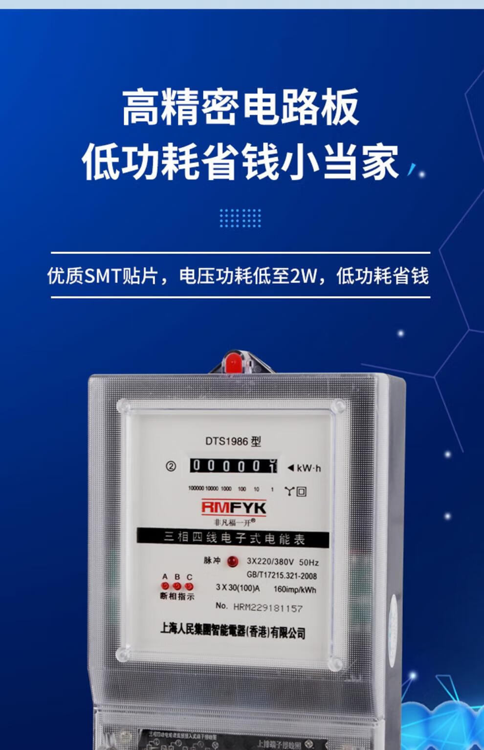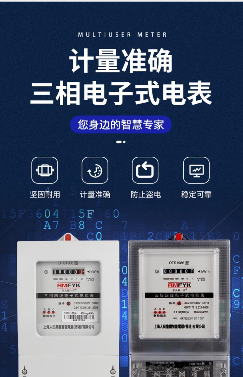 Shanghai People's Enterprise (Group) Co., Ltd. Shanghai People's three-phase electricity meter 380V three-phase four-wire electricity meter three-term transformer type smart electricity meter 100A white shell model 1.5 (6) A transformer type