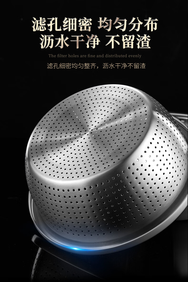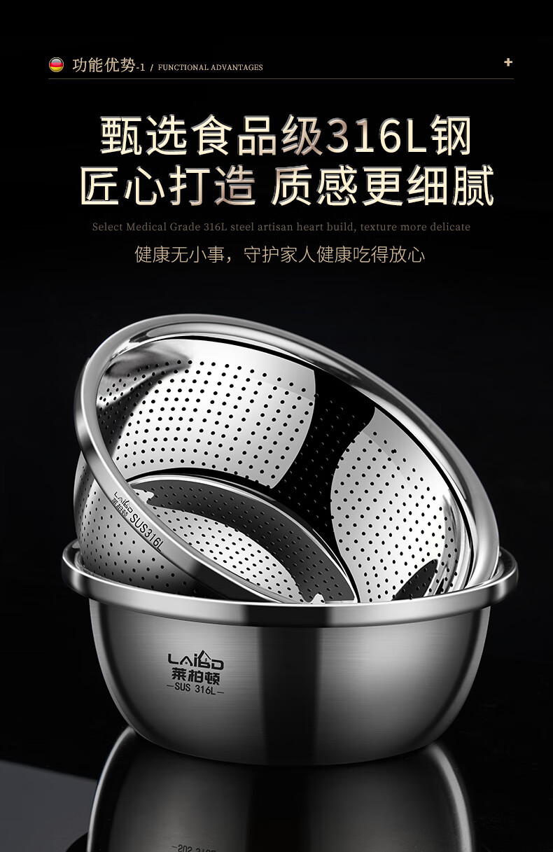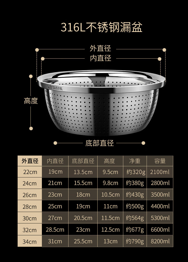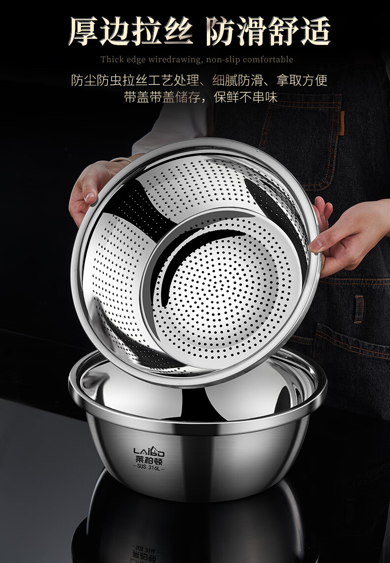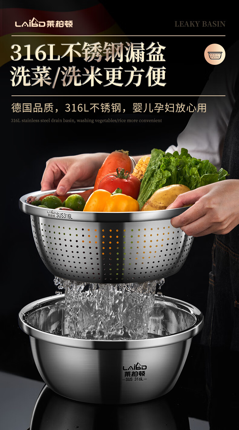 Labton food grade 316L stainless steel drain basin household rice washing sieve rice washing basin drain basket leak basin mesh sieve rice washing artifact 30cm basin drain set carefully selected 316L stainless steel practical combination