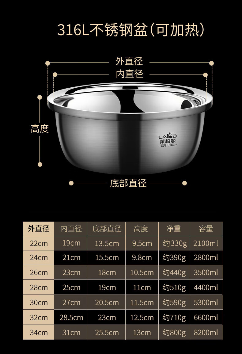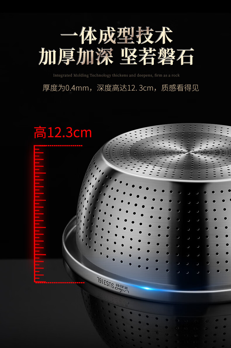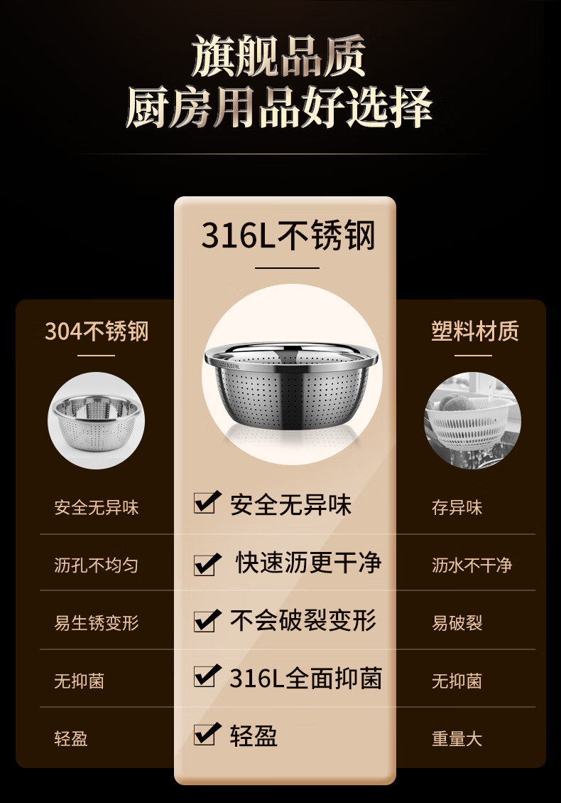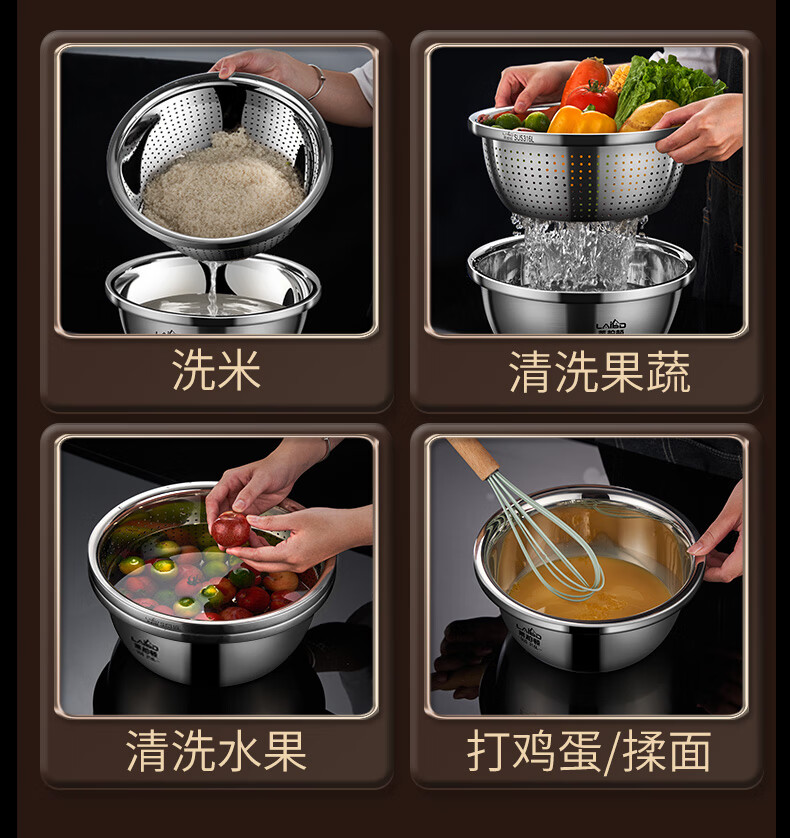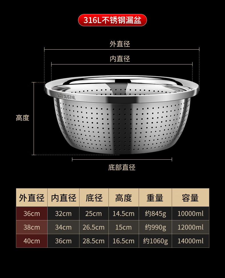 Labton food grade 316L stainless steel drain basin household rice washing sieve rice washing basin drain basket leak basin mesh sieve rice washing artifact 30cm basin drain set carefully selected 316L stainless steel practical combination