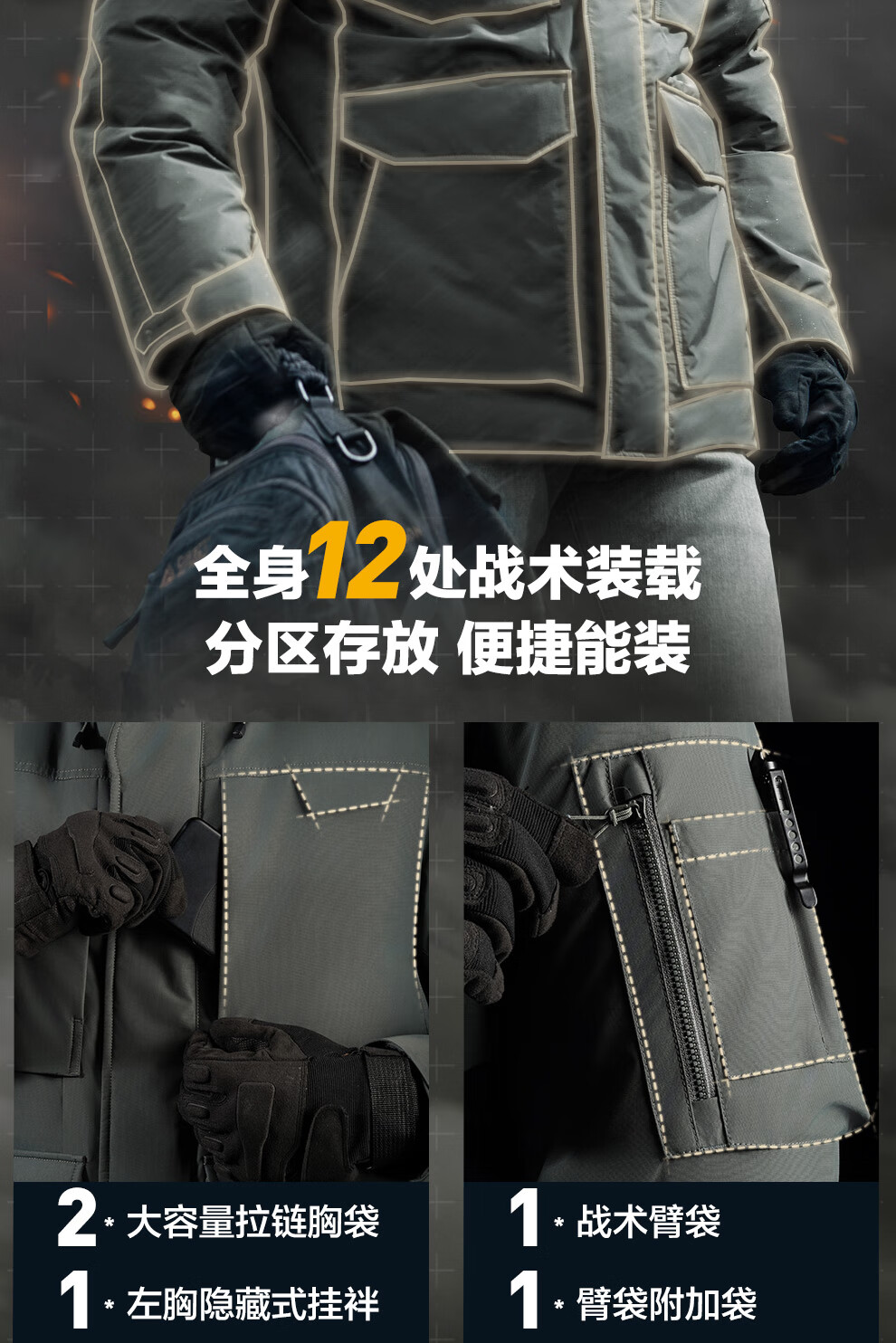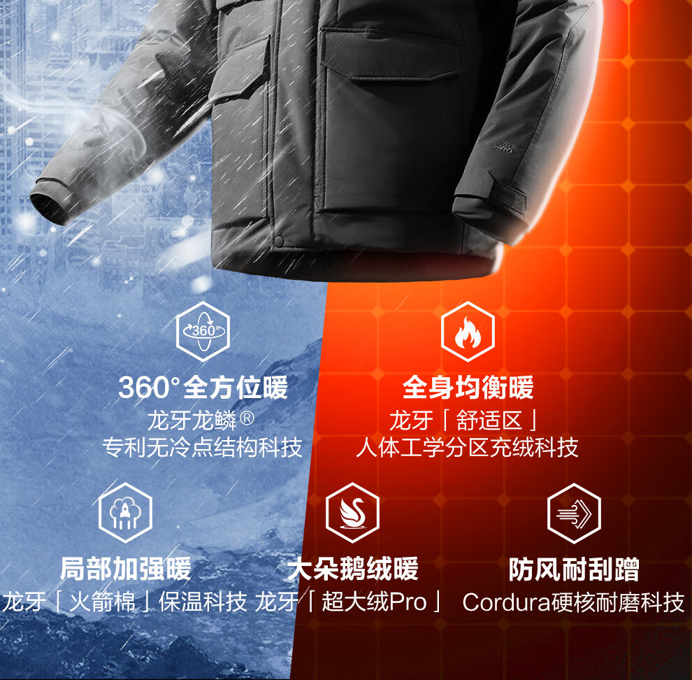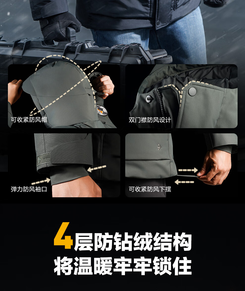 Dragon Tooth Fourth Generation Dragon Tooth Guardian Heavy Duty Tactical Coldproof Down Jacket Winter Thickened Warm Goose Down Jacket Extreme Night Black M 175/96A 161-175 catties