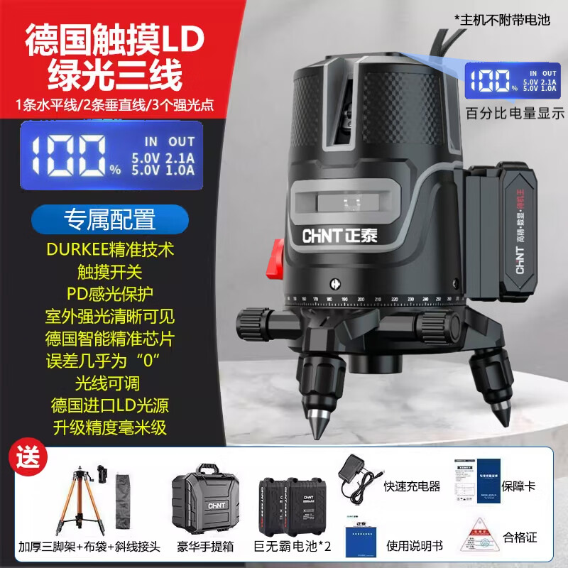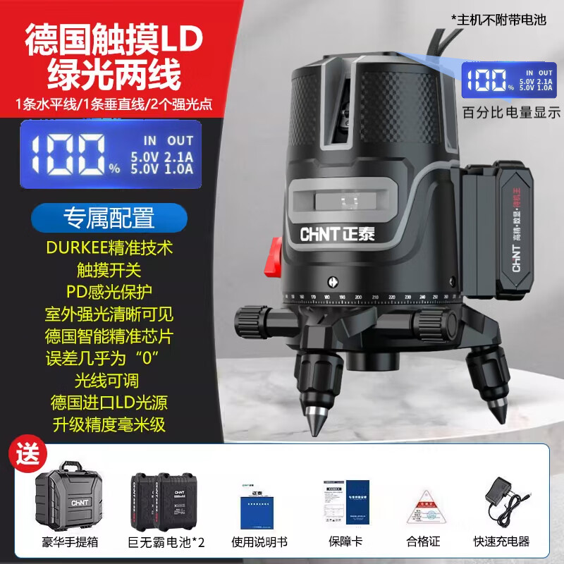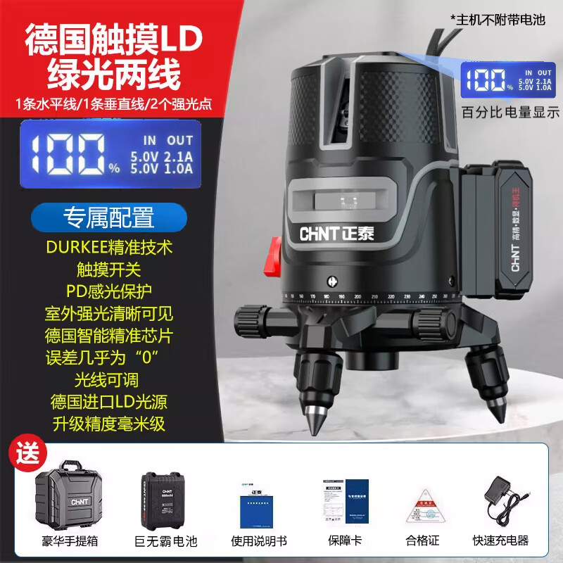 Chint infrared level meter green light 235 lines high-precision strong light outdoor laser automatic leveling level meter green light 5 lines level - Big Mac large lithium battery * 2
