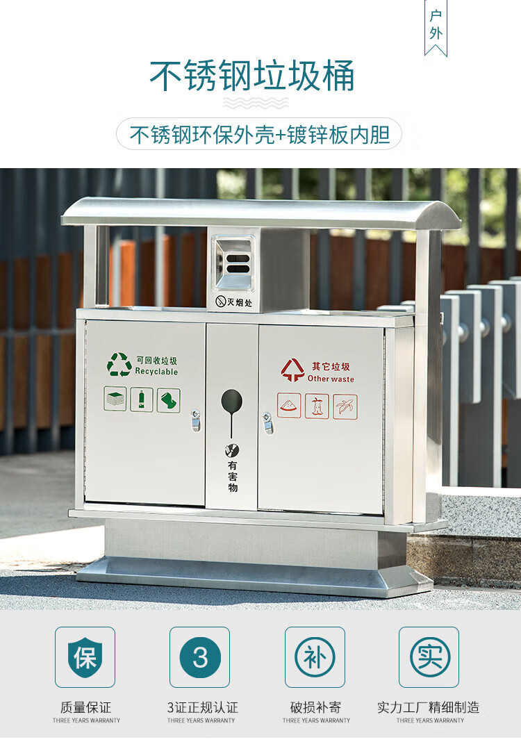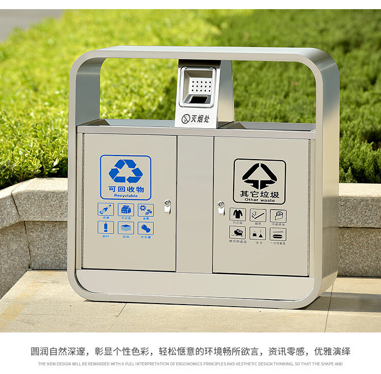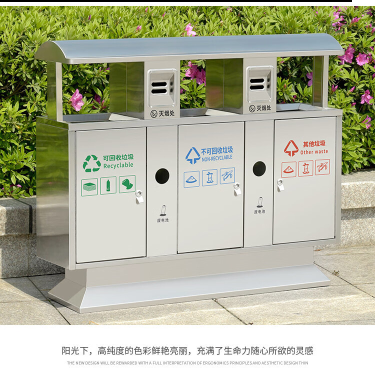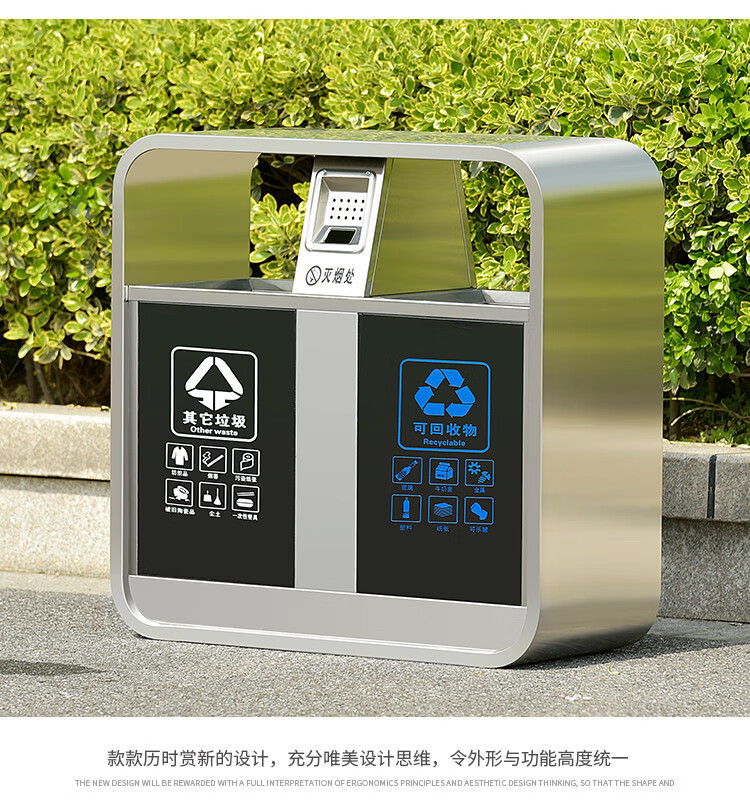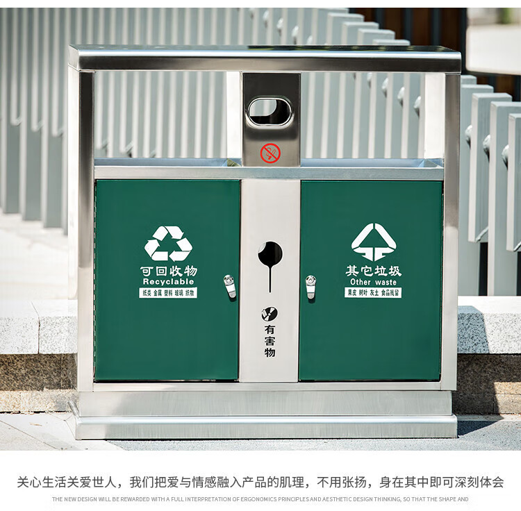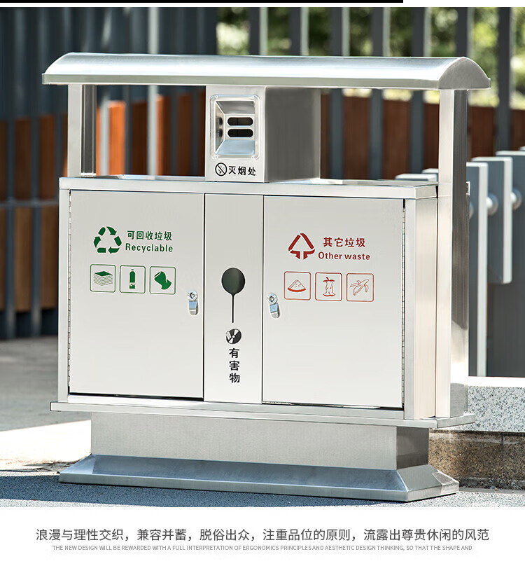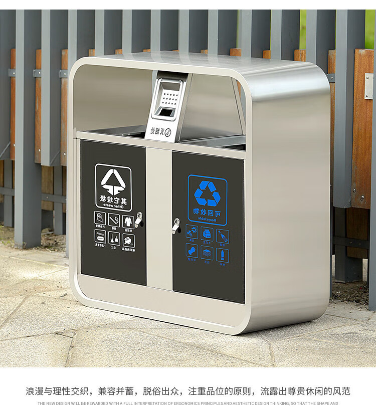 Qiaobolai is suitable for outdoor trash cans, stainless steel trash cans, sanitation classification trash cans, outdoor peel bins, large residential areas, 304 stainless steel double barrels E
