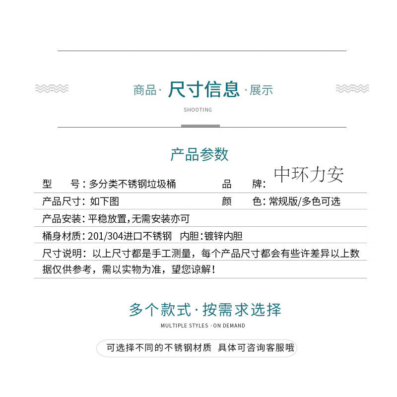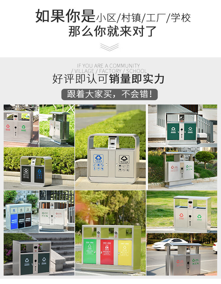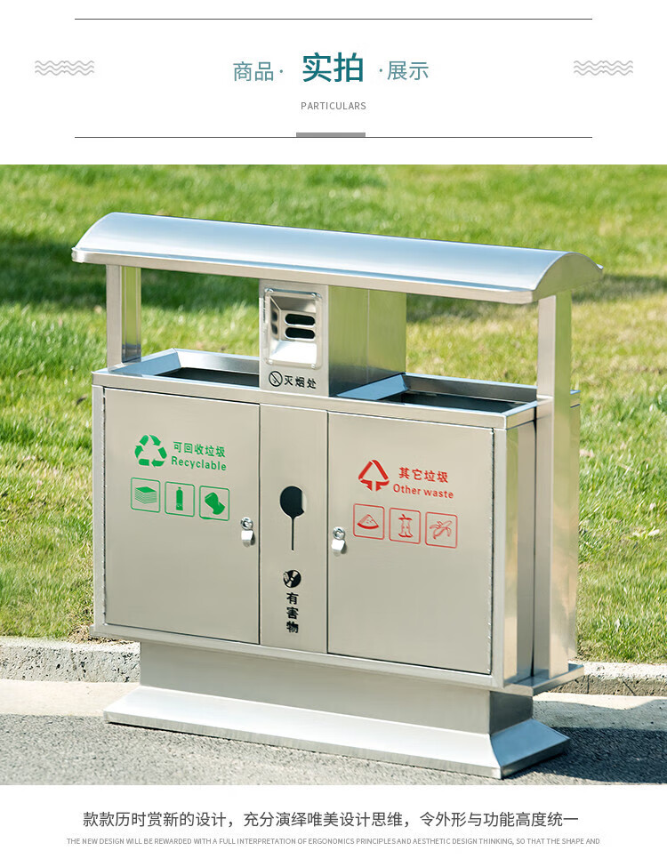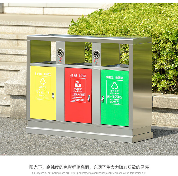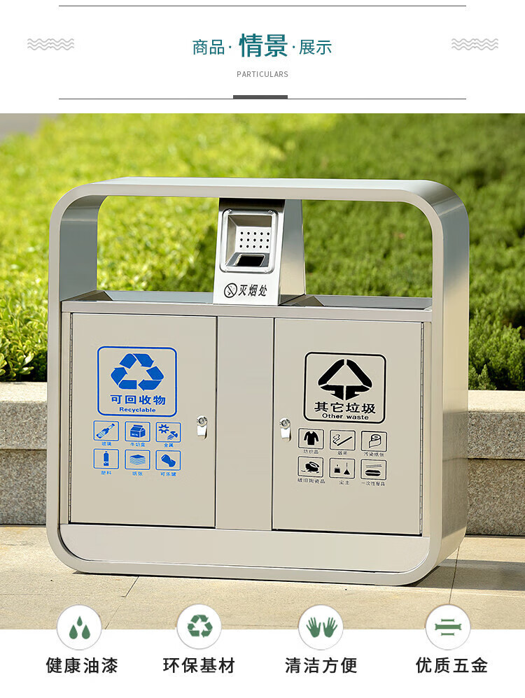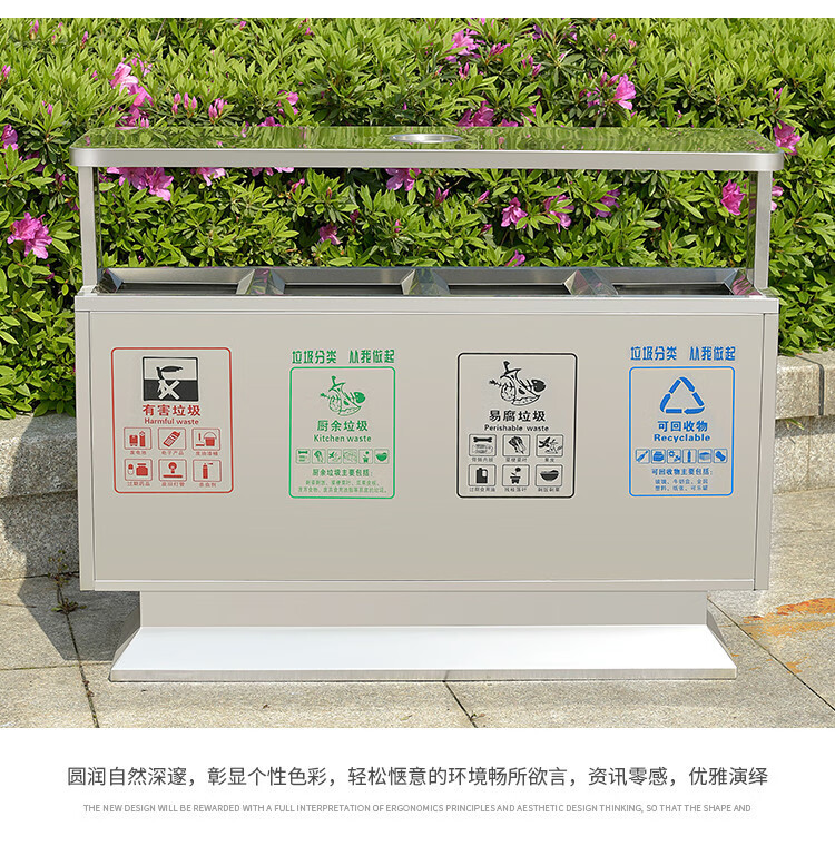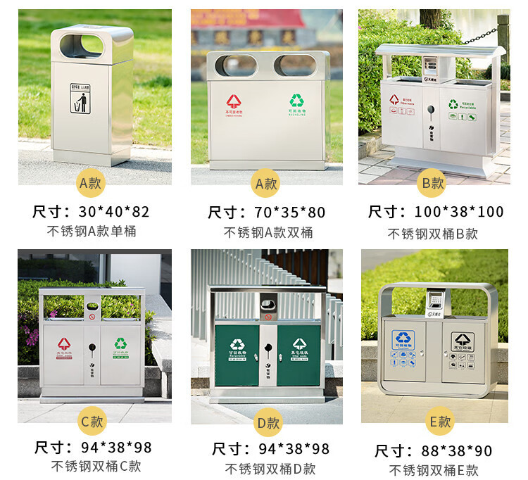 Qiaobolai is suitable for outdoor trash cans, stainless steel trash cans, sanitation classification trash cans, outdoor peel bins, large residential areas, 304 stainless steel double barrels E