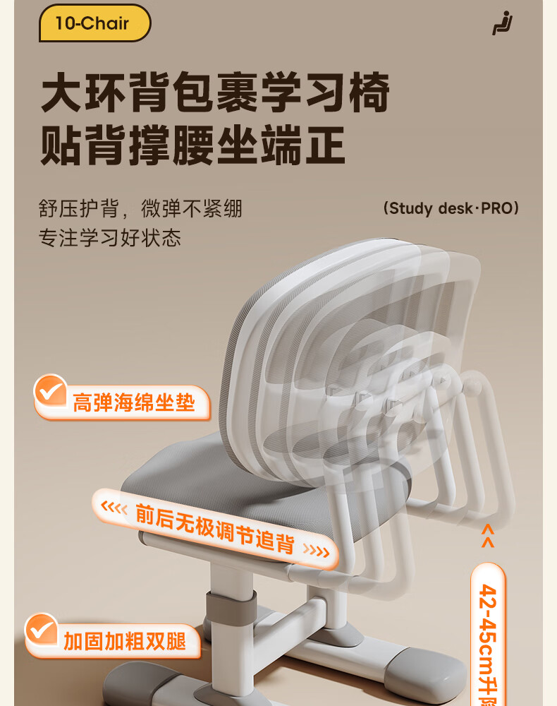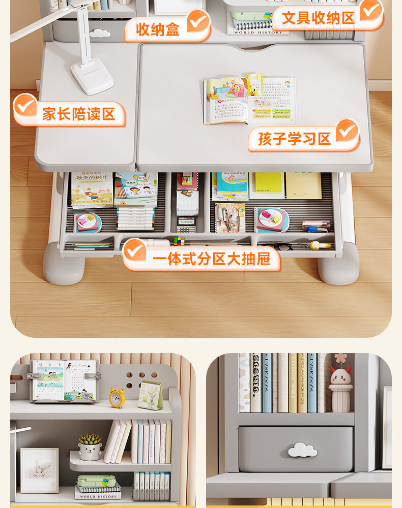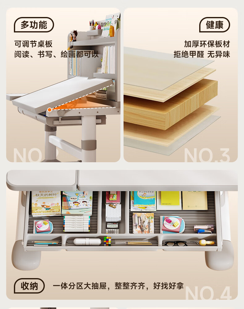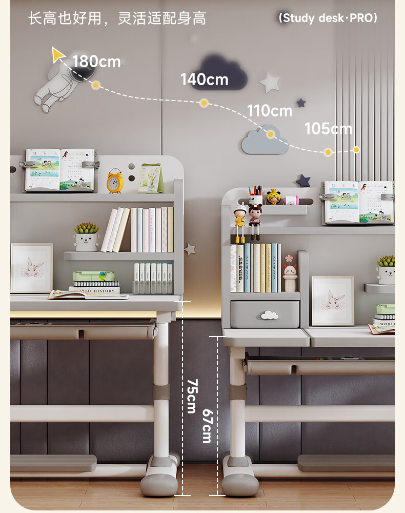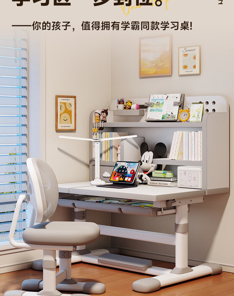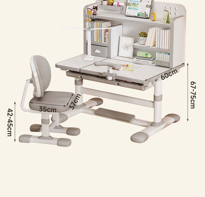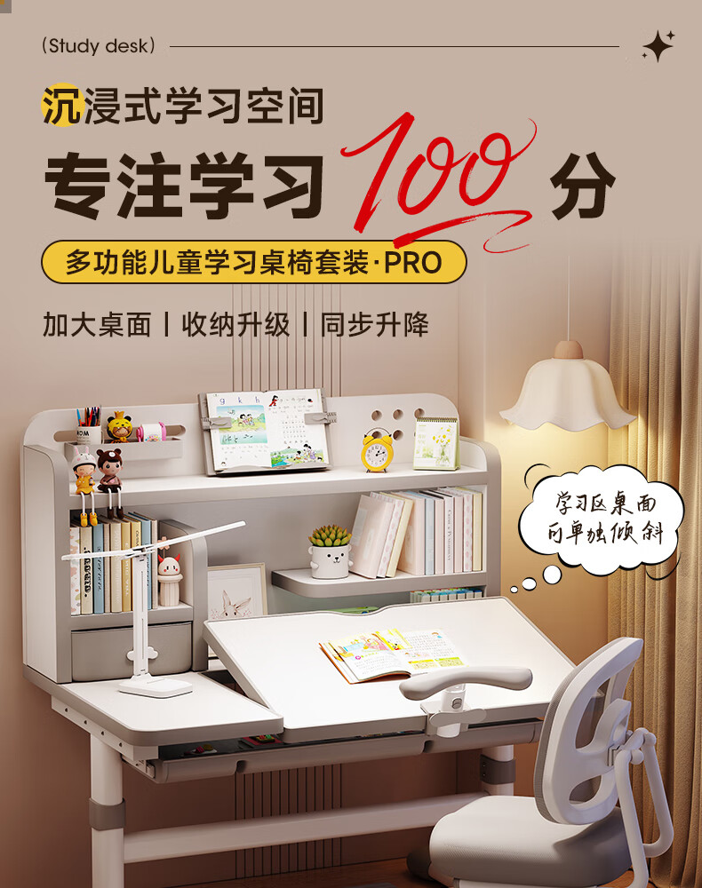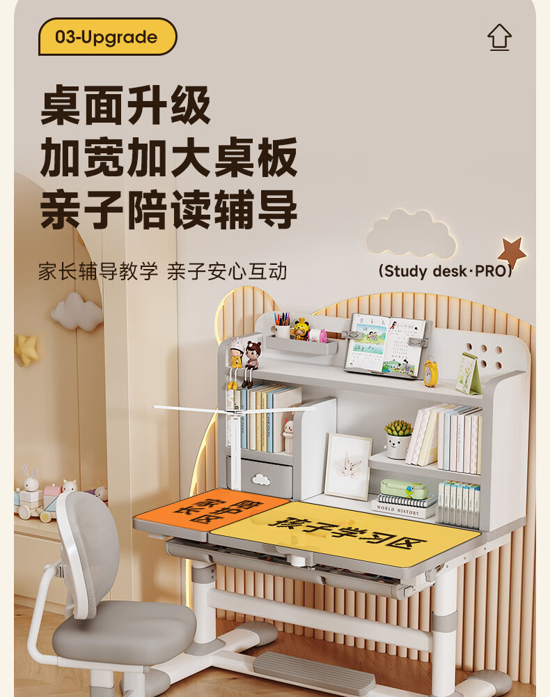 Yitong children's study desk and chair set desk can lift writing desk high school and primary school students 6-18 years old desk desk and chair Interstellar Gray Pro-three-layer reading desktop + back chair