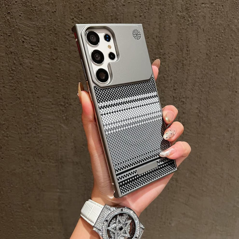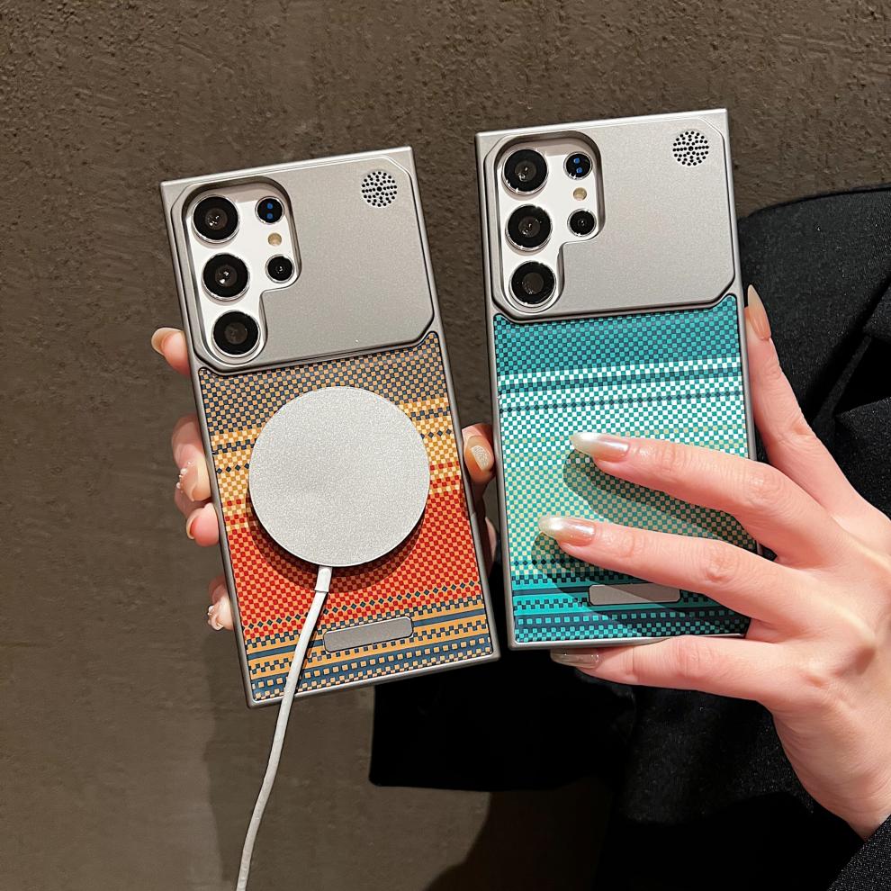 Youshi Samsung S24Ultra mobile phone case Kevlar texture S25Ultra anti-fall all-inclusive S23Ultra metal magnetic suction S22Ultra simple frame protection advanced protective cover deep space gray contrast texture Samsung Galaxy S24 Ultra