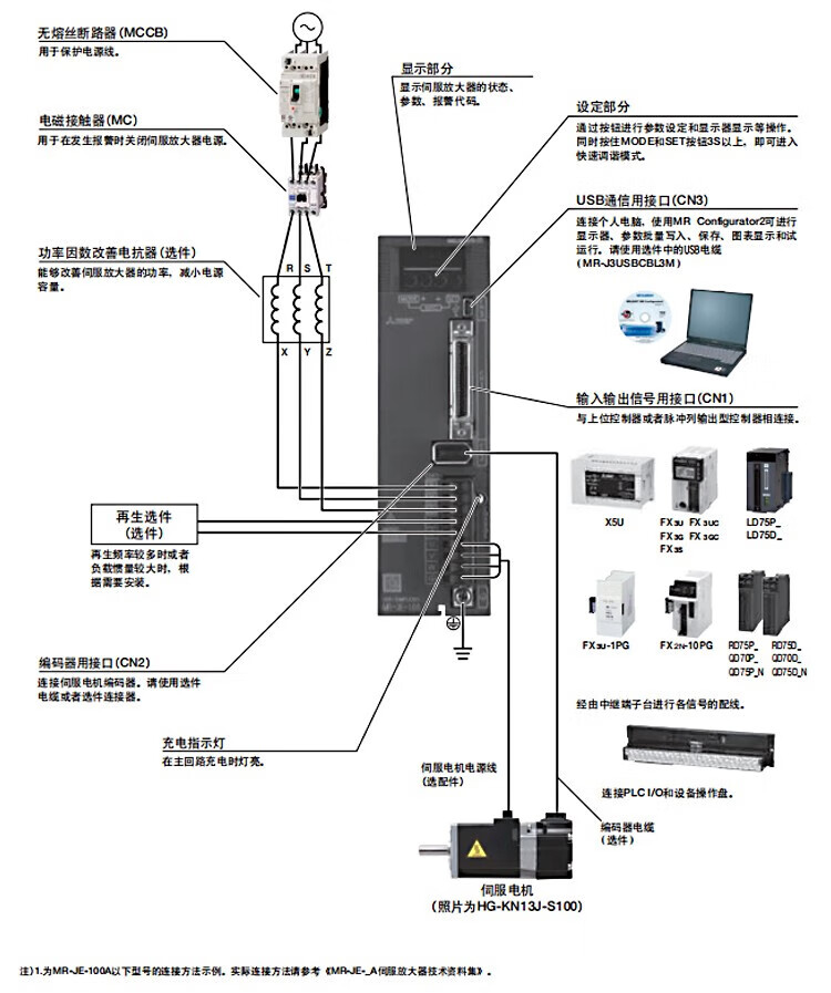 Mitsubishi Electric Mitsubishi servo motor driver motor set HG-K MR-JE-10A+HG-KN13J-S100 does not include accessories 13% VAT special ticket