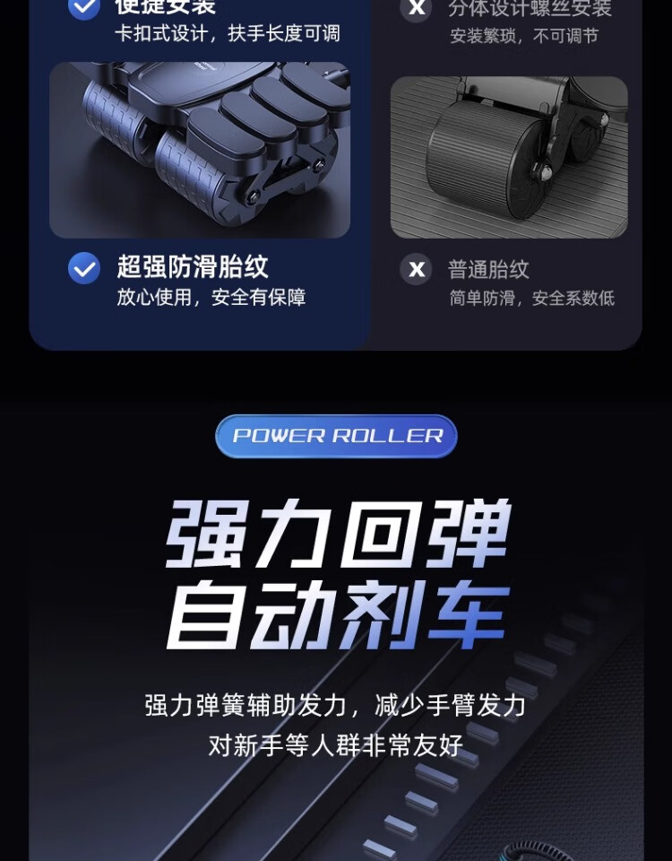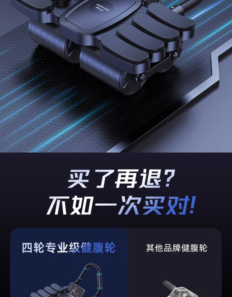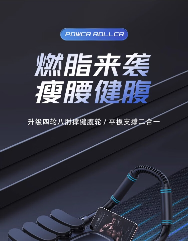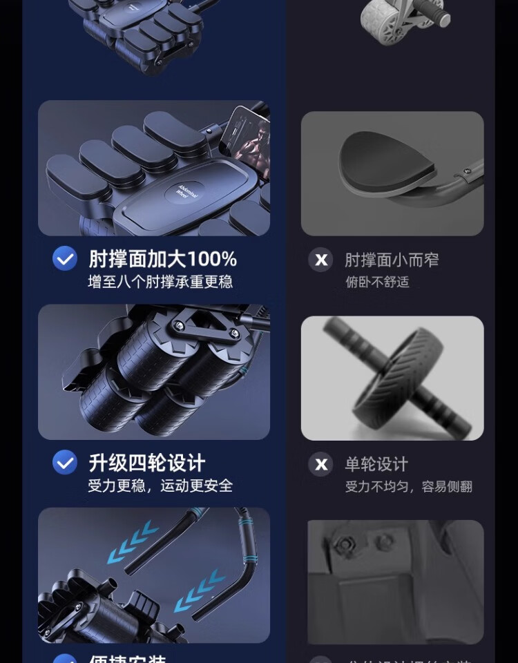 He Jiagong's new four-wheel abdominal fitness wheel, automatic rebound, abdominal muscle training tool for men and women, household abdominal curling and slimming exercise equipment, four wheels, 8 elbow supports - black, stable and non-rolling, strong rebound, intelligent timing